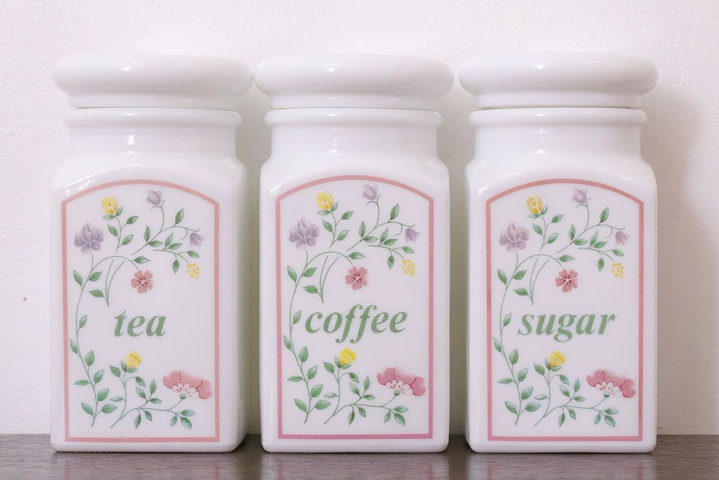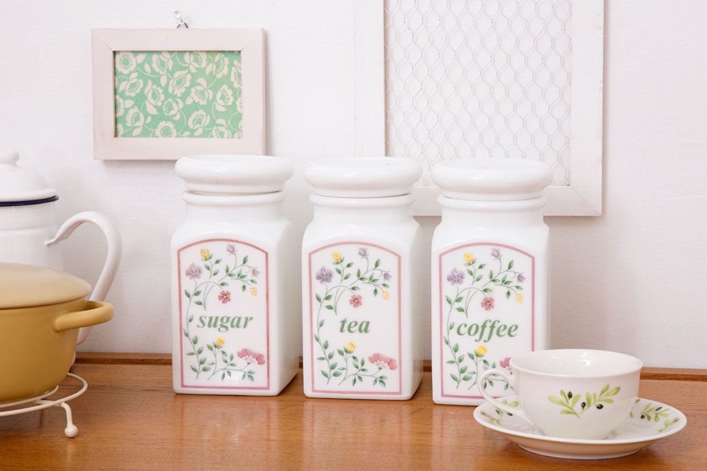 ラフジュ工房> テーブル > アンティーク雑貨 イギリスビンテージ 上品な花柄のキャニスター3点セット(洋食器)
