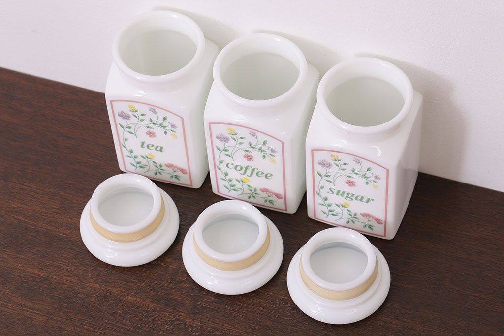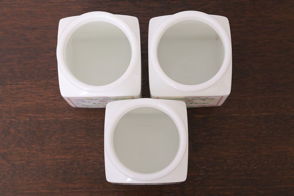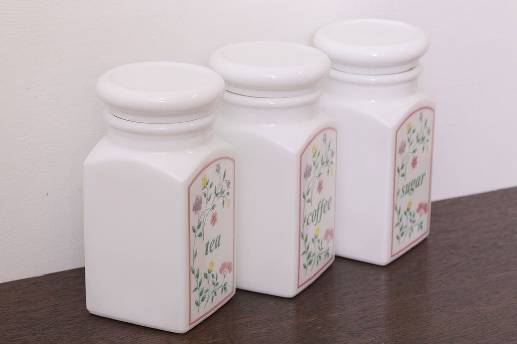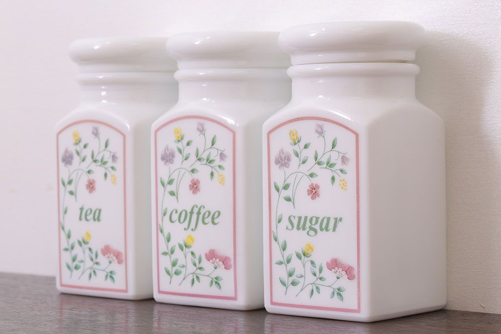 アンティーク雑貨 イギリスビンテージ 上品な花柄のキャニスター3点セット(洋食器)