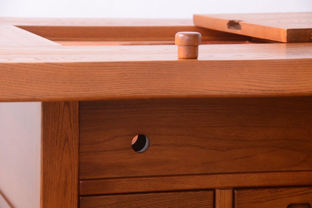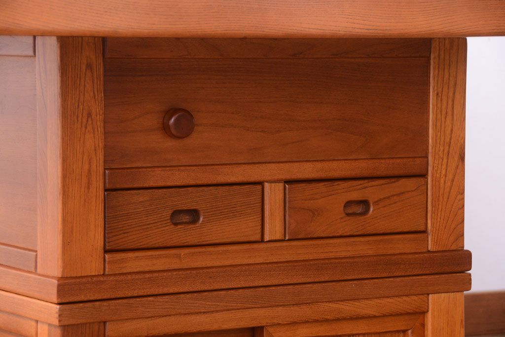 小物収納にも便利な引き出しや戸棚付きです。