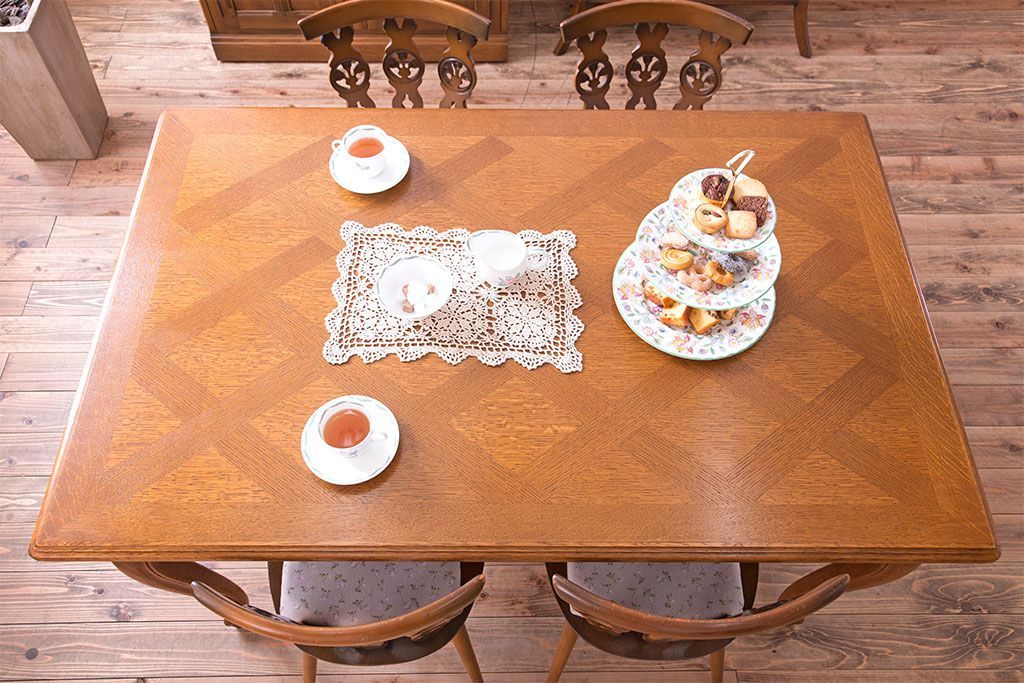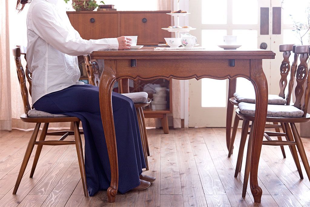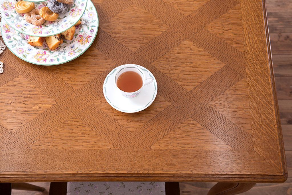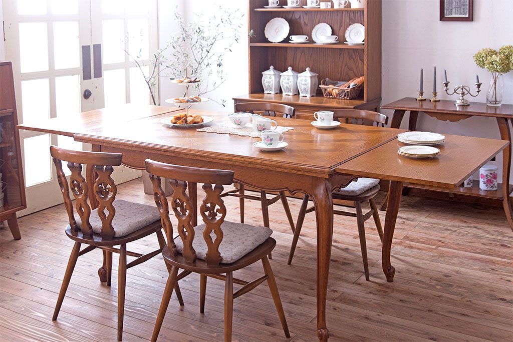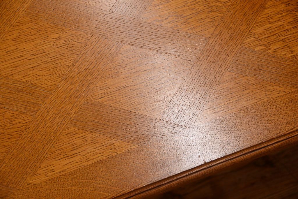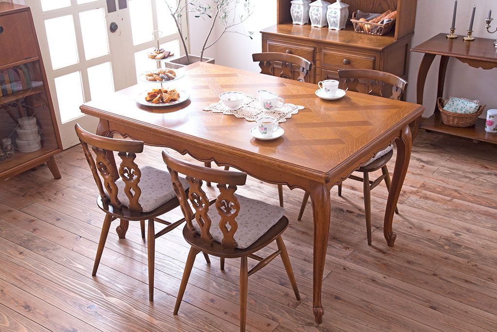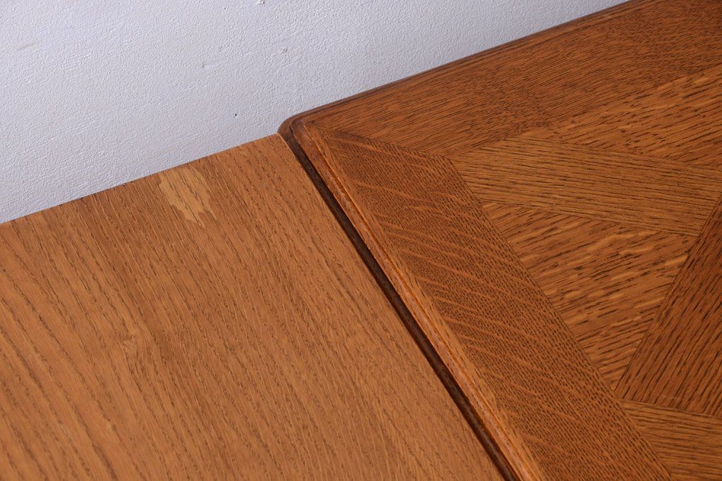 ラフジュ工房> テーブル> エクステンションテーブル > ヴィンテージ家具 フランスビンテージ パーケット天板 オーク材 猫脚のダイニングテーブル(エクステンションテーブル)