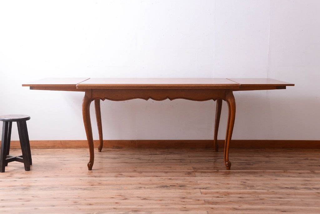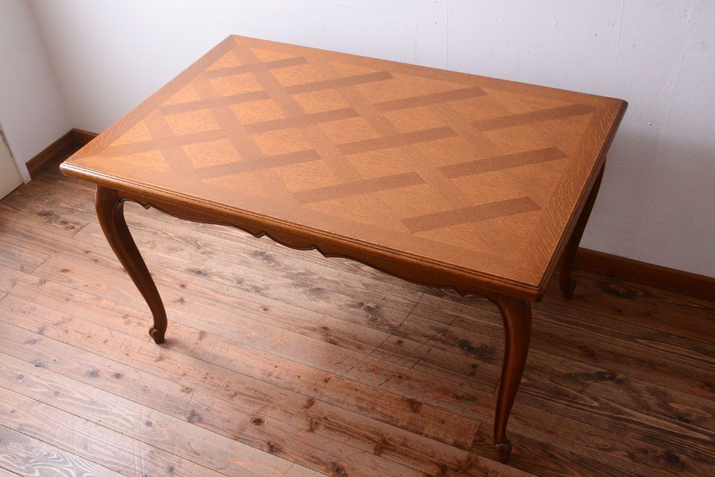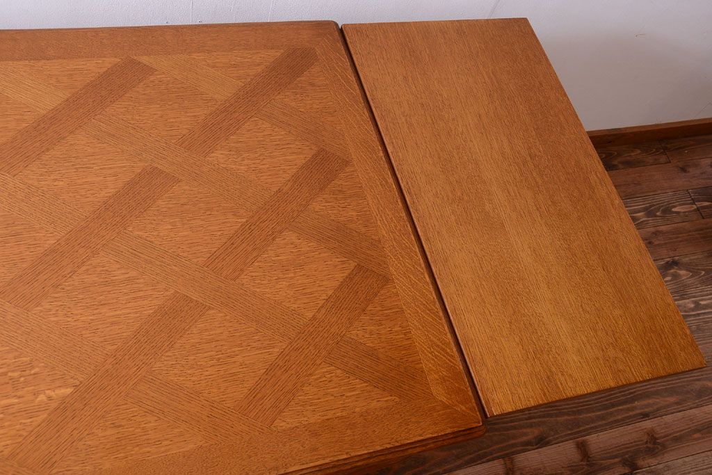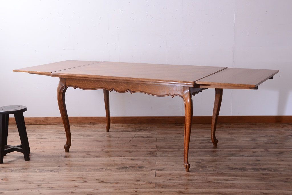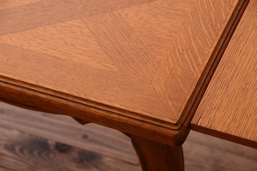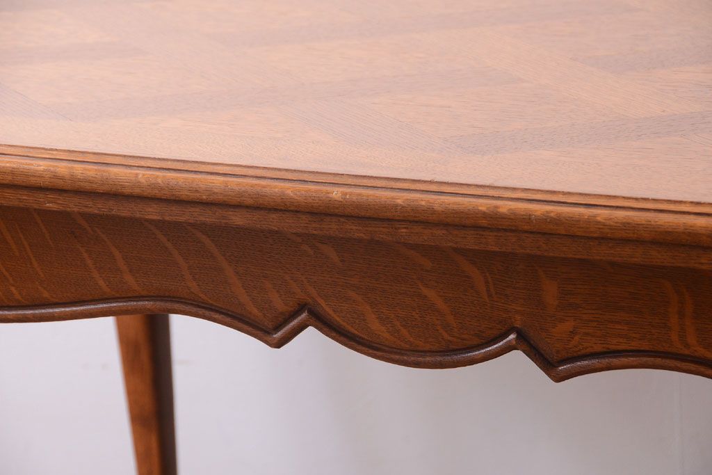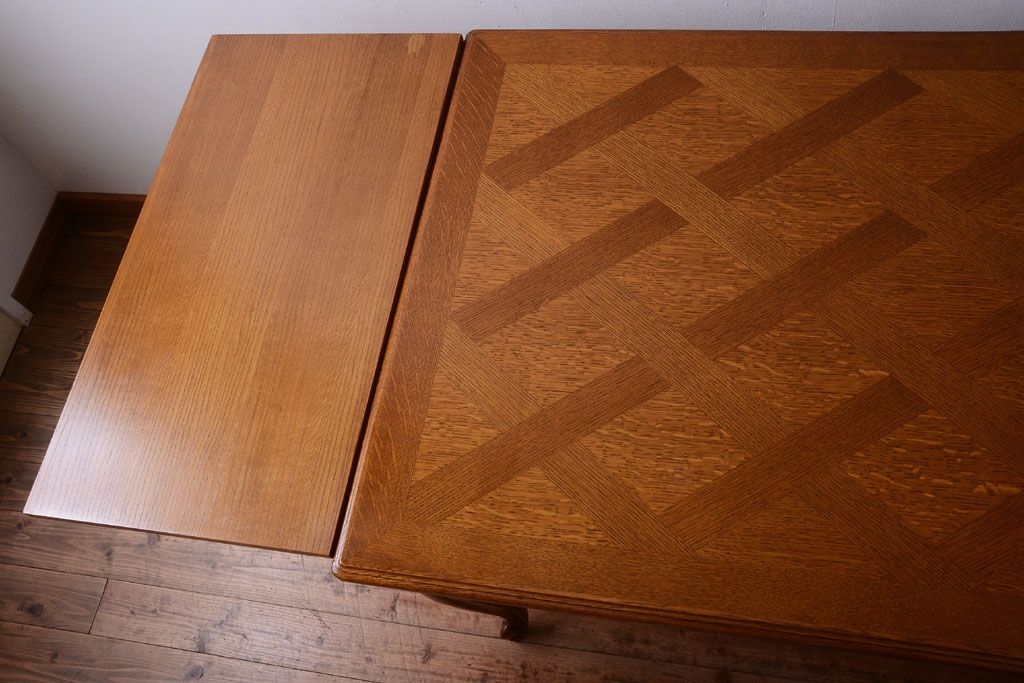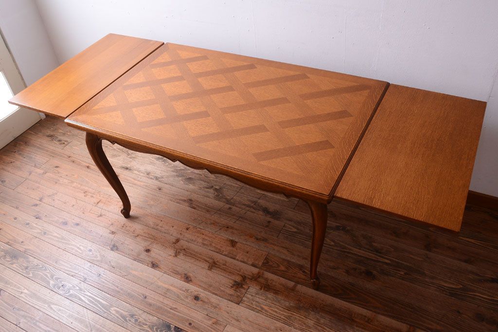 ヴィンテージ家具 フランスビンテージ パーケット天板 オーク材 猫脚のダイニングテーブル(エクステンションテーブル)