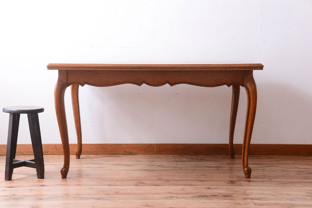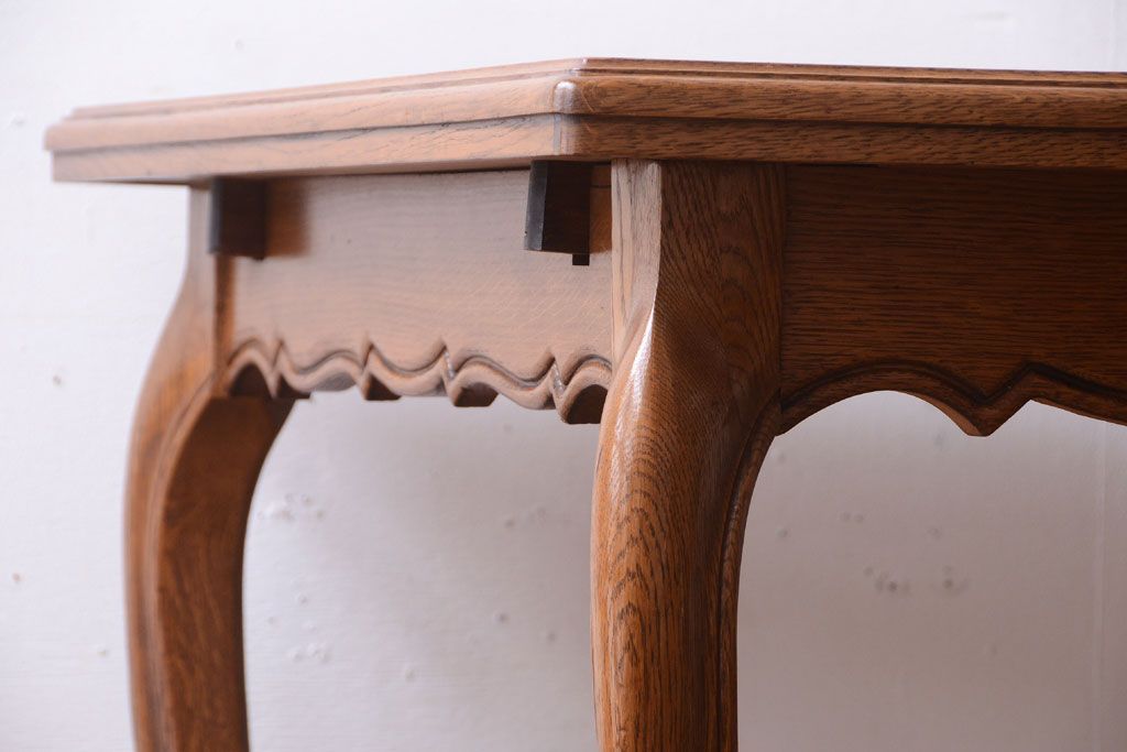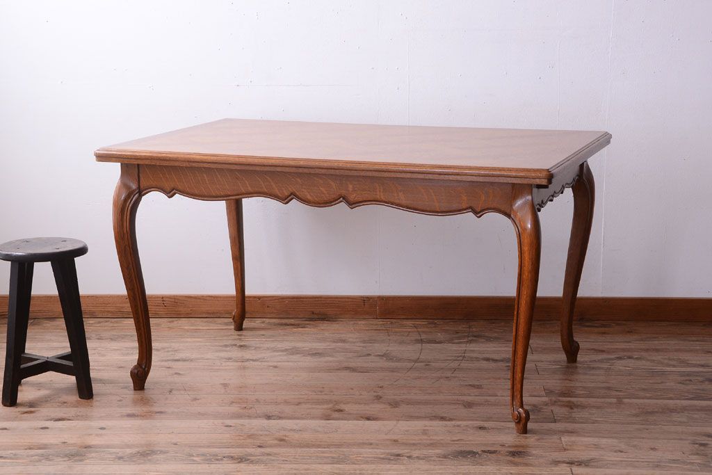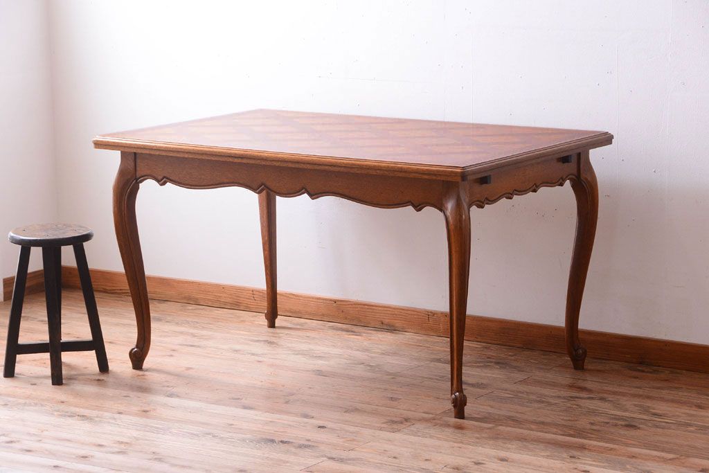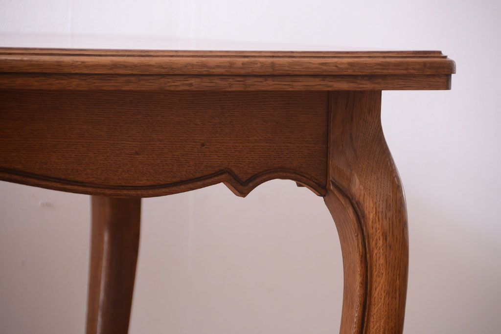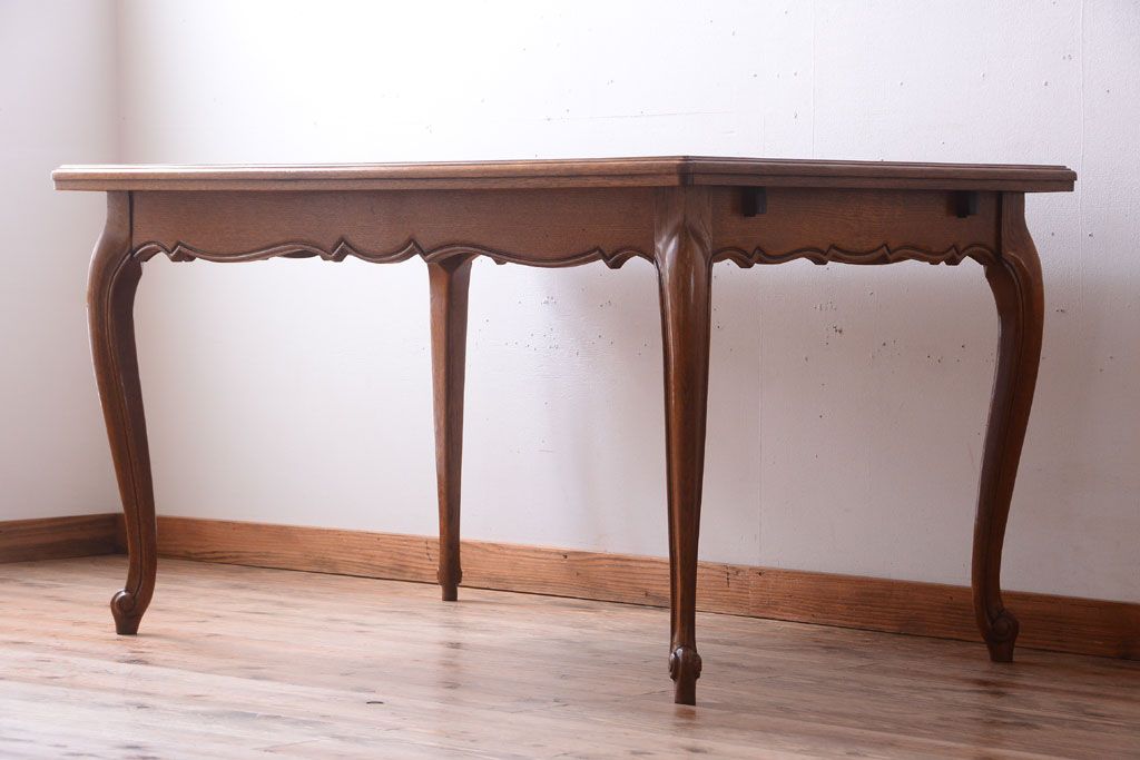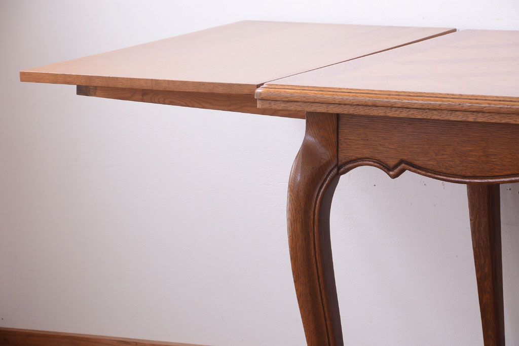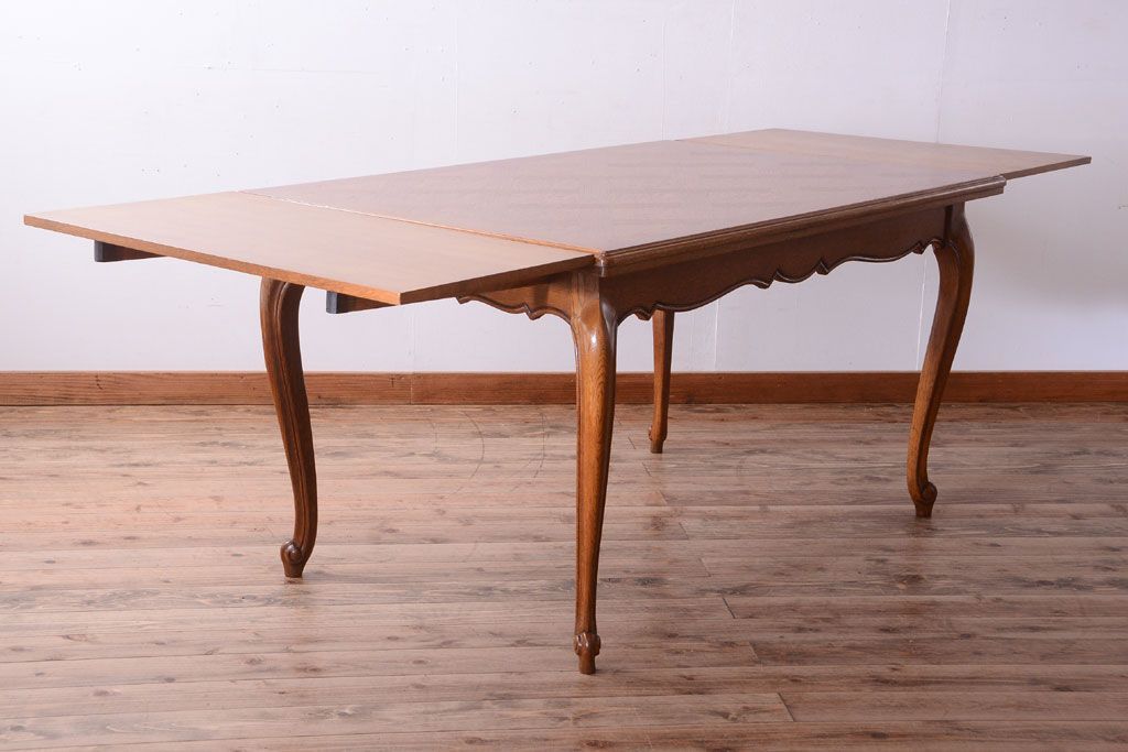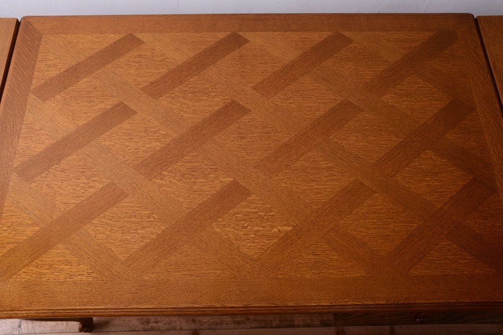 ヴィンテージ家具 フランスビンテージ パーケット天板 オーク材 猫脚のダイニングテーブル(エクステンションテーブル)