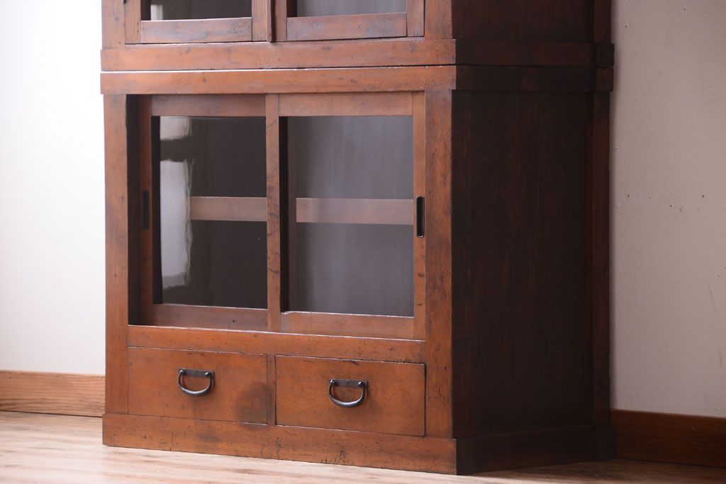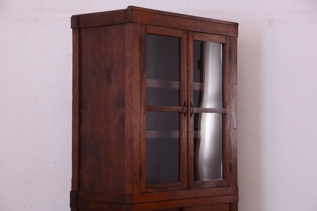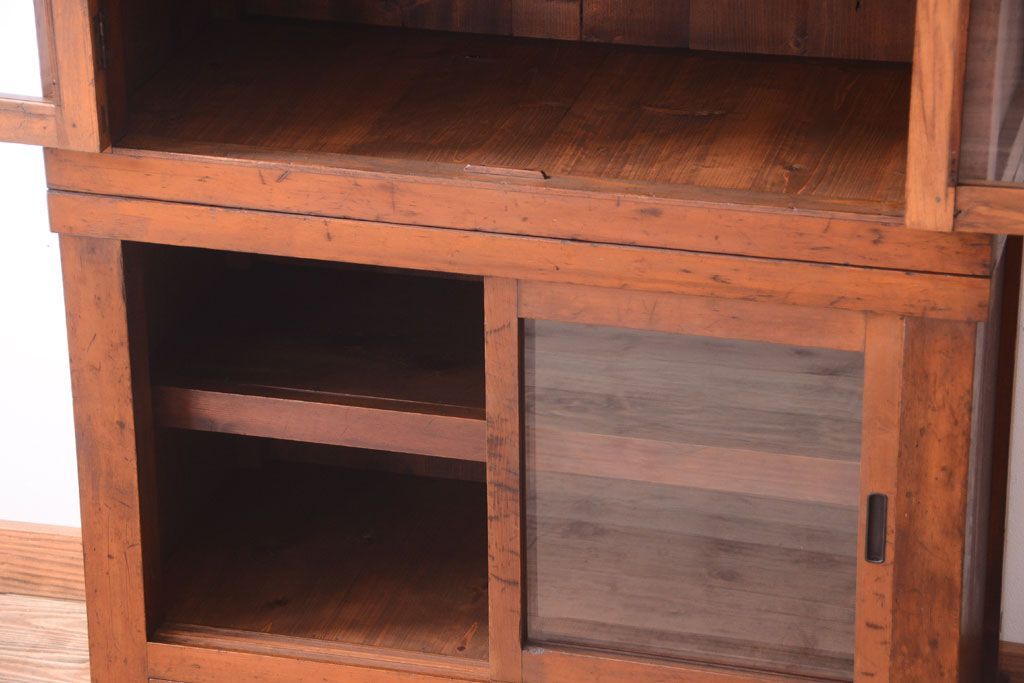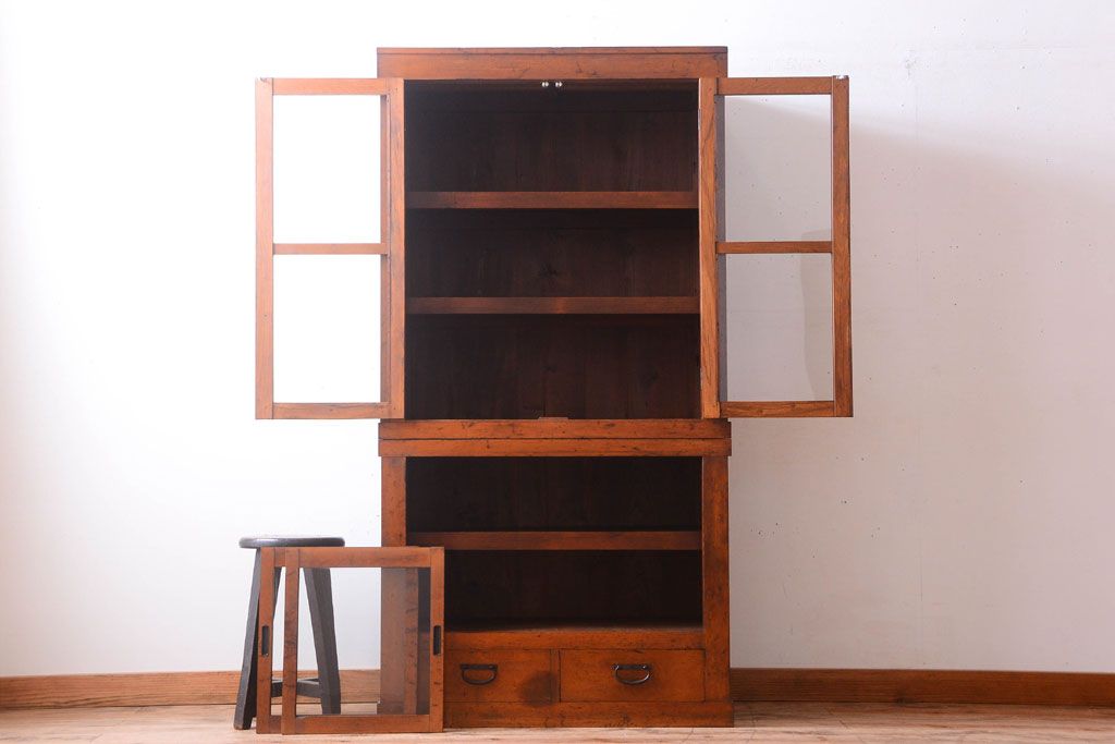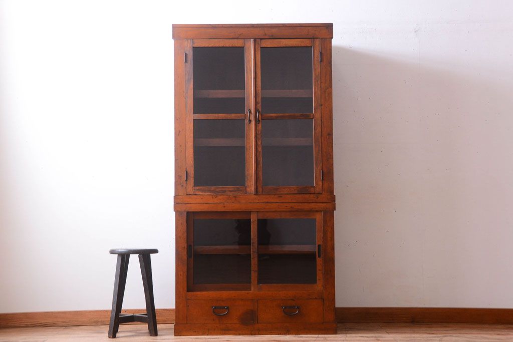 ラフジュ工房> キャビネット・戸棚> 食器棚・カップボード > レトロ家具 和製アンティーク 古い木のレトロな重ね戸棚(収納棚)