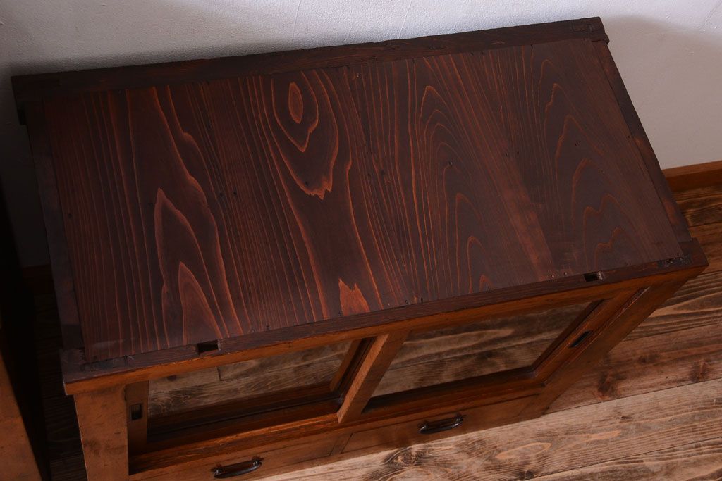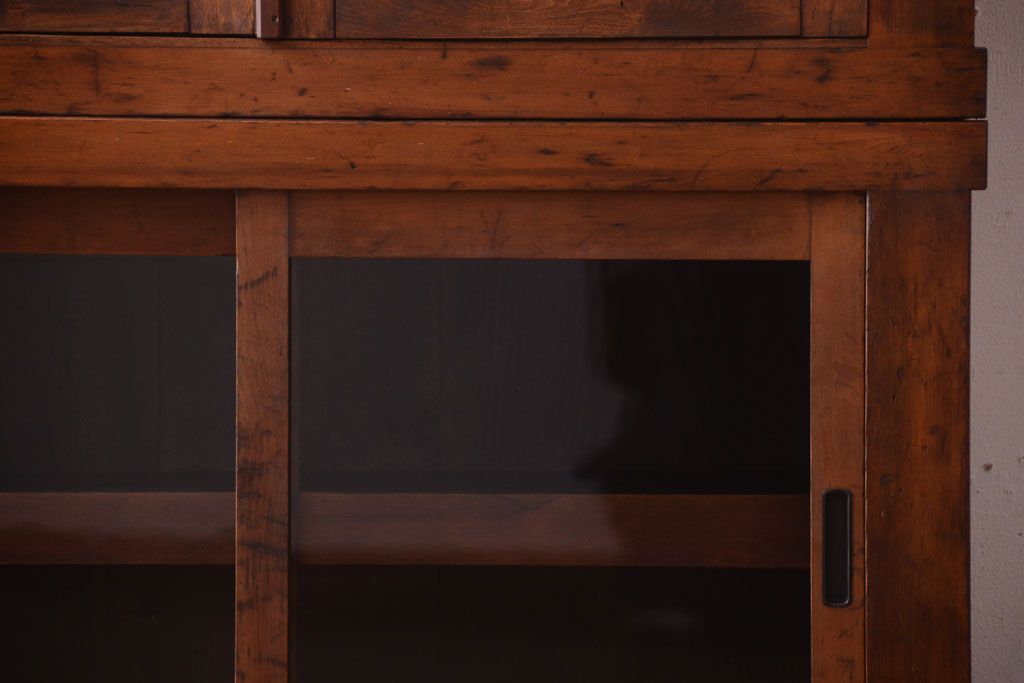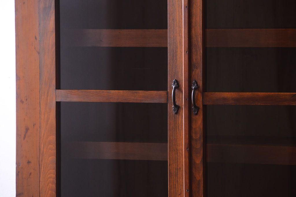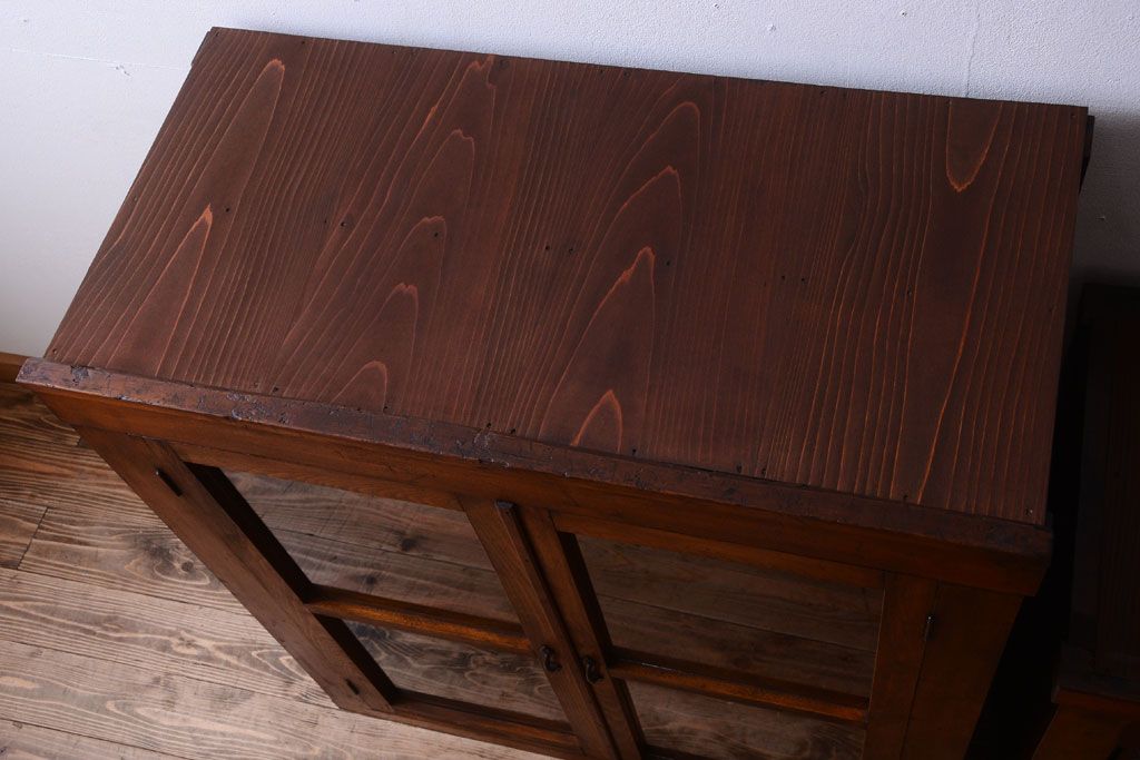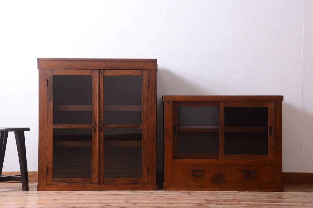 ラフジュ工房> キャビネット・戸棚> 食器棚・カップボード > レトロ家具 和製アンティーク 古い木のレトロな重ね戸棚(収納棚)