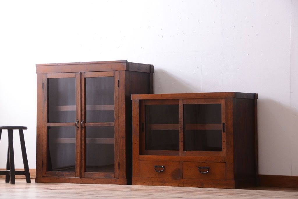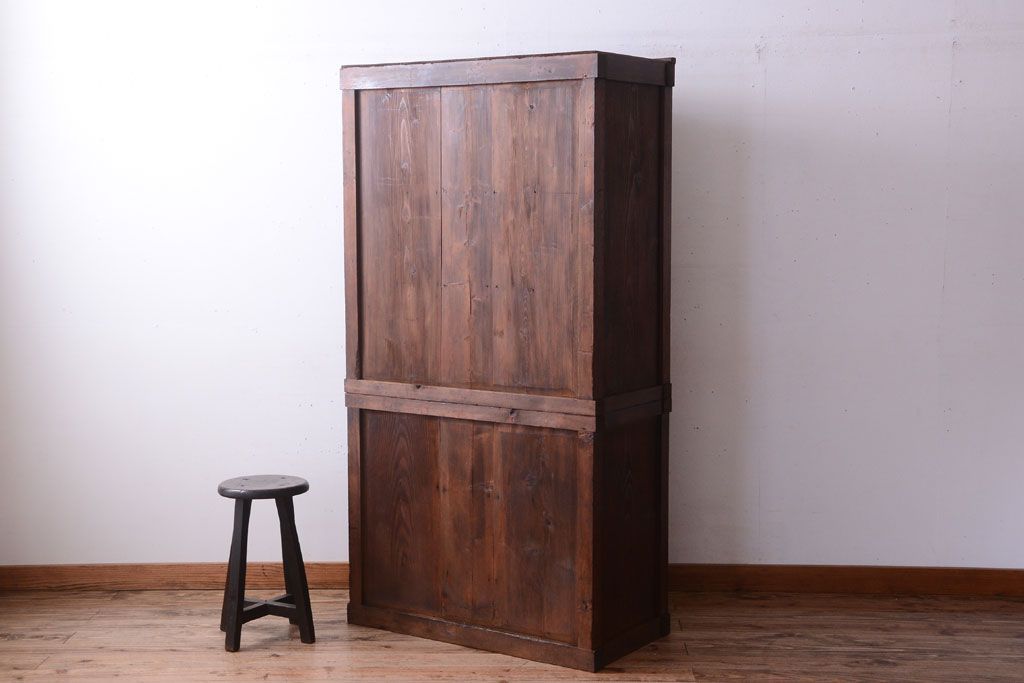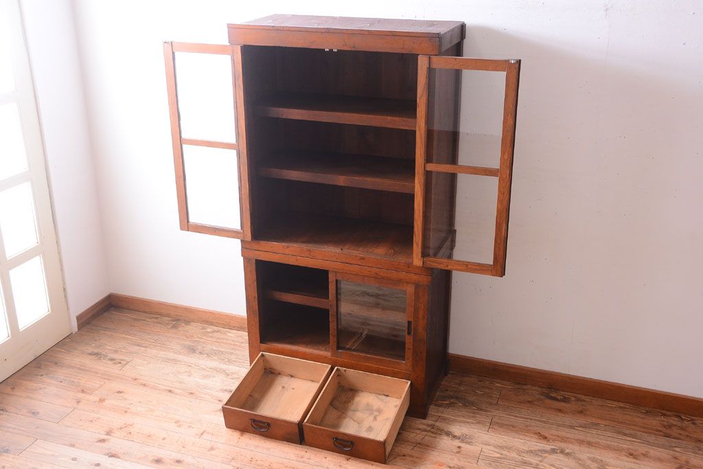 レトロ家具 和製アンティーク 古い木のレトロな重ね戸棚(収納棚)