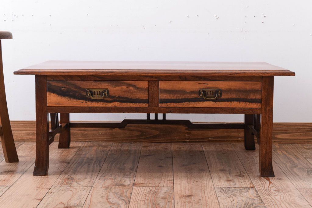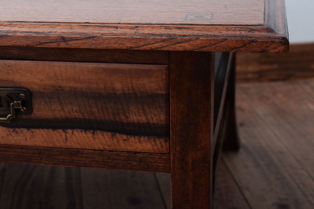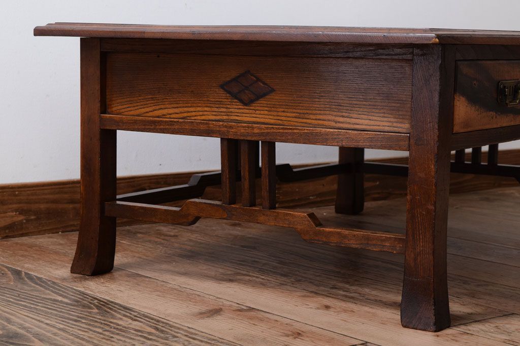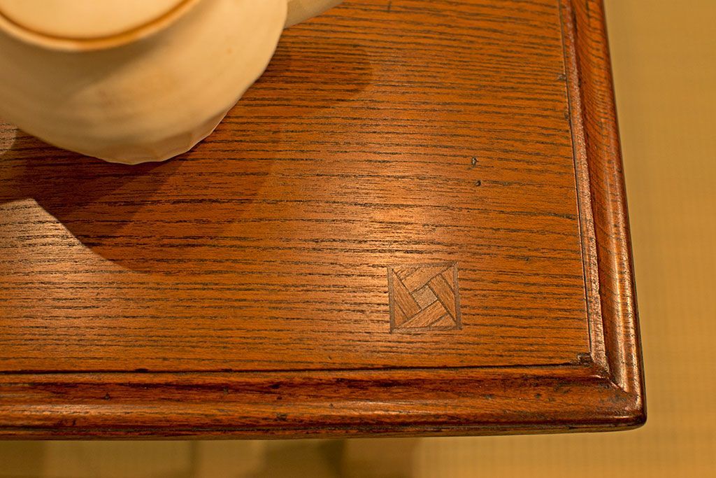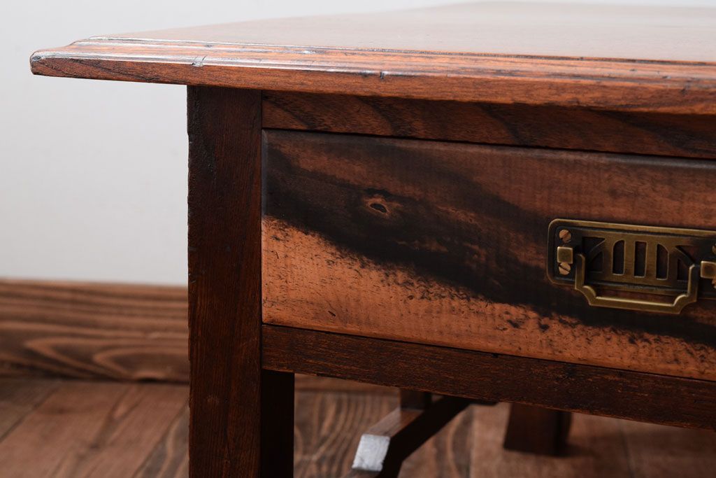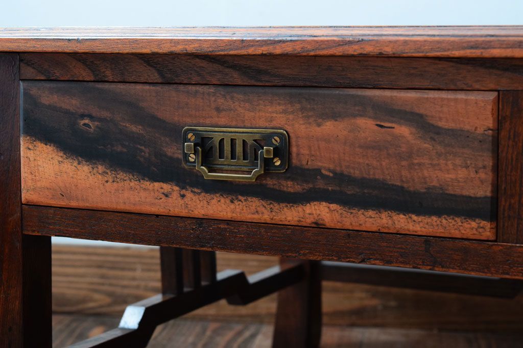 アンティーク家具 大正ロマン 象嵌入り!前板に黒柿を使用した文机