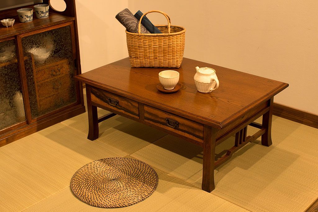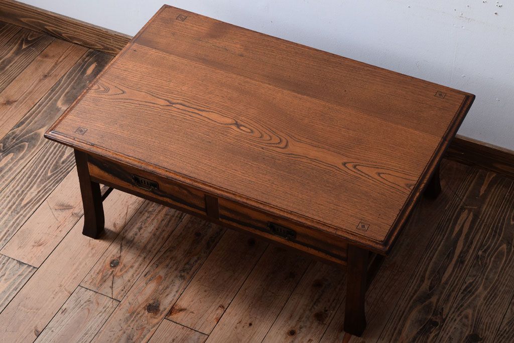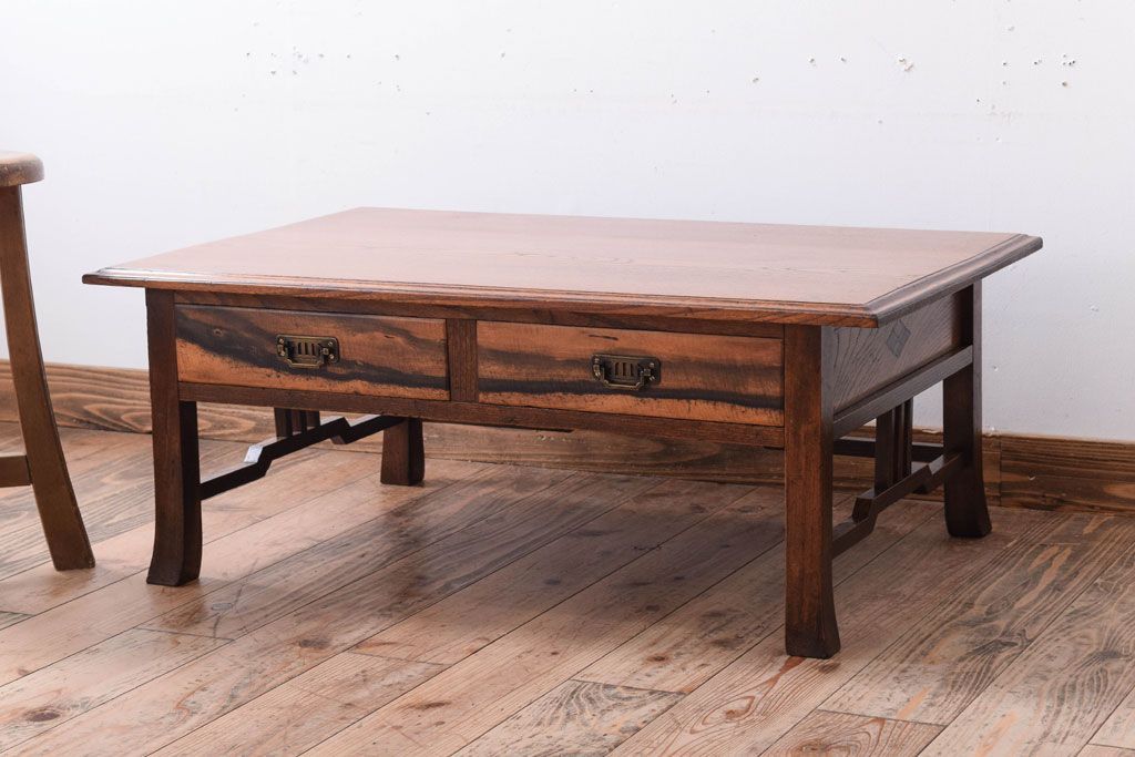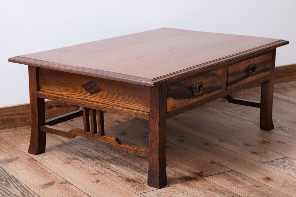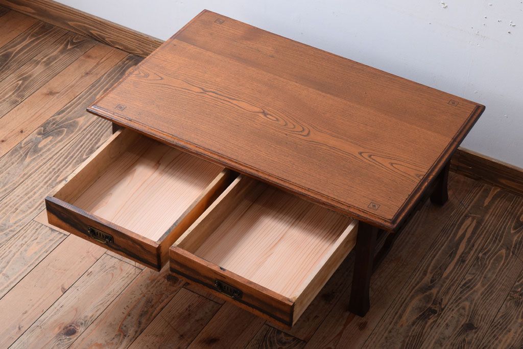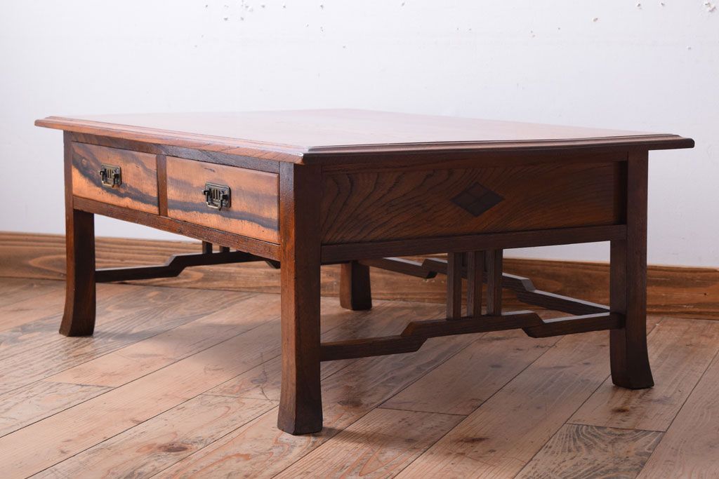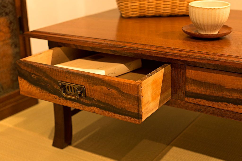 アンティーク家具 大正ロマン 象嵌入り!前板に黒柿を使用した文机