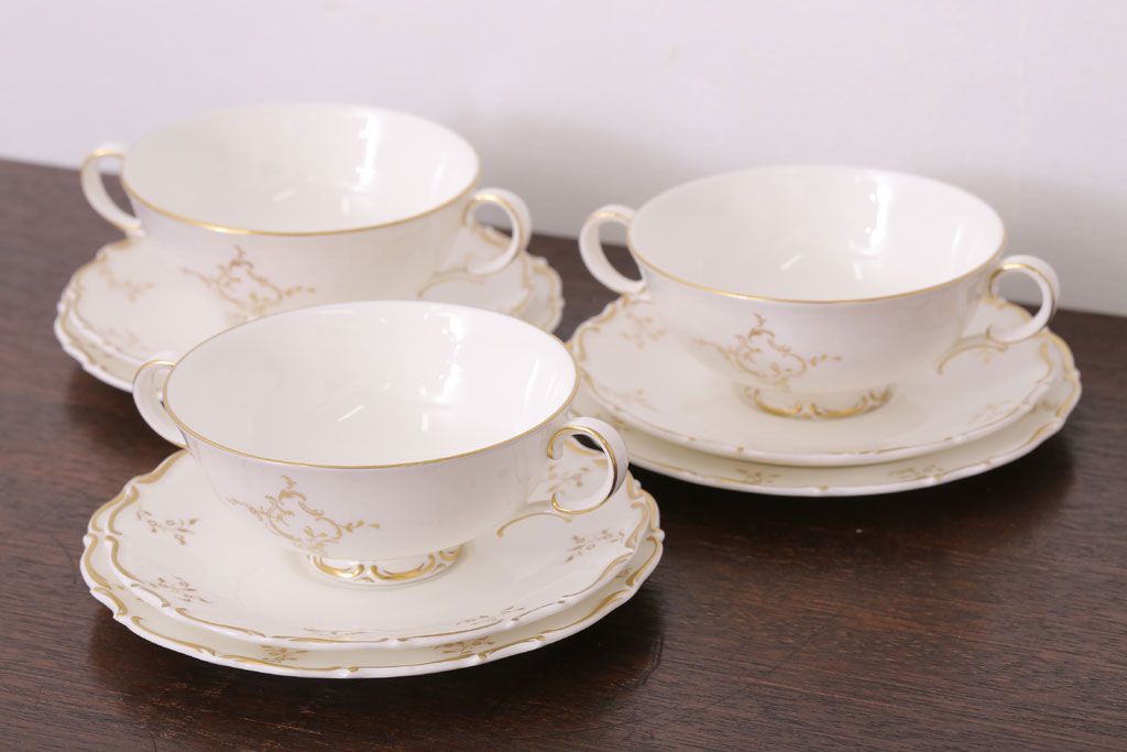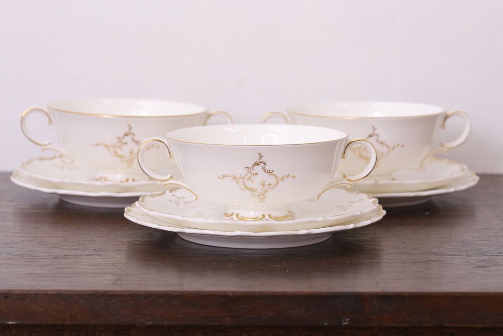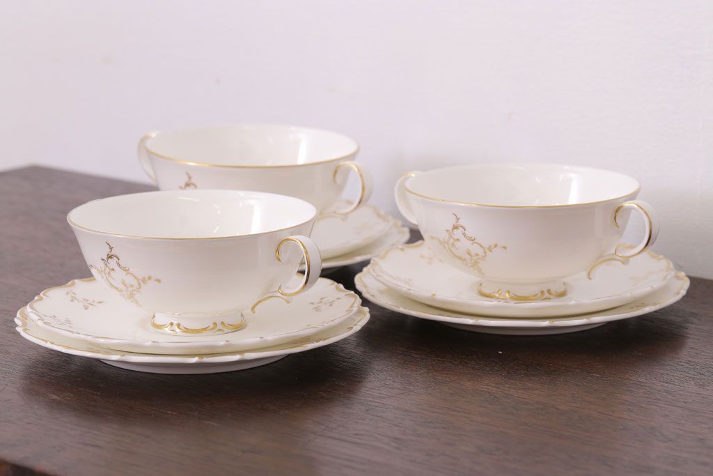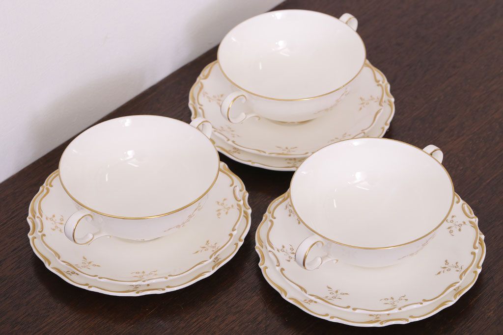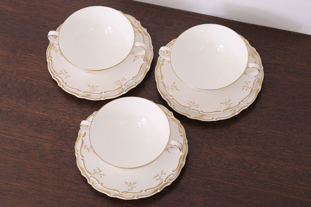 イギリスビンテージ ROYAL DOULTON(ロイヤルドルトン) monteigne スープカップトリオ3客セット(洋食器)