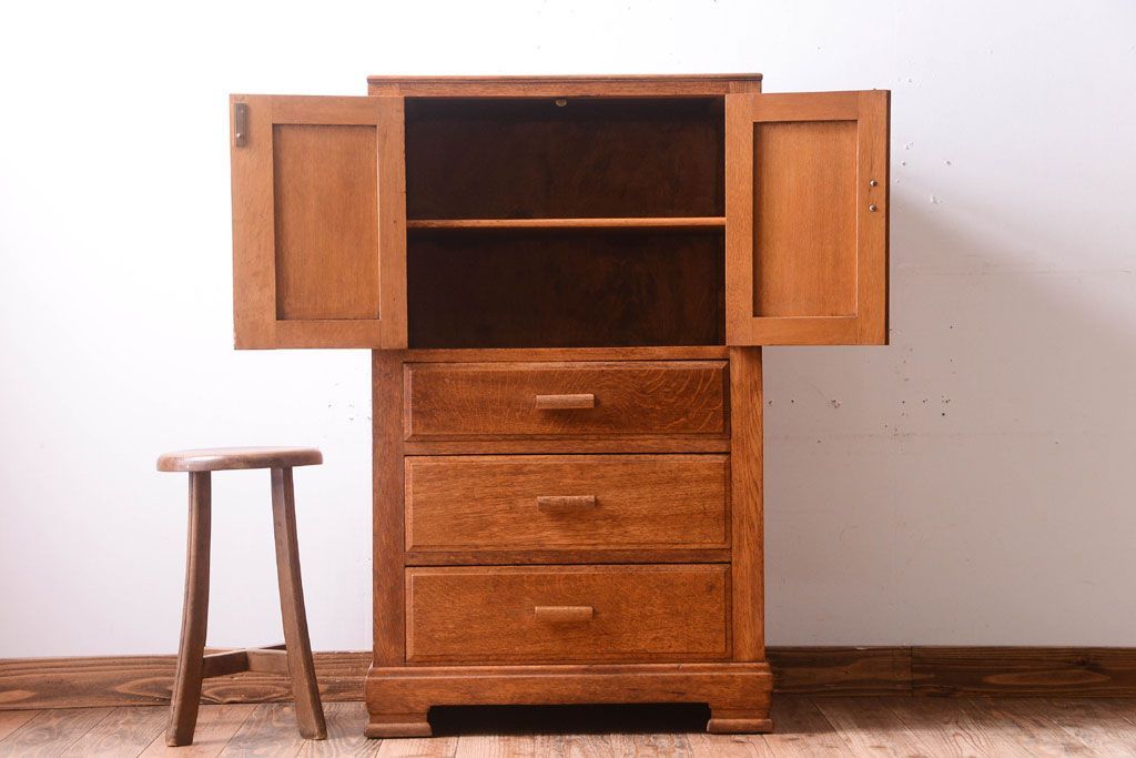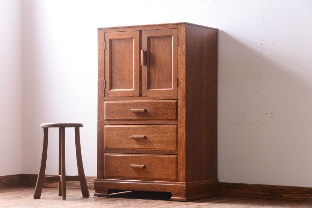 ヴィンテージ家具 イギリスビンテージ オーク材のサイドキャビネット(戸棚・収納棚)