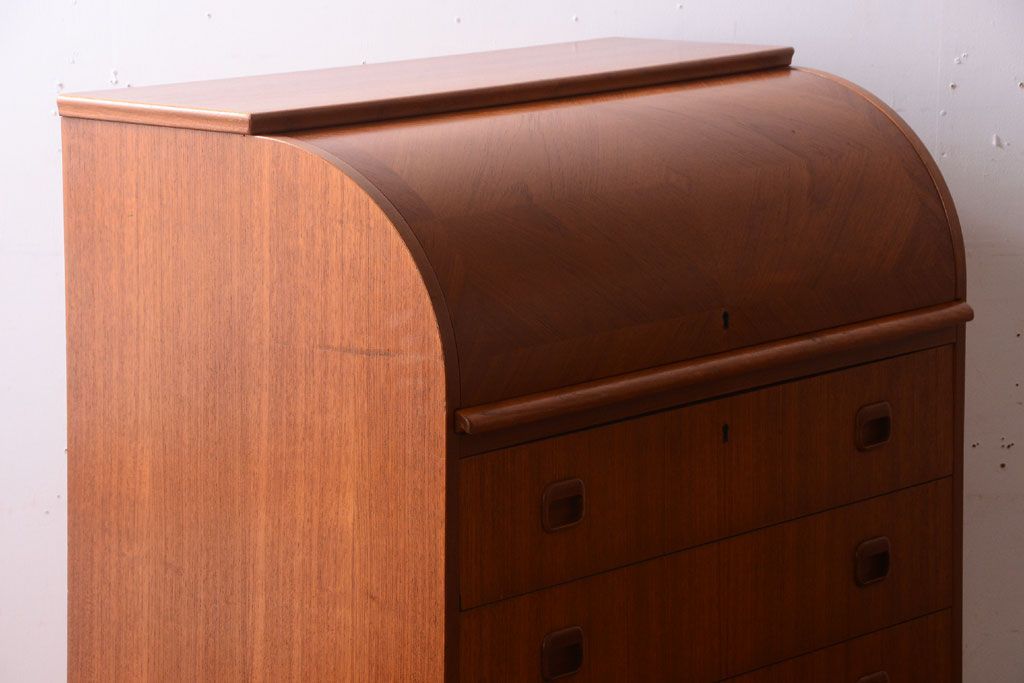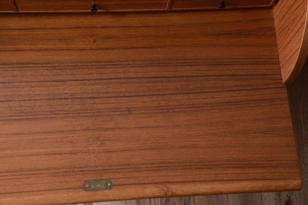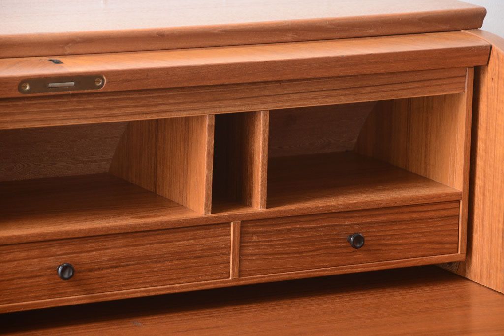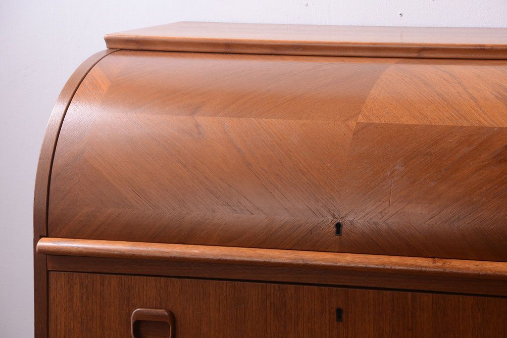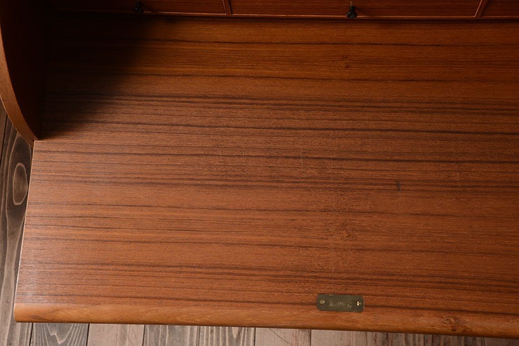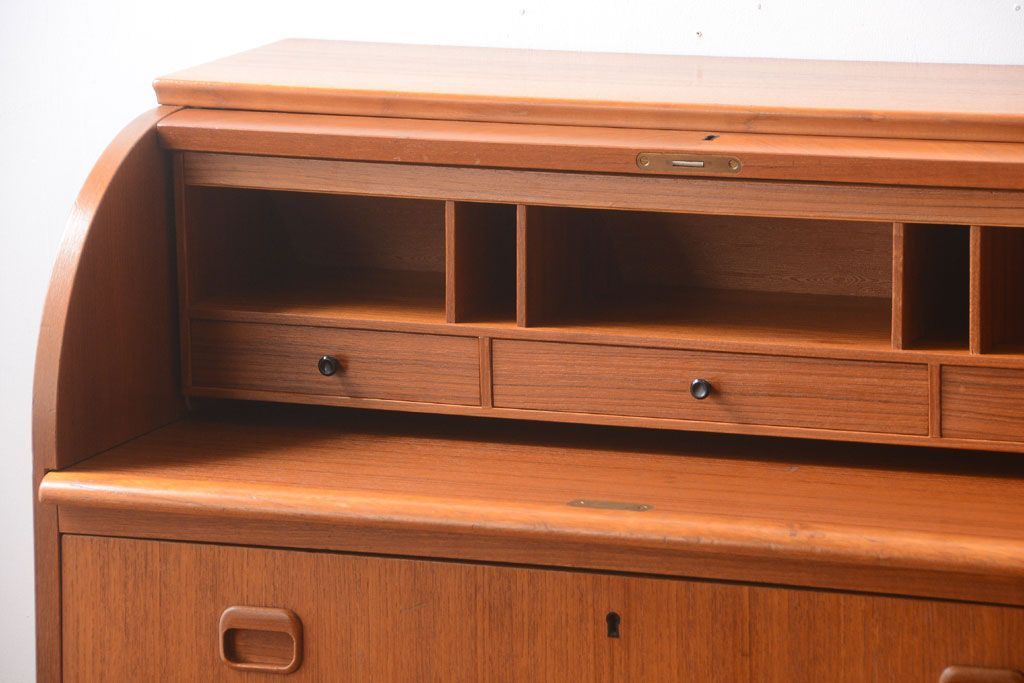 ラフジュ工房> デスク> ロールトップデスク > ヴィンテージ家具 北欧ビンテージ 高級品 珍しいチーク材製シリンダートップデスク