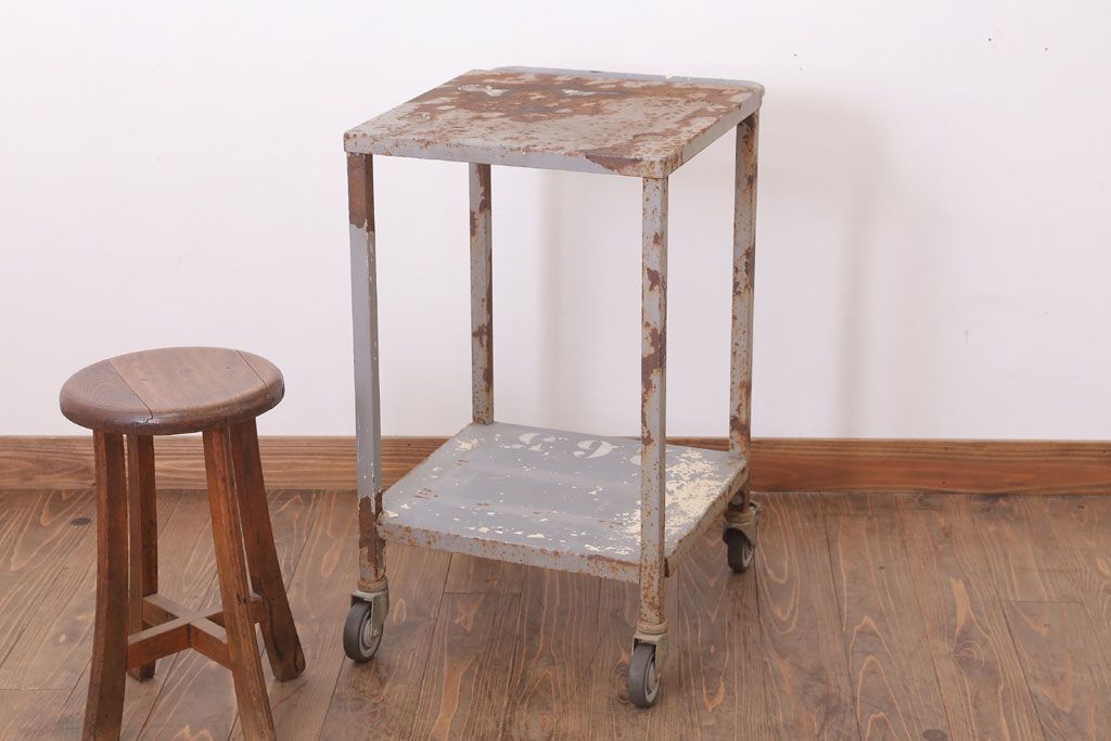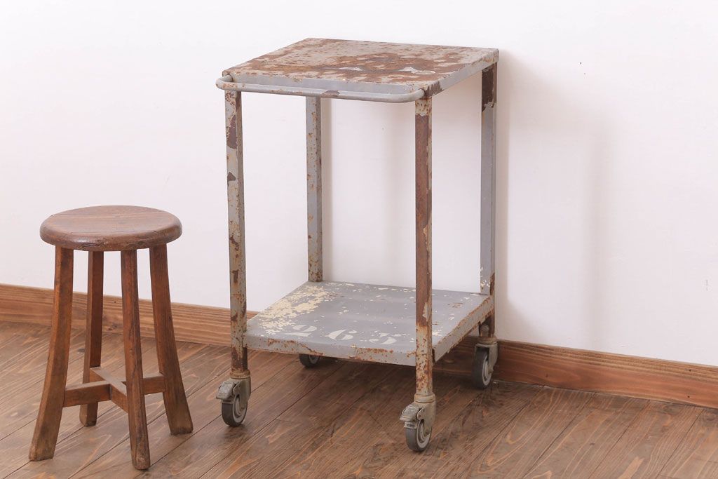 ヴィンテージ家具 イギリスビンテージ アイアン製!キャスター付きサイドテーブル