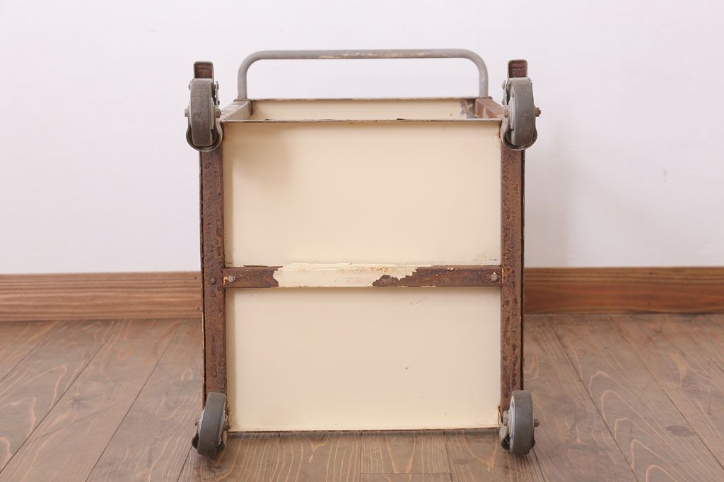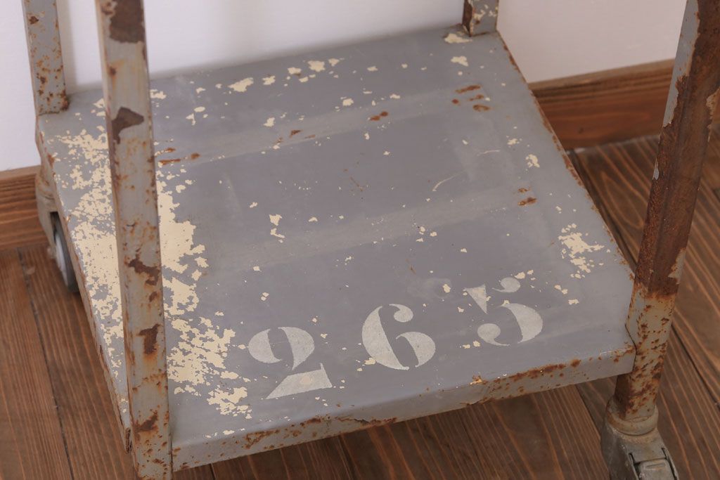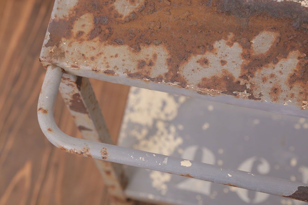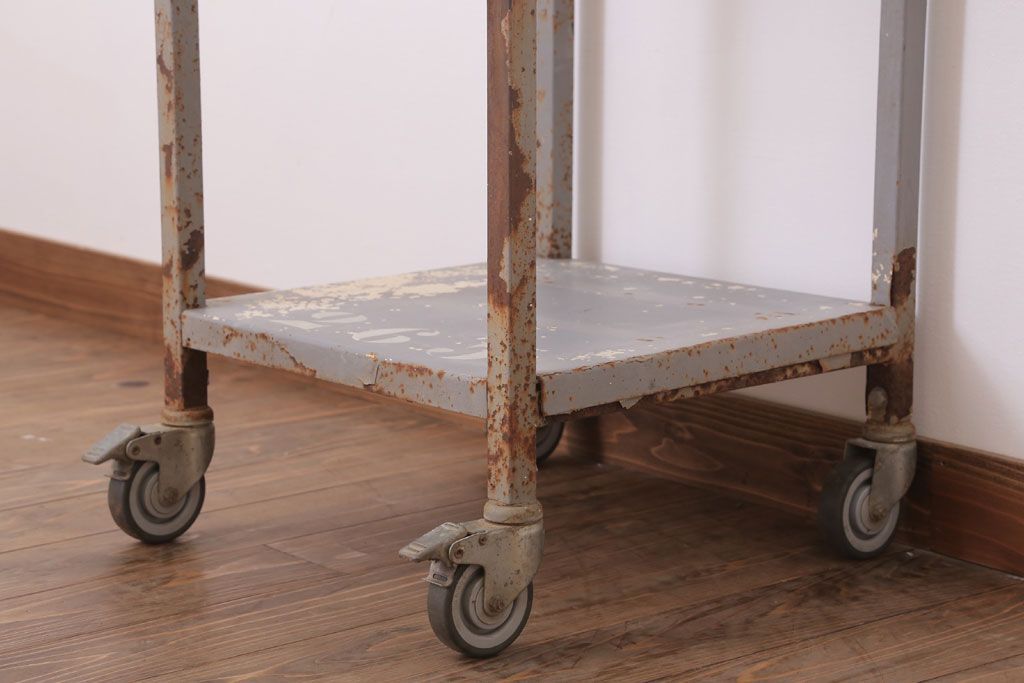 ラフジュ工房> オープンラック・シェルフ> ワゴン > ヴィンテージ家具 イギリスビンテージ アイアン製!キャスター付きサイドテーブル