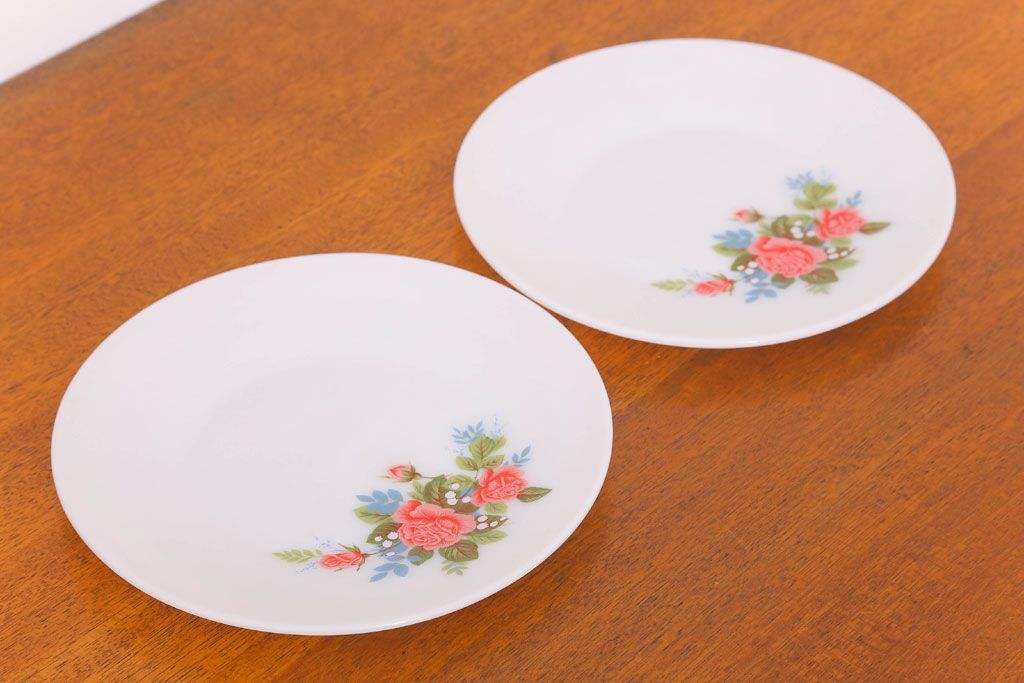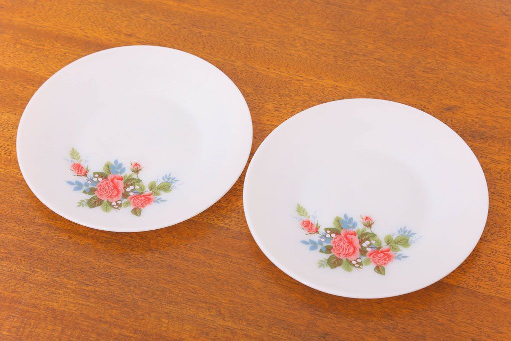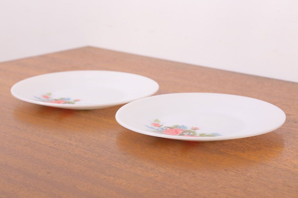 アンティーク雑貨 イギリスビンテージ JAJ パイレックス Cottage Rose(コテージ ローズ)シリーズ ミルクガラスのプレート2枚セット(洋食器)