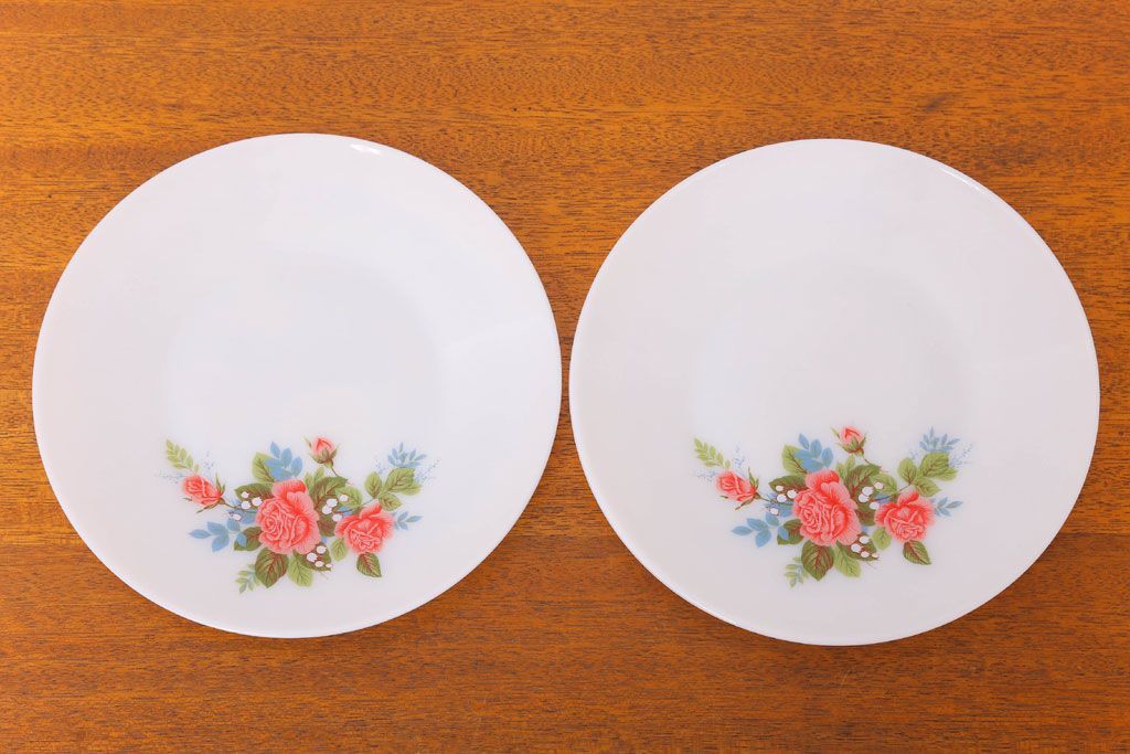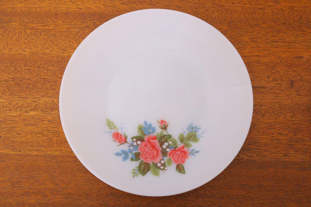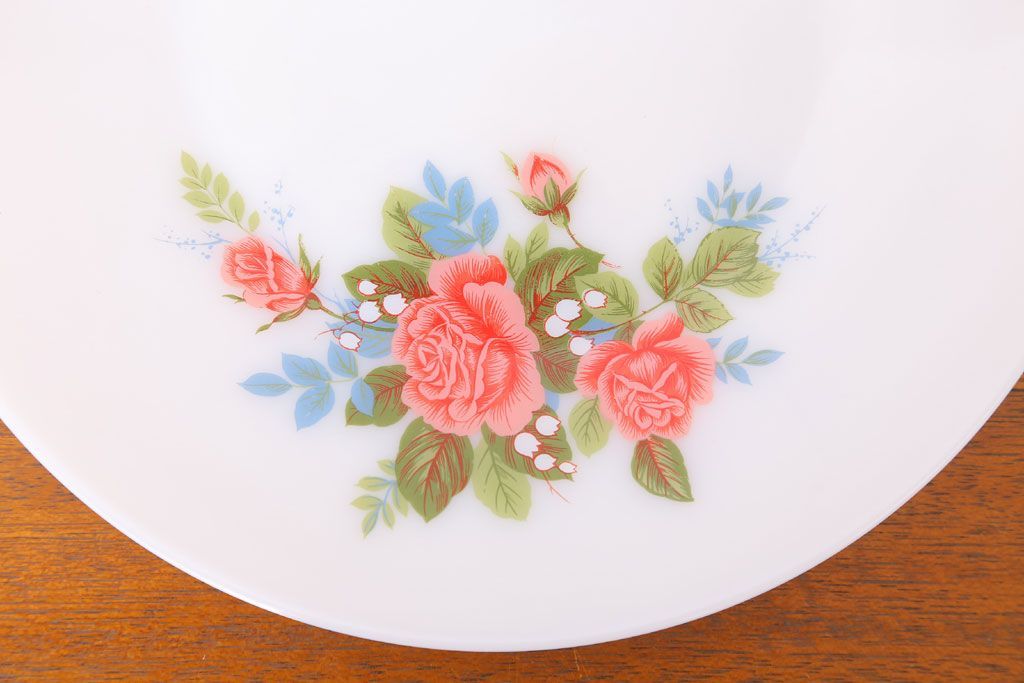 ラフジュ工房> 洋食器・キッチン用品 > アンティーク雑貨 イギリスビンテージ JAJ パイレックス Cottage Rose(コテージ ローズ)シリーズ ミルクガラスのプレート2枚セット(洋食器)