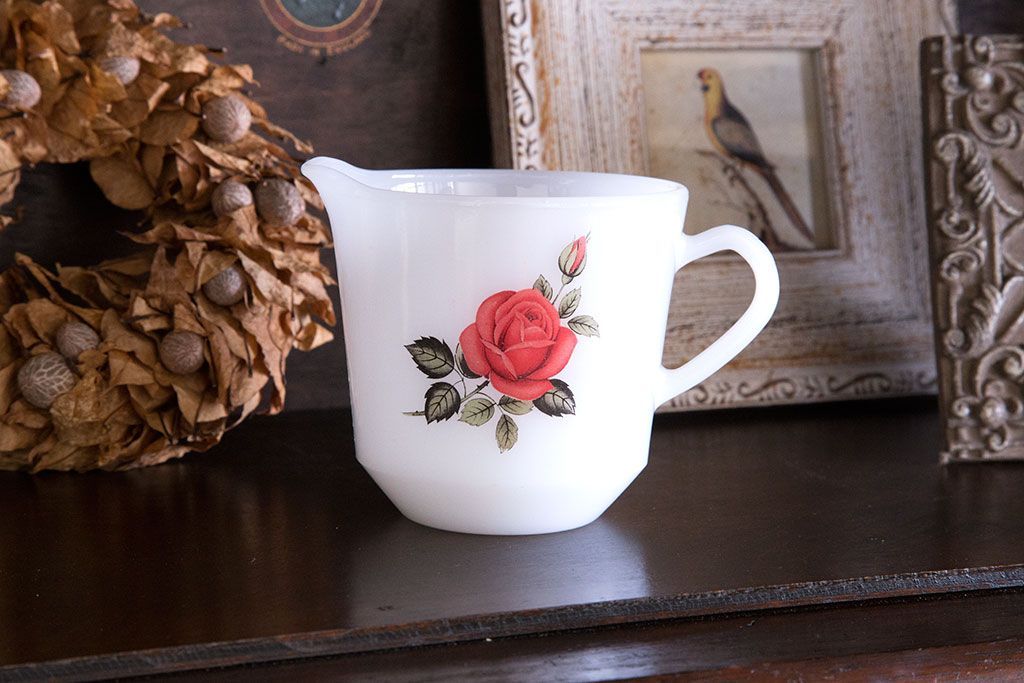 ラフジュ工房> 洋食器・キッチン用品> ポット・シュガーポット・クリーマー > イギリスビンテージ PHOENIX(フェニックス) バラ柄!レトロなミルクジャグ