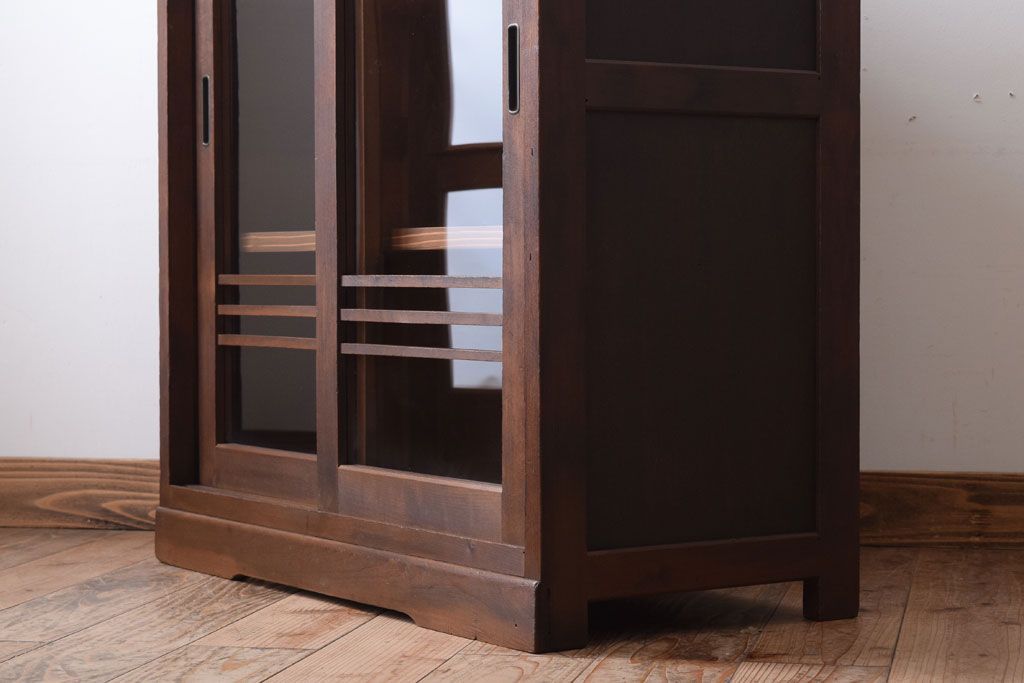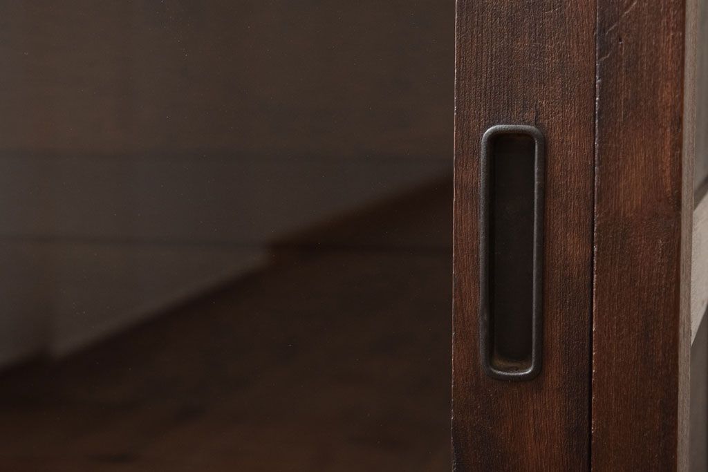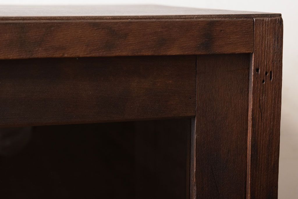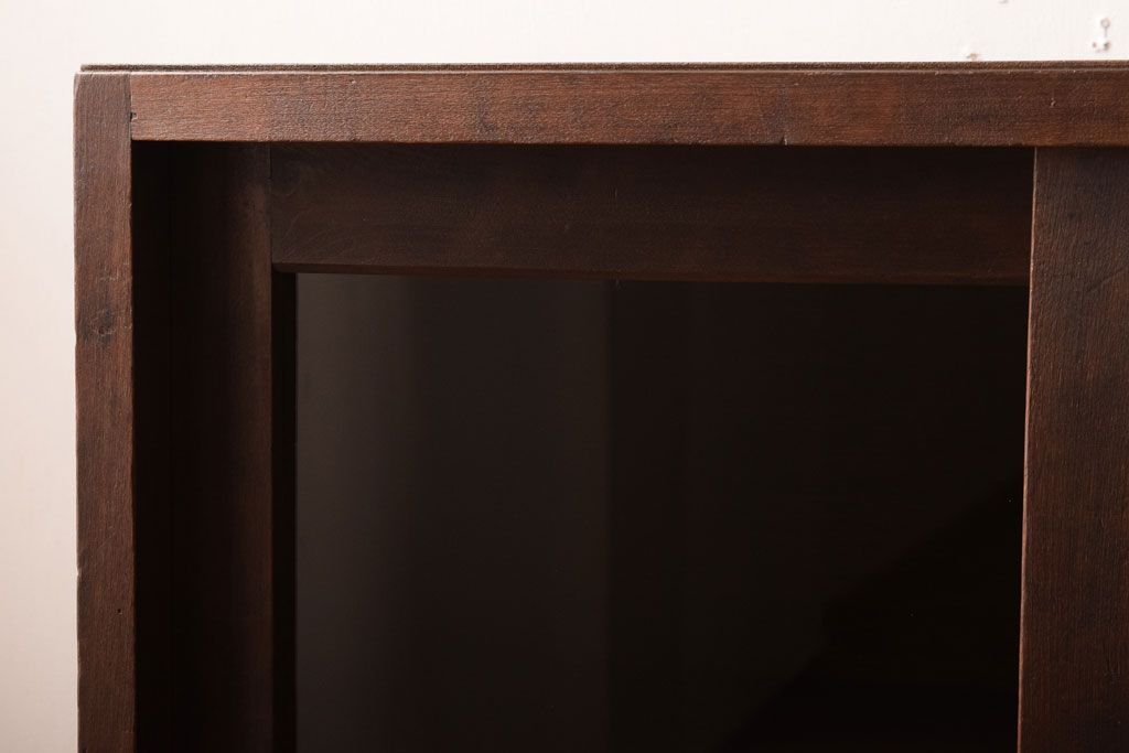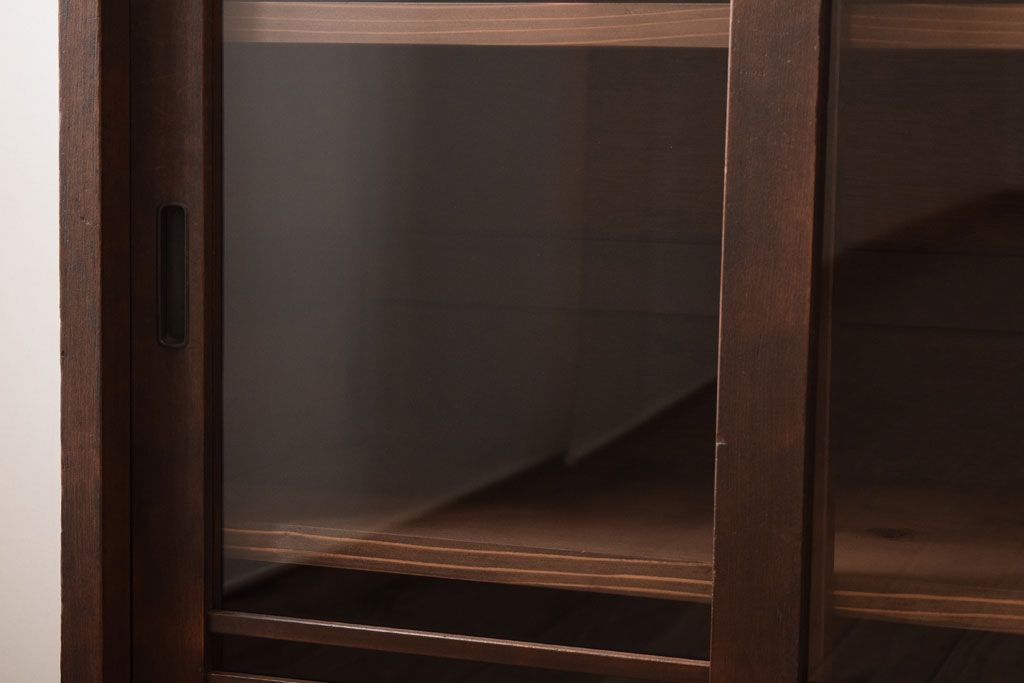 アンティーク家具 古い木の和製アンティークガラス戸棚