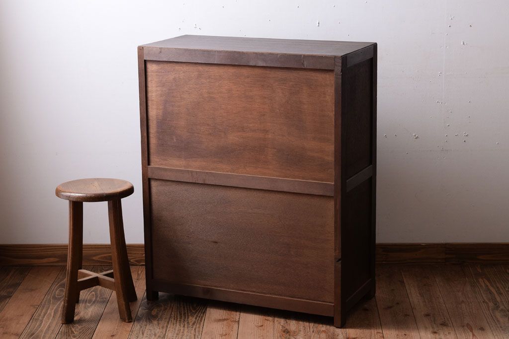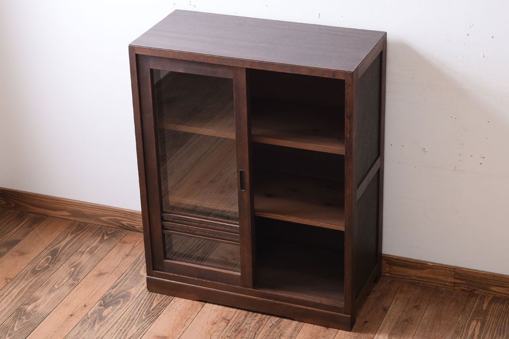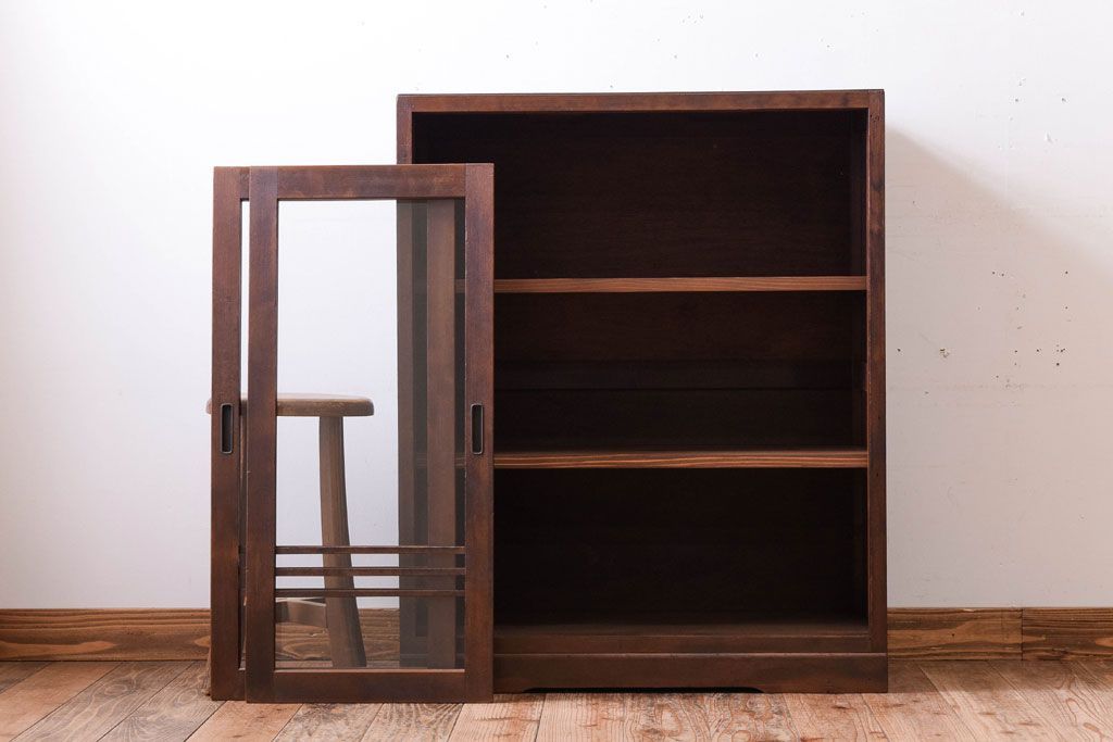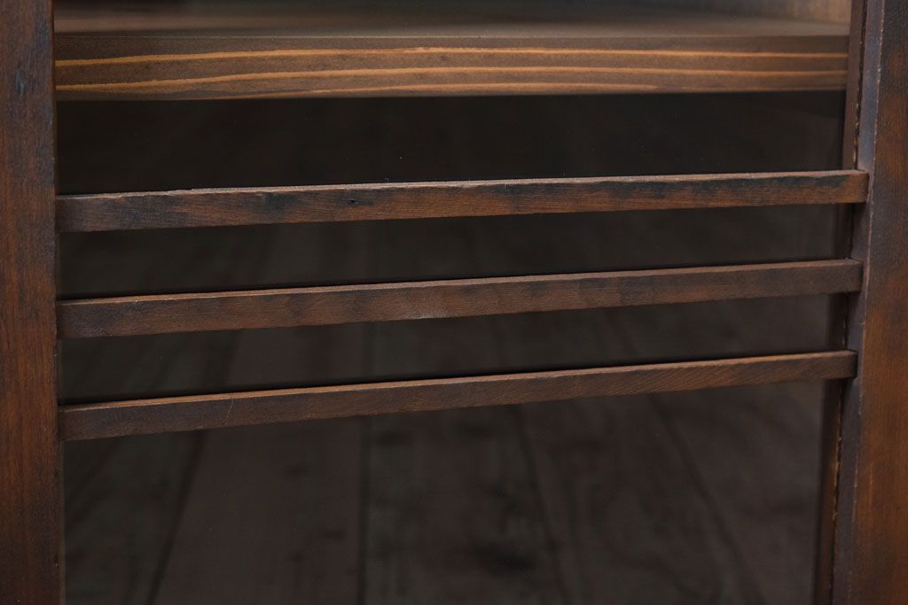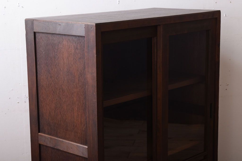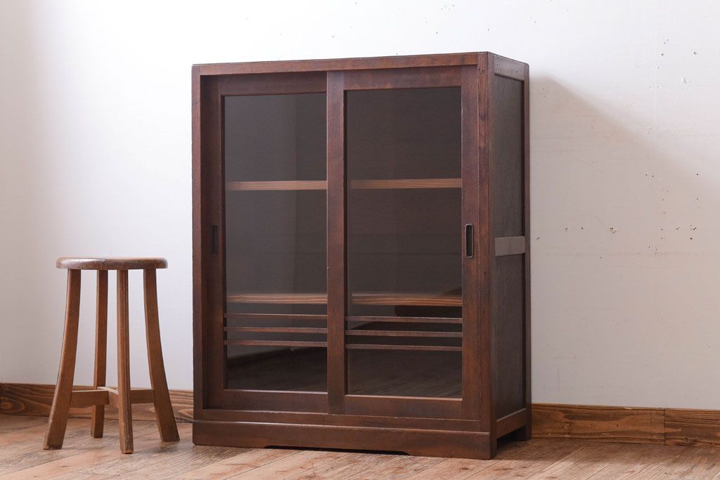 アンティーク家具 古い木の和製アンティークガラス戸棚
