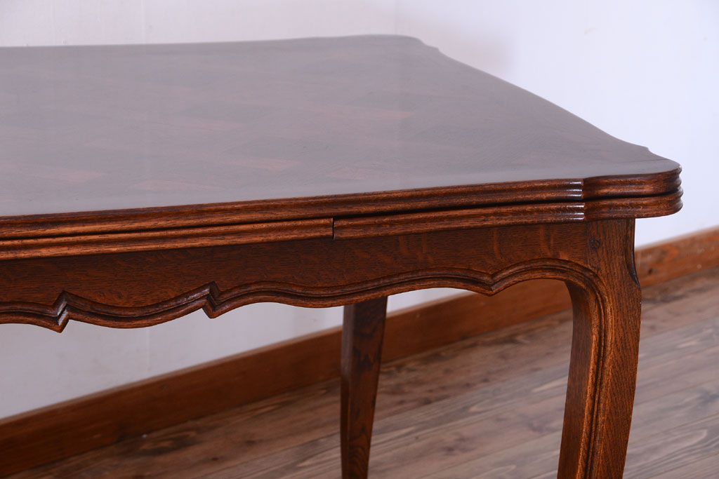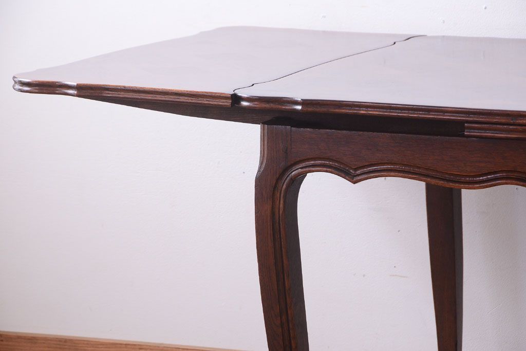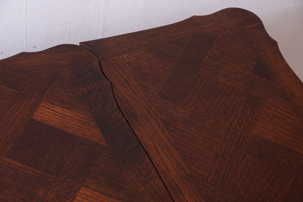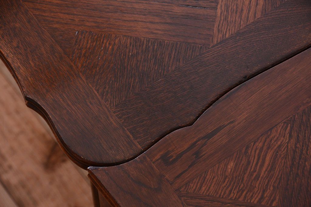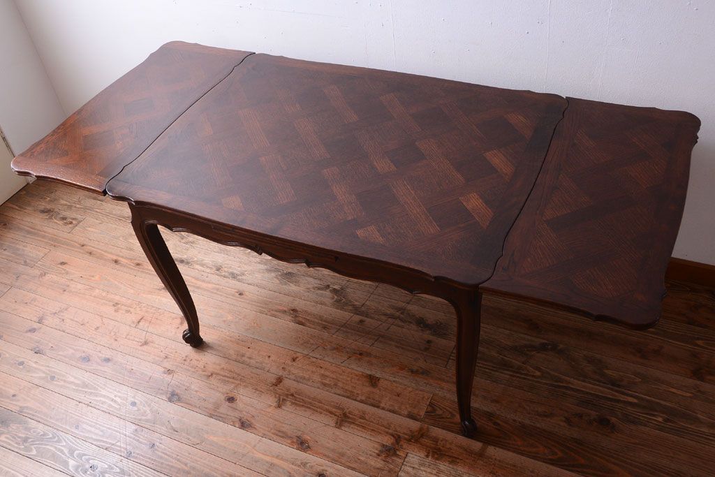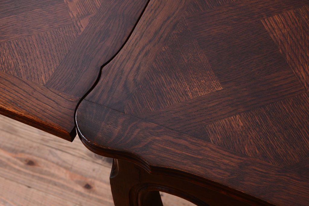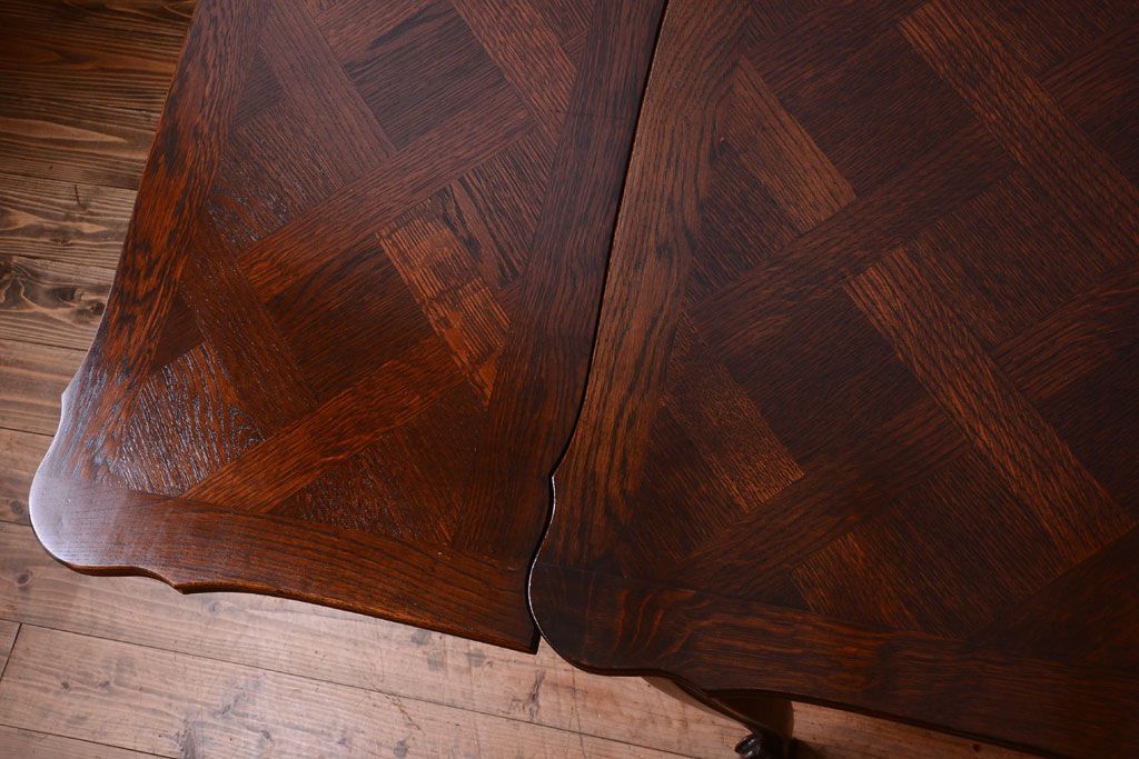 アンティーク家具 パーケット天板 オーク材 フランスアンティーク 猫脚のドローリーフテーブル