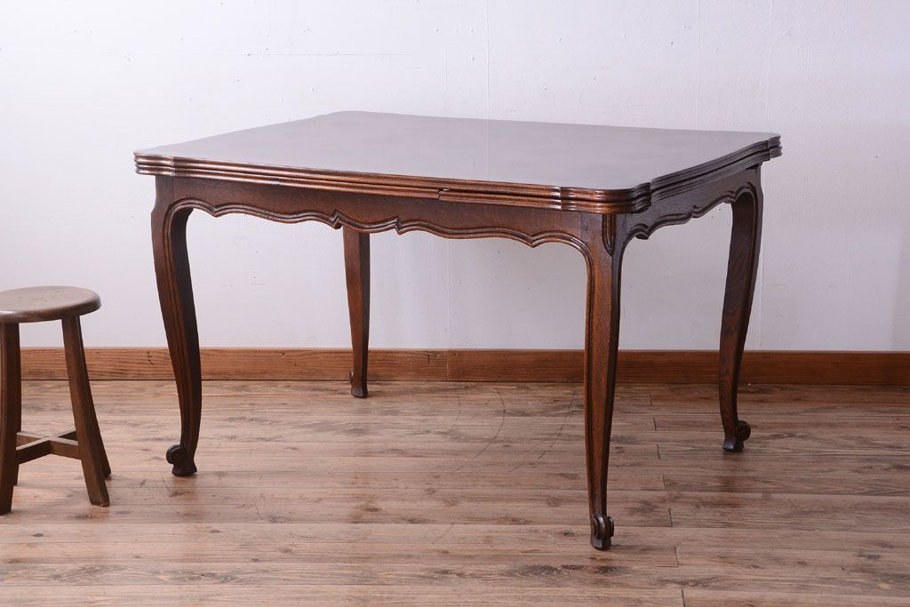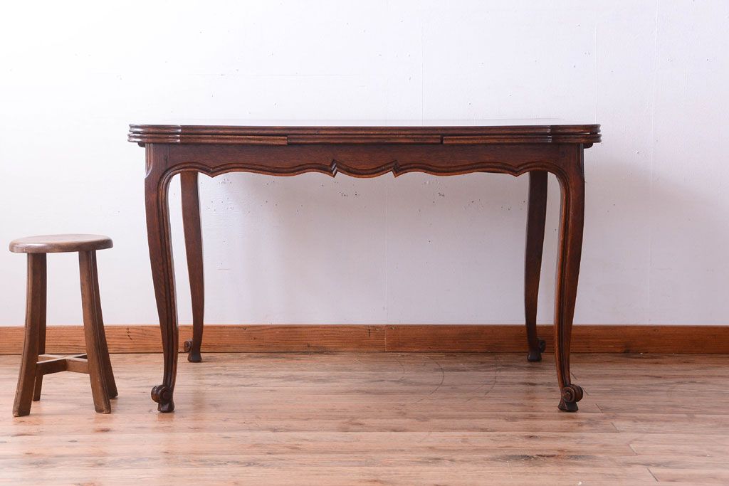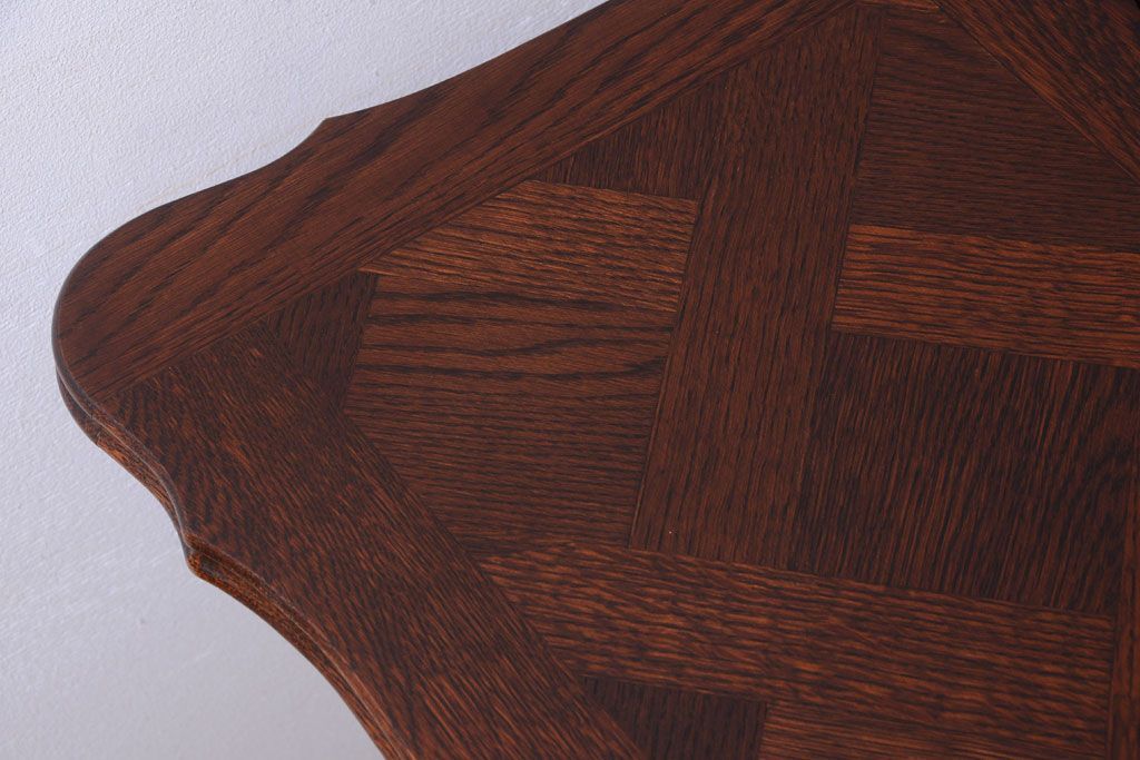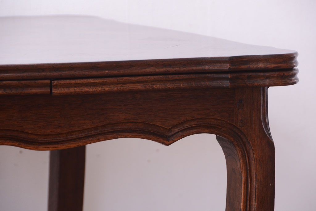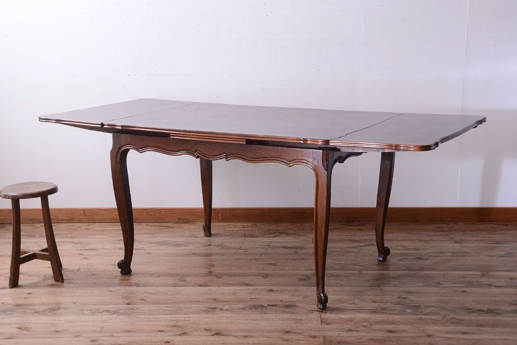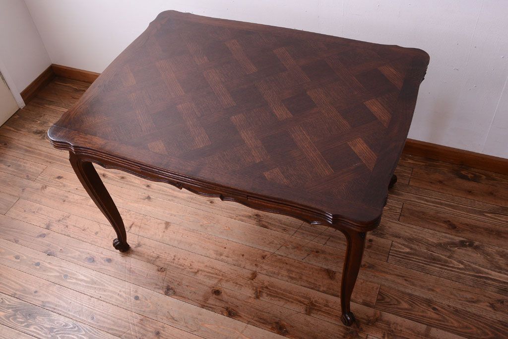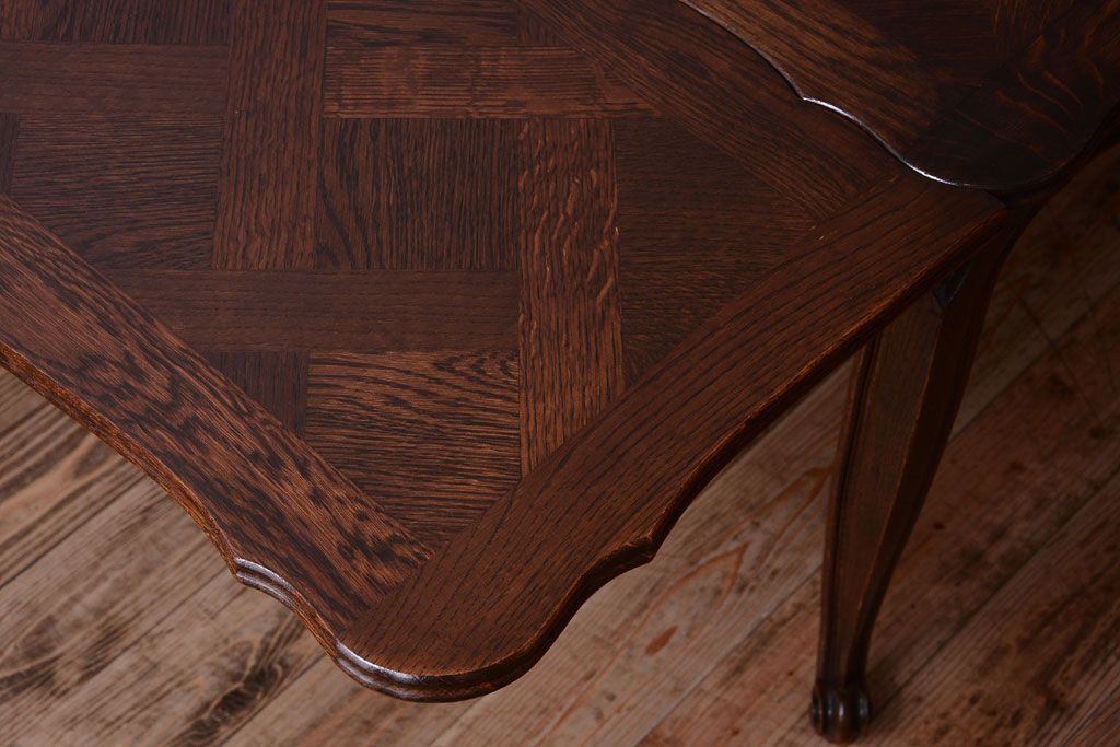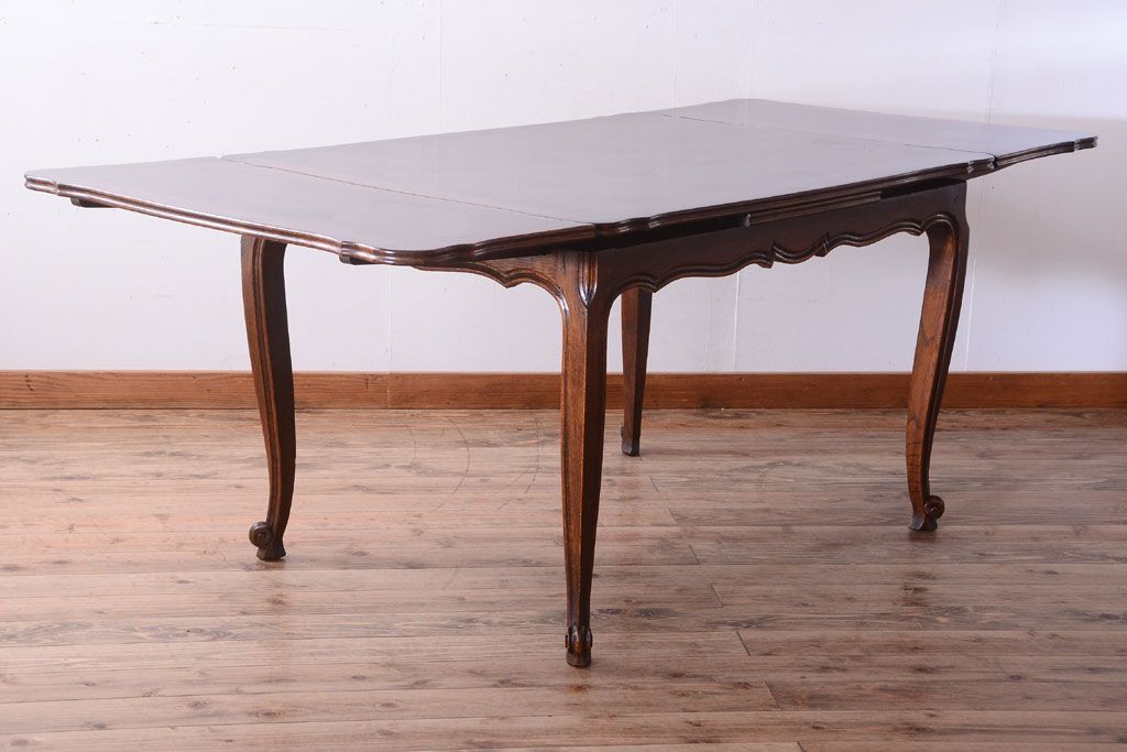 アンティーク家具 パーケット天板 オーク材 フランスアンティーク 猫脚のドローリーフテーブル