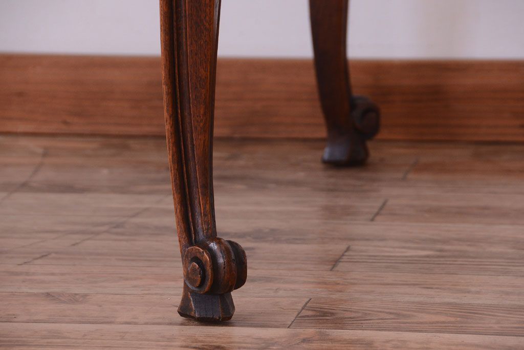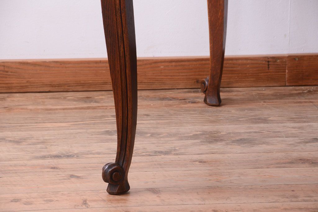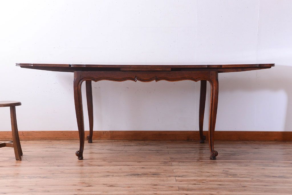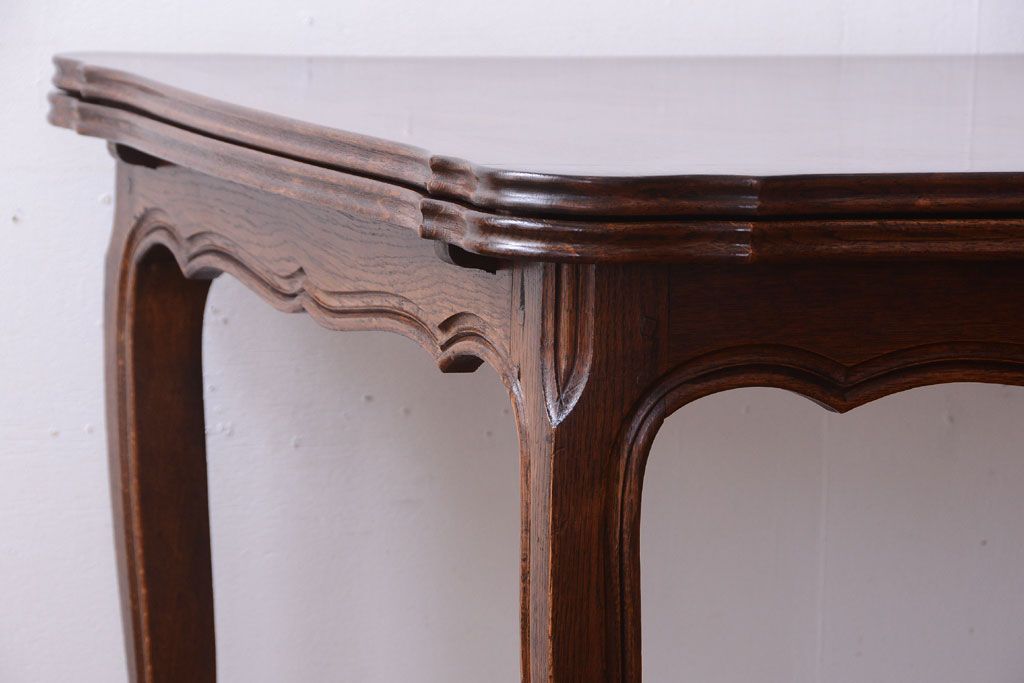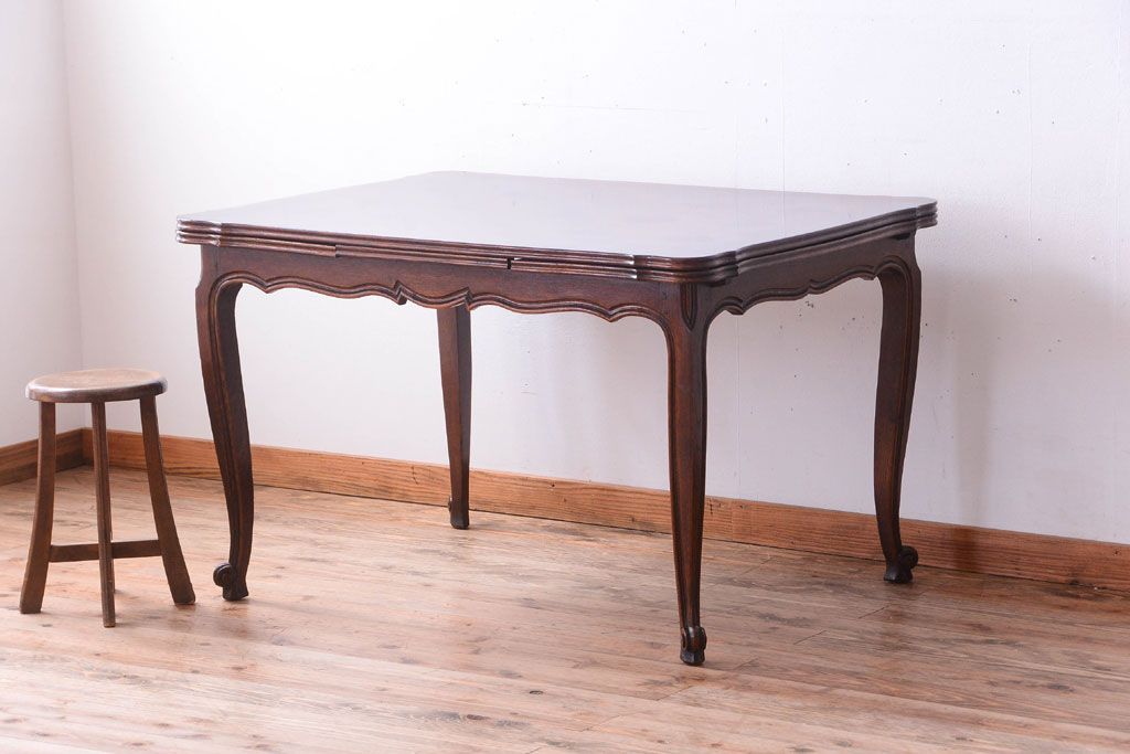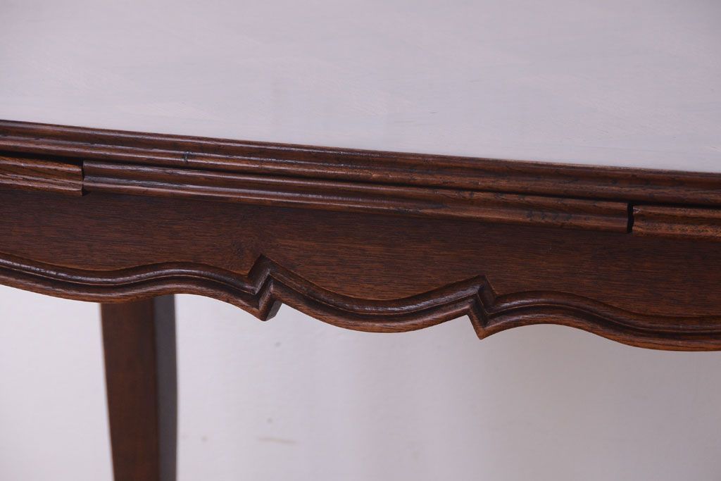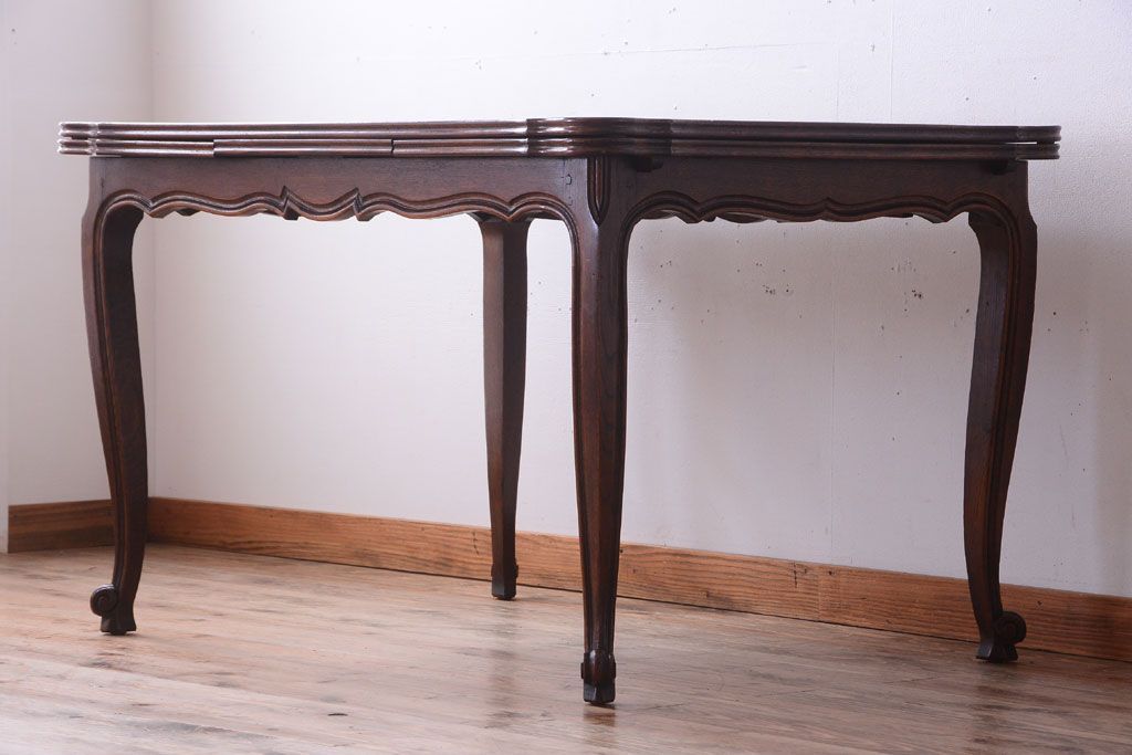 アンティーク家具 パーケット天板 オーク材 フランスアンティーク 猫脚のドローリーフテーブル