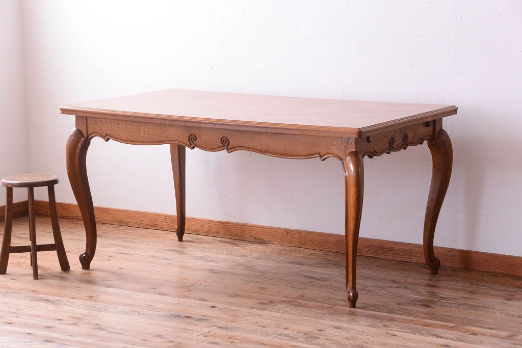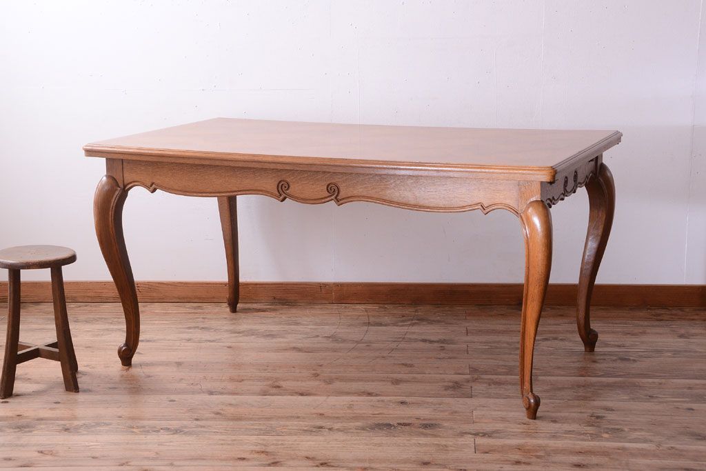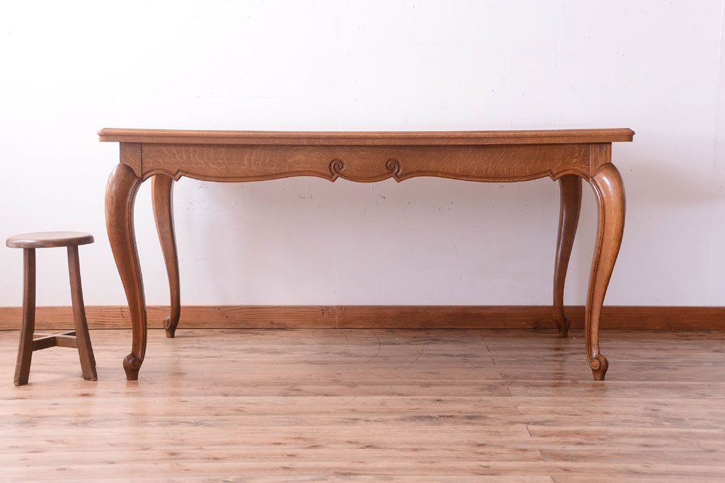 ラフジュ工房> テーブル> 6人用ダイニングテーブル > ヴィンテージ家具 フランスビンテージ パーケット天板 オーク材 猫脚のダイニングテーブル (エクステンションテーブル)(2)