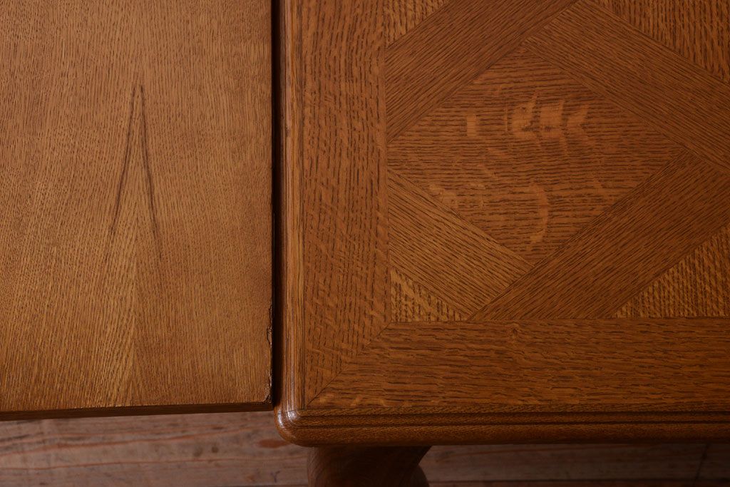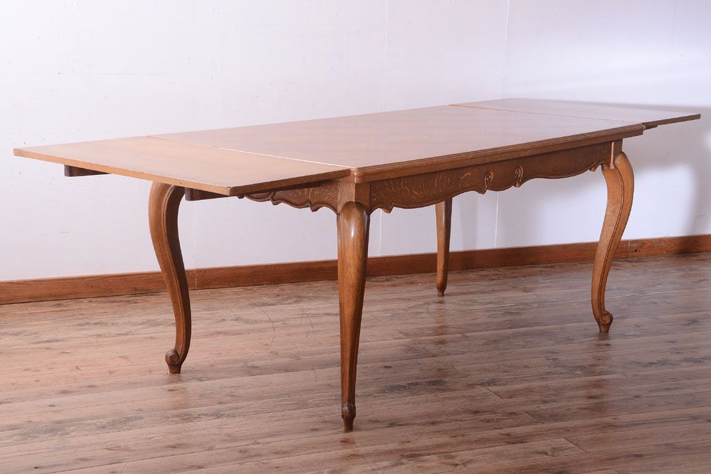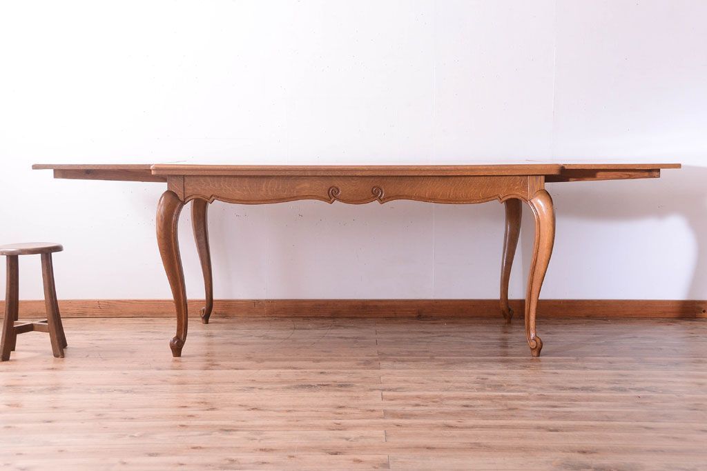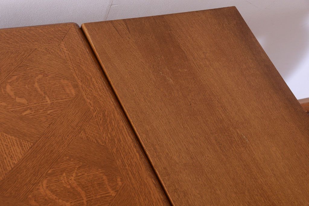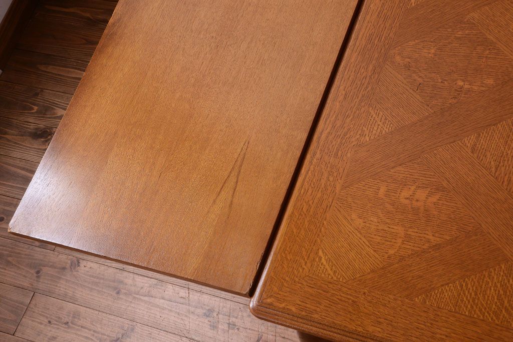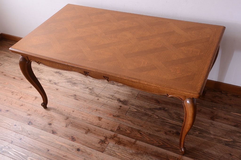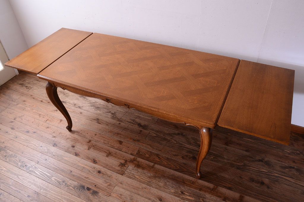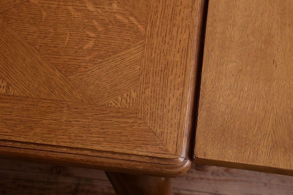 ヴィンテージ家具 フランスビンテージ パーケット天板 オーク材 猫脚のダイニングテーブル (エクステンションテーブル)(2)