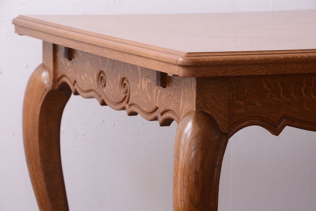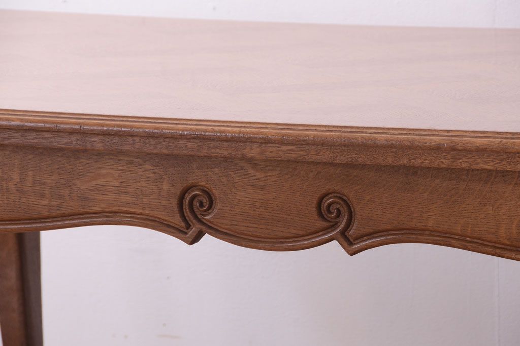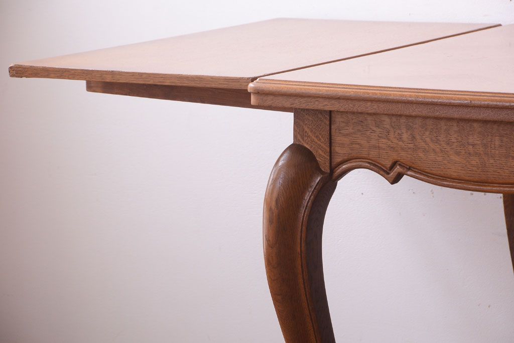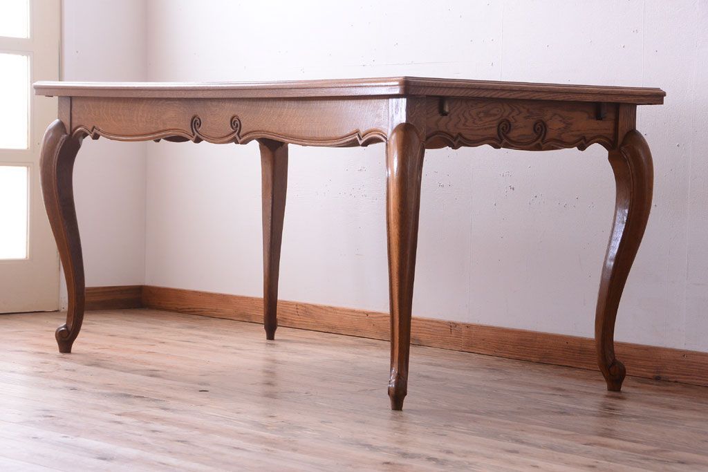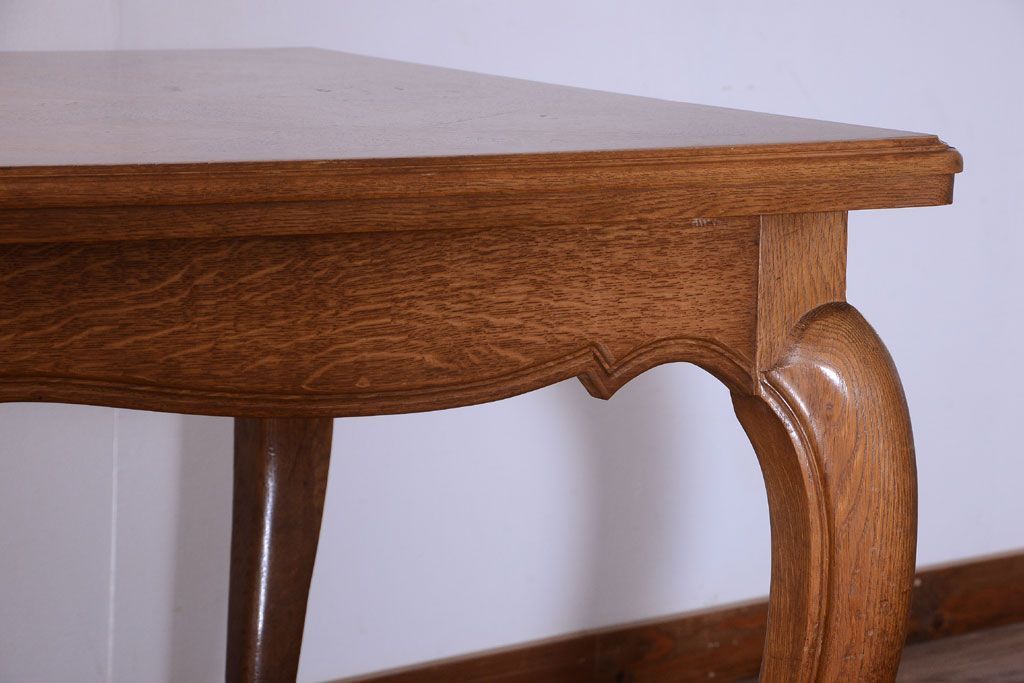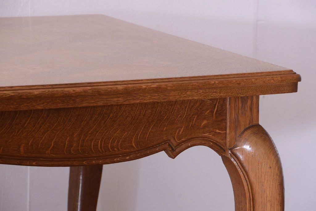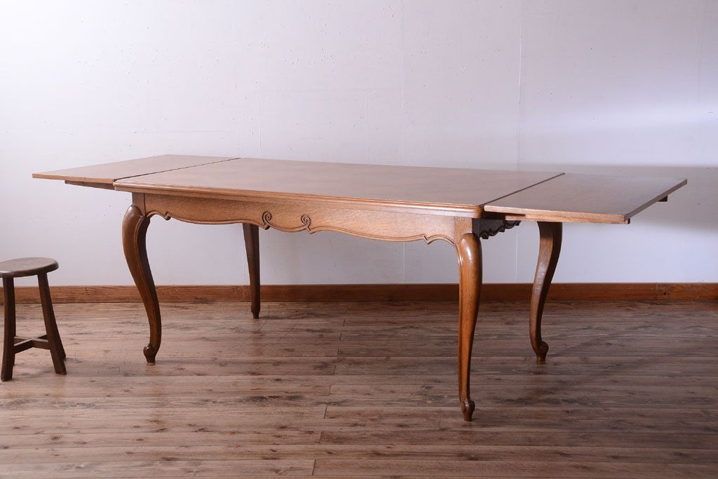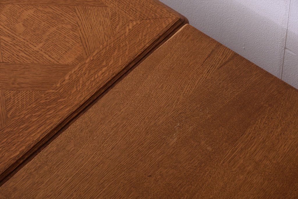 ヴィンテージ家具 フランスビンテージ パーケット天板 オーク材 猫脚のダイニングテーブル (エクステンションテーブル)(2)