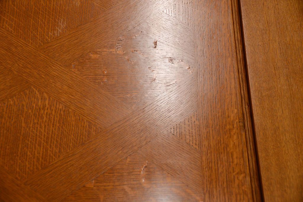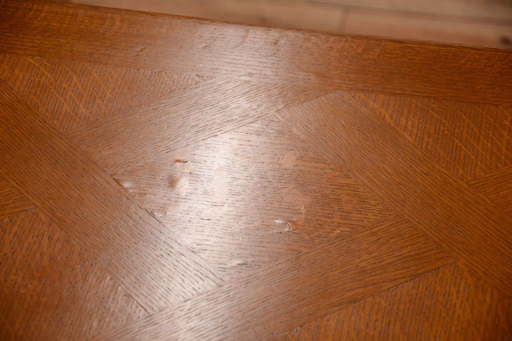 ラフジュ工房> テーブル> エクステンションテーブル > ヴィンテージ家具 フランスビンテージ パーケット天板 オーク材 猫脚のダイニングテーブル (エクステンションテーブル)(2)