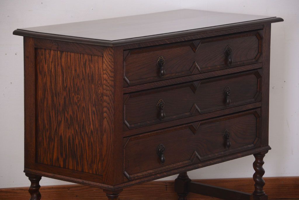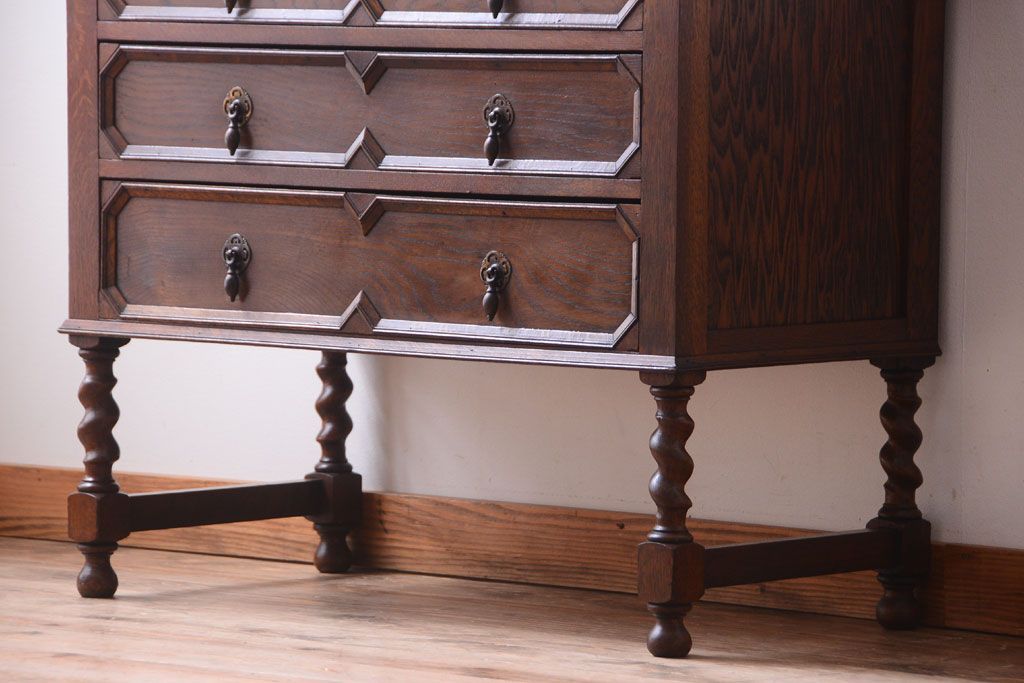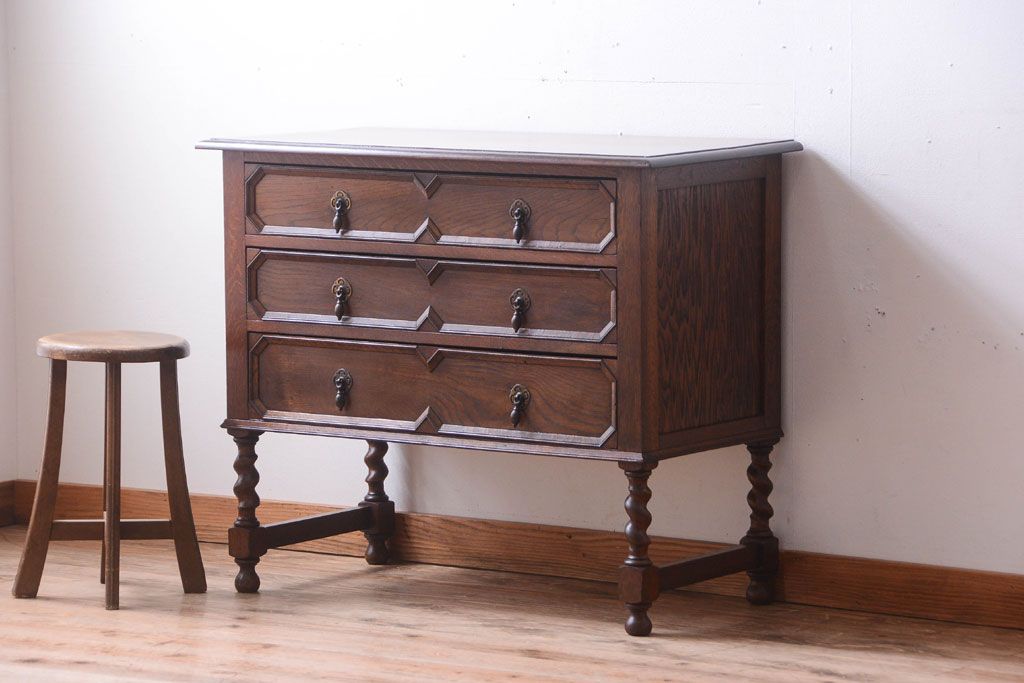 アンティーク家具 オーク材 ツイストレッグの上品なイギリスアンティークチェスト
