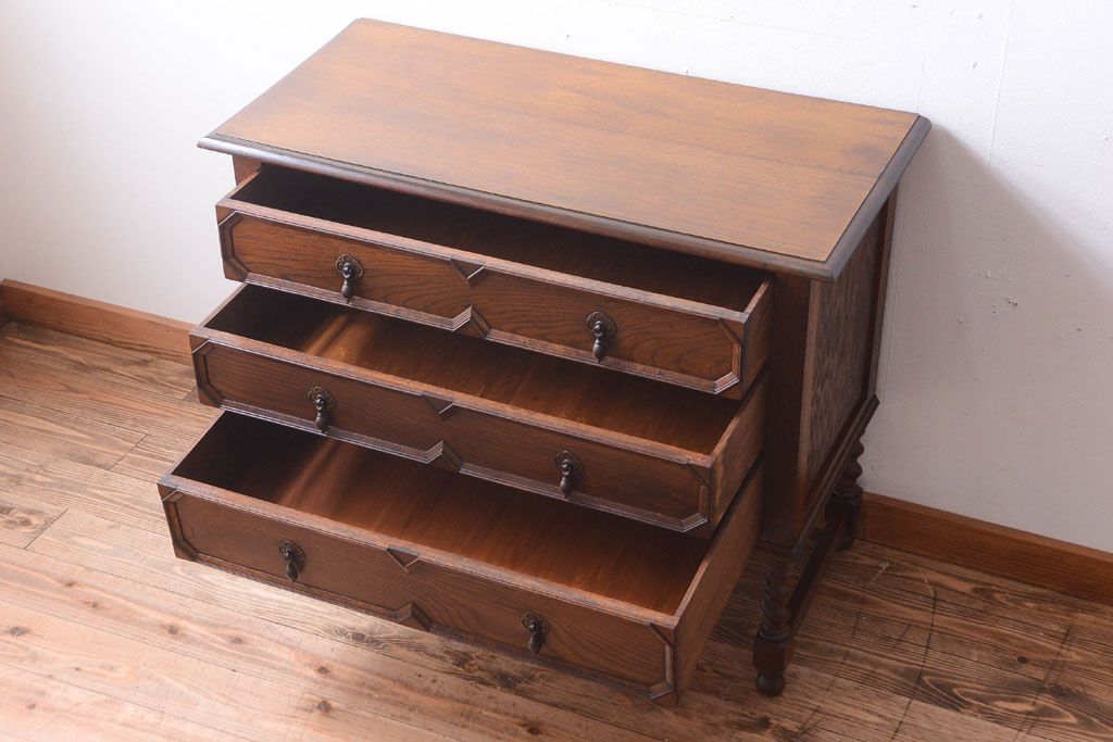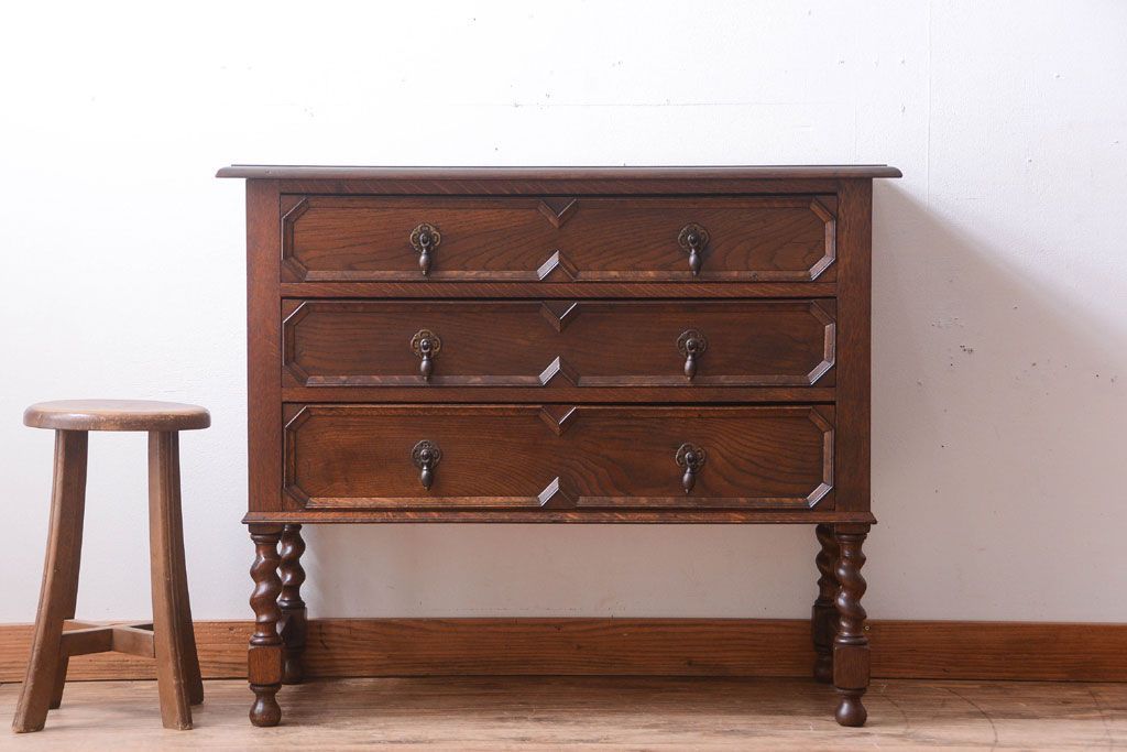 民芸家具 > アンティーク家具 オーク材 ツイストレッグの上品なイギリスアンティークチェスト