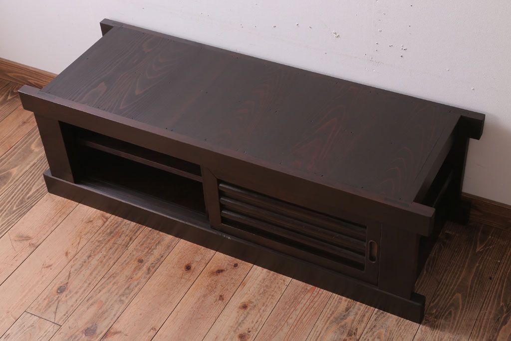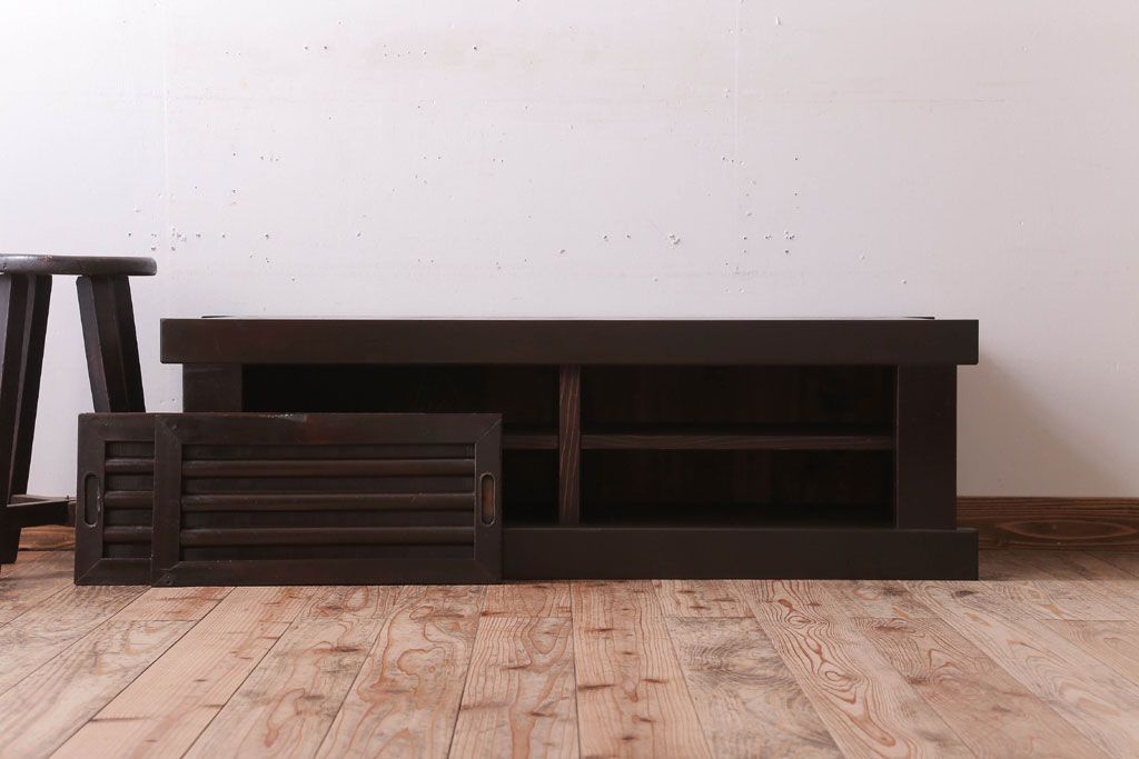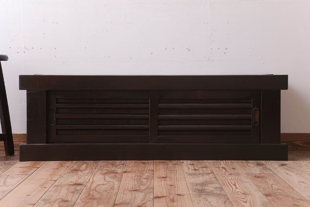 アンティーク家具 和モダンスタイル 四尺 古い木のアンティーク水屋箪笥ローボード(1)(テレビ台、キャビネット、収納棚)