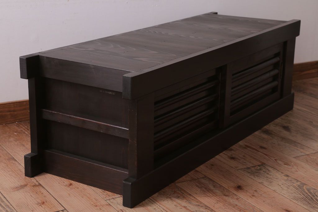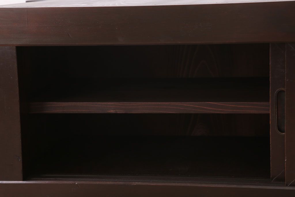 ラフジュ工房> キャビネット・戸棚> 食器棚・カップボード > アンティーク家具 和モダンスタイル 四尺 古い木のアンティーク水屋箪笥ローボード(1)(テレビ台、キャビネット、収納棚)