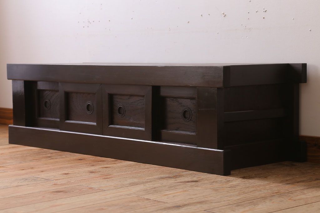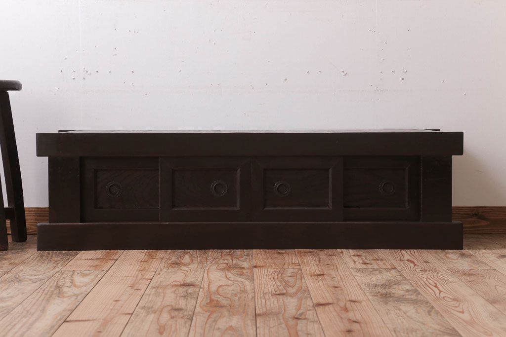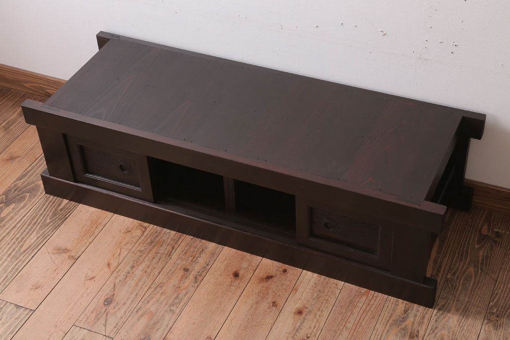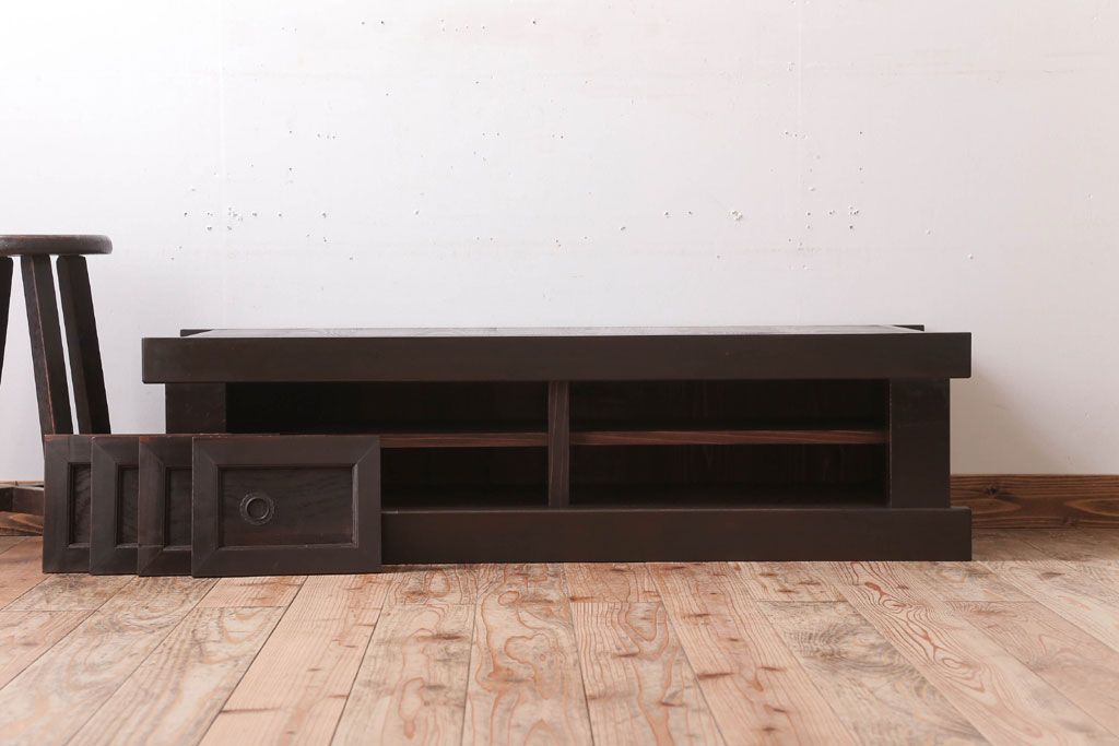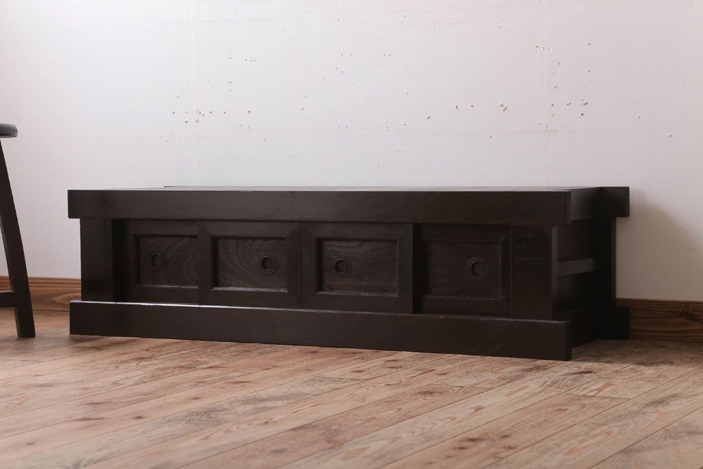アンティーク家具 四尺 和モダンスタイル 古い木のアンティーク水屋箪笥ローボード(2)(テレビ台、キャビネット、収納棚)