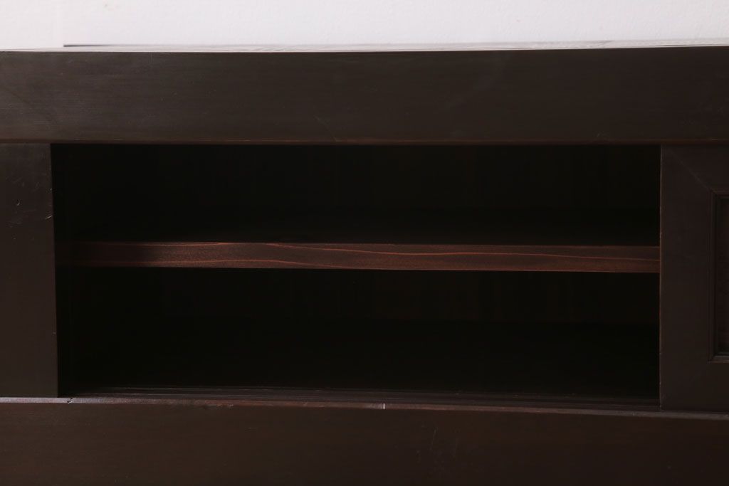 ラフジュ工房> キャビネット・戸棚> 食器棚・カップボード > アンティーク家具 四尺 和モダンスタイル 古い木のアンティーク水屋箪笥ローボード(2)(テレビ台、キャビネット、収納棚)