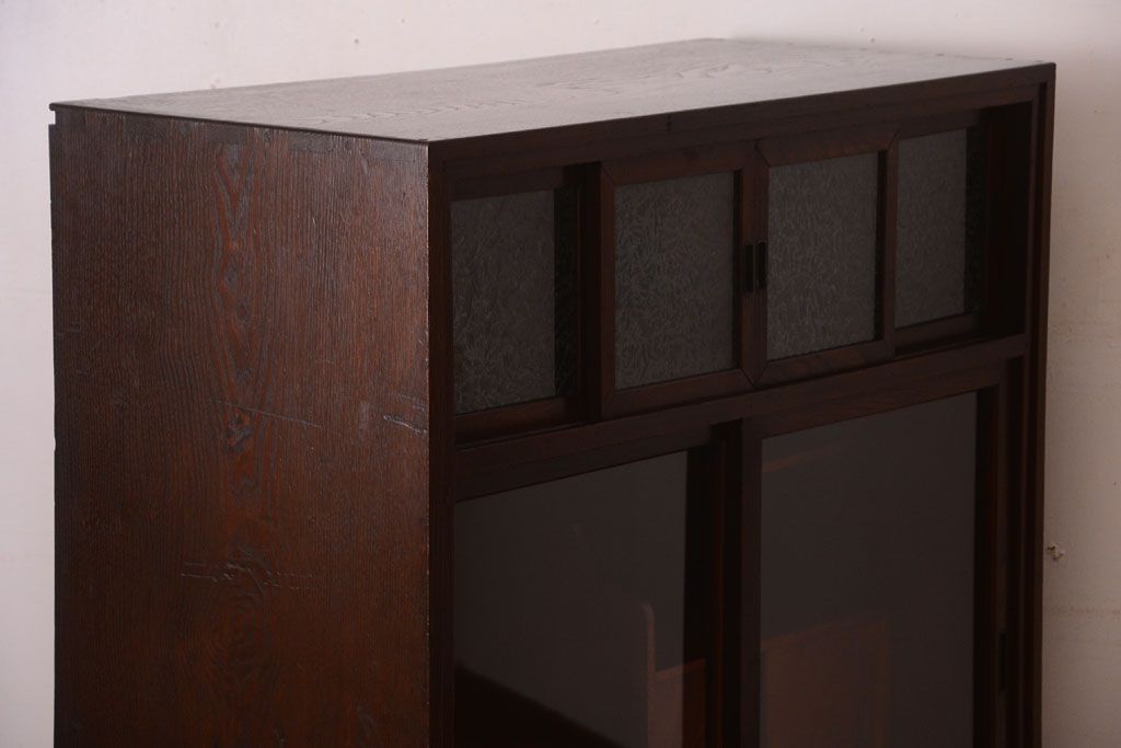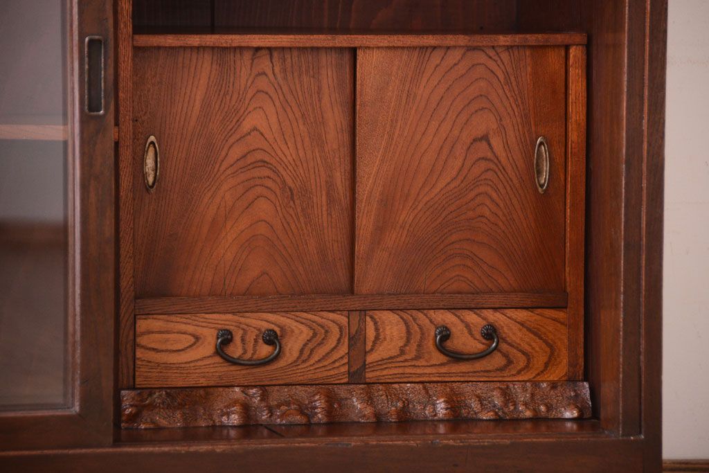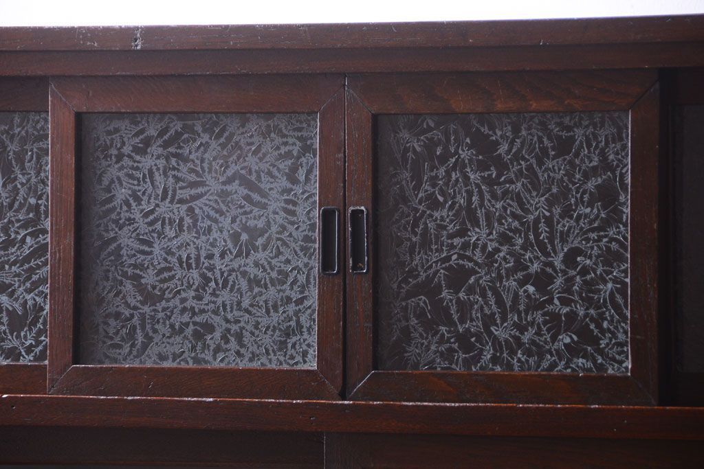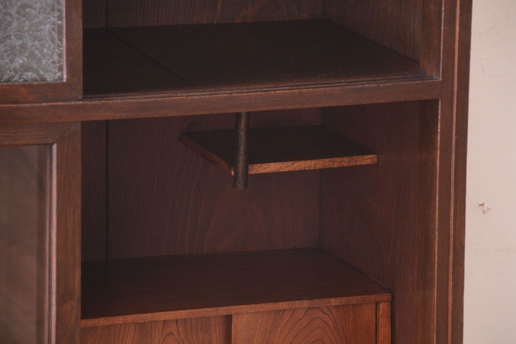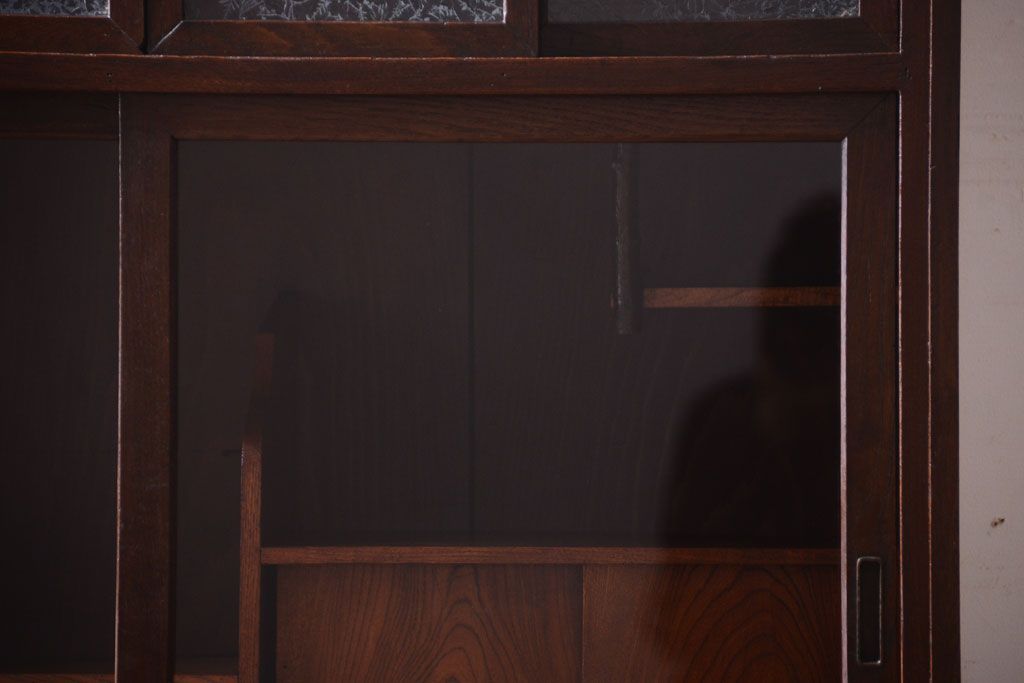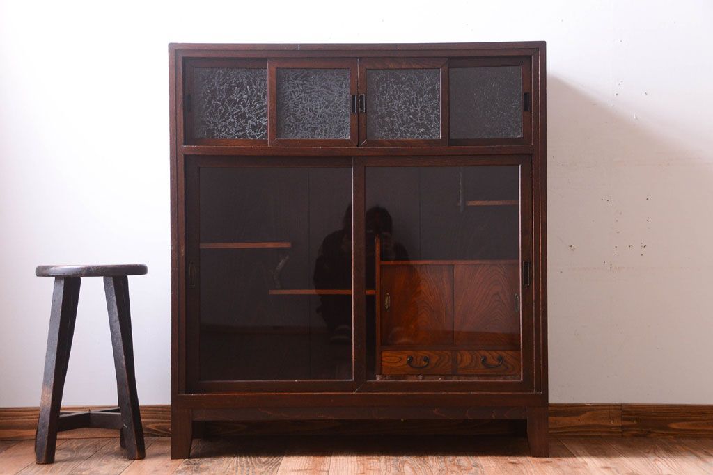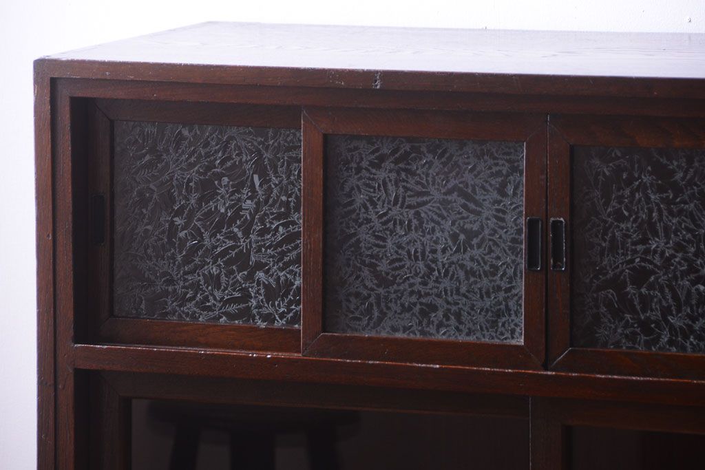 アンティーク家具 結霜ガラス入り!上品な和製アンティークの脚付き欅材茶棚