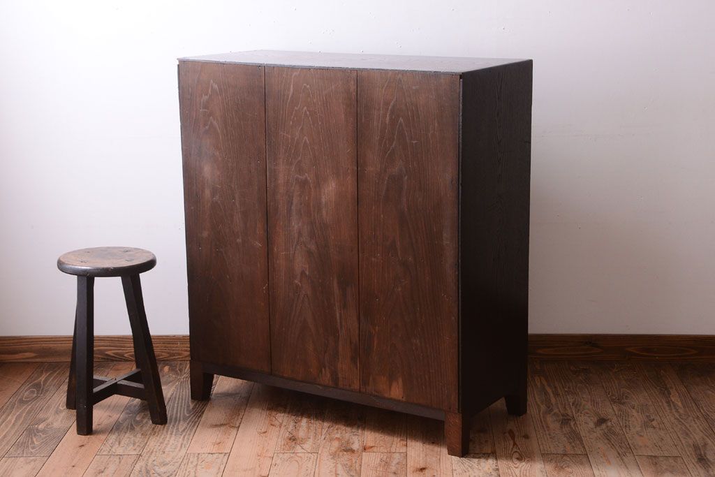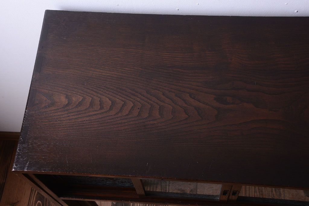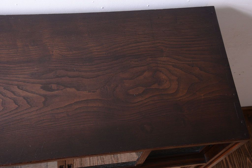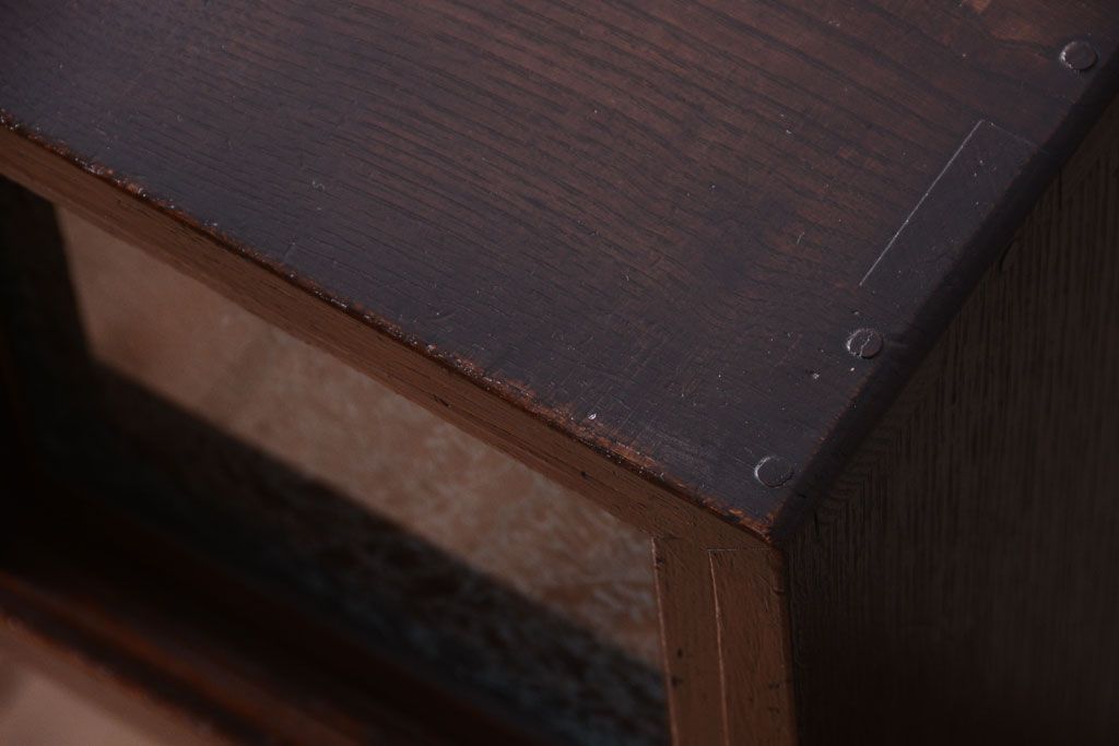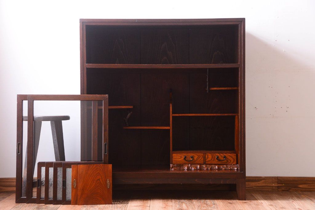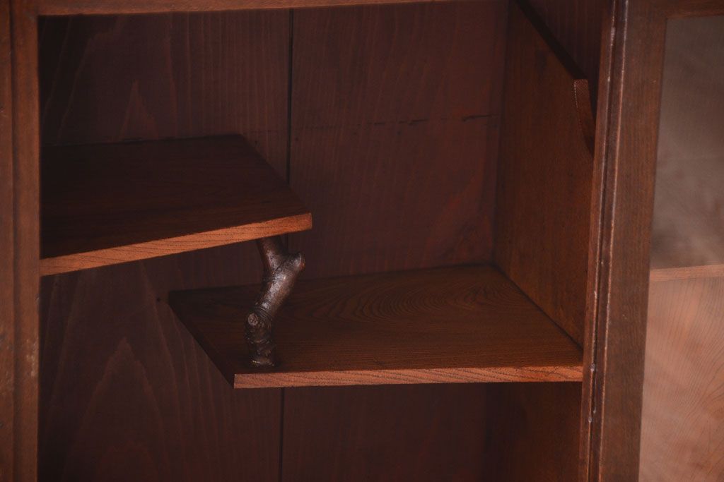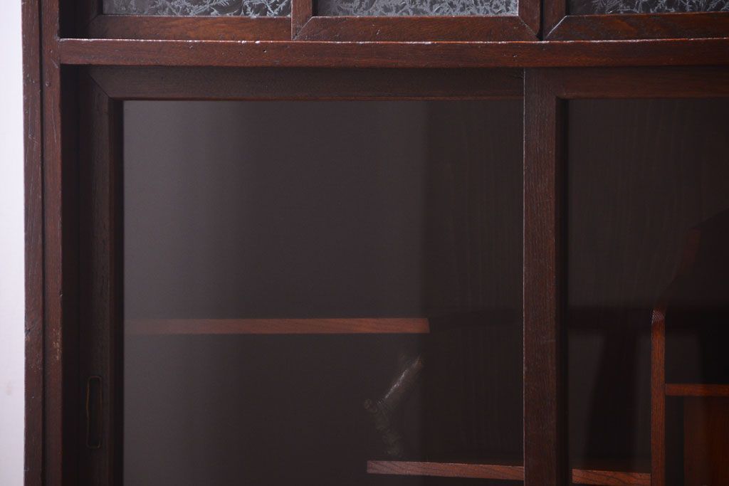 アンティーク家具 結霜ガラス入り!上品な和製アンティークの脚付き欅材茶棚