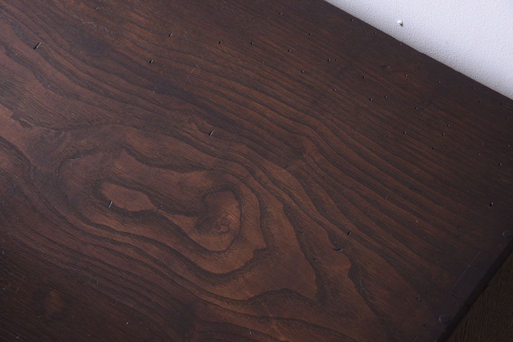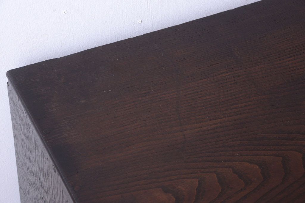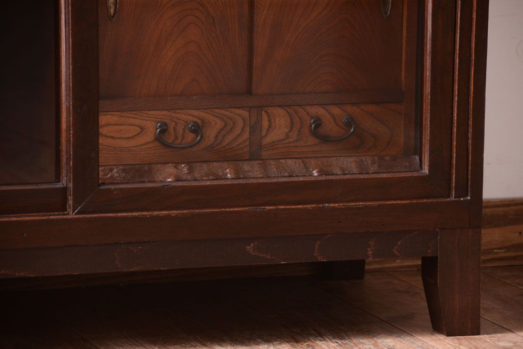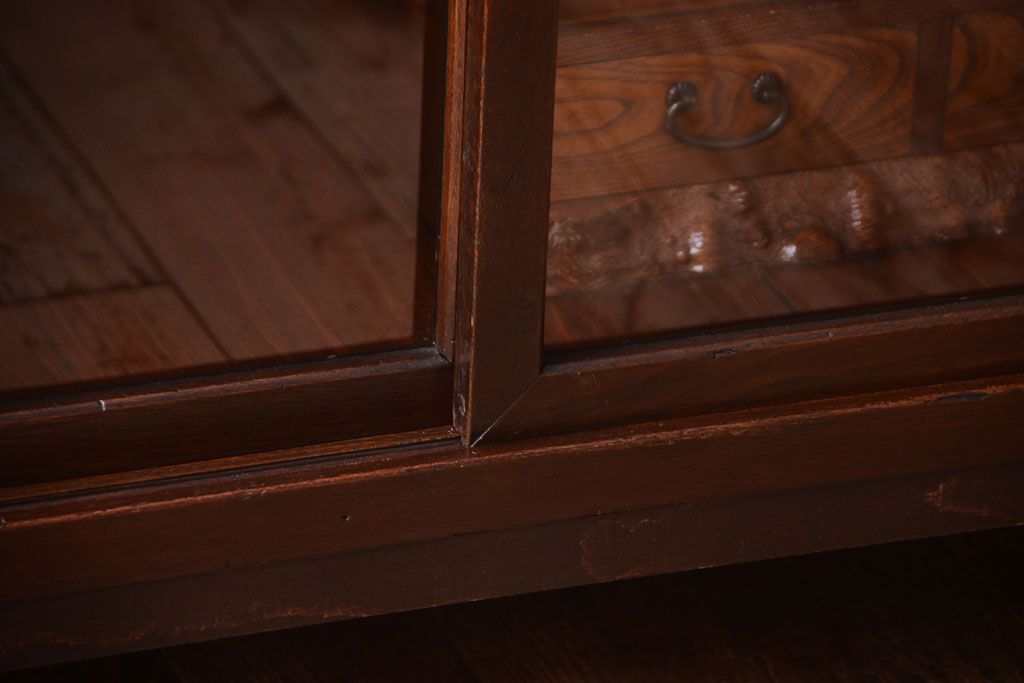 結霜ガラス入り!上品な和製アンティークの脚付き欅材茶棚です。
