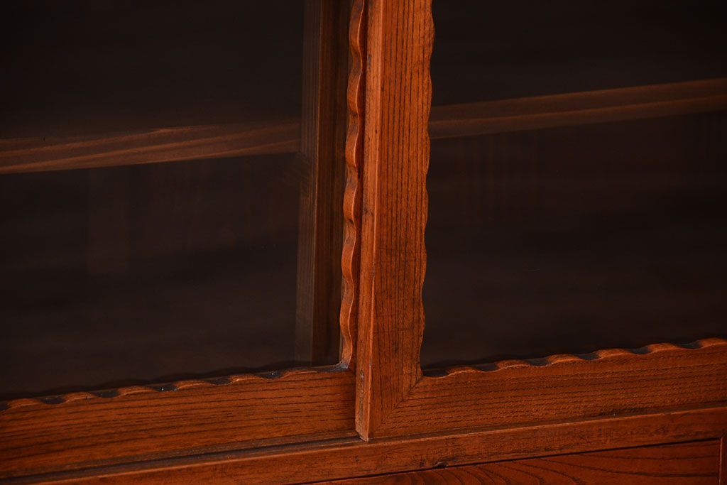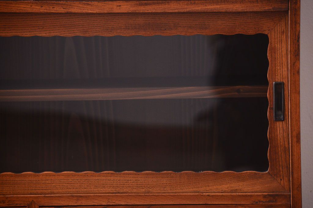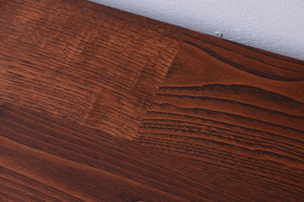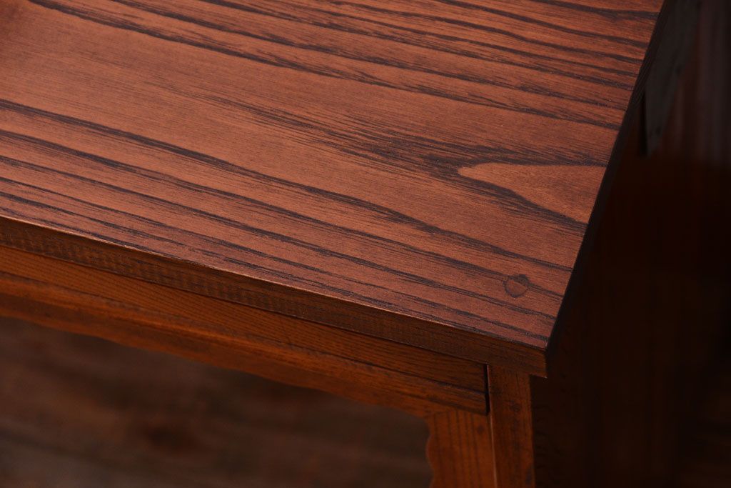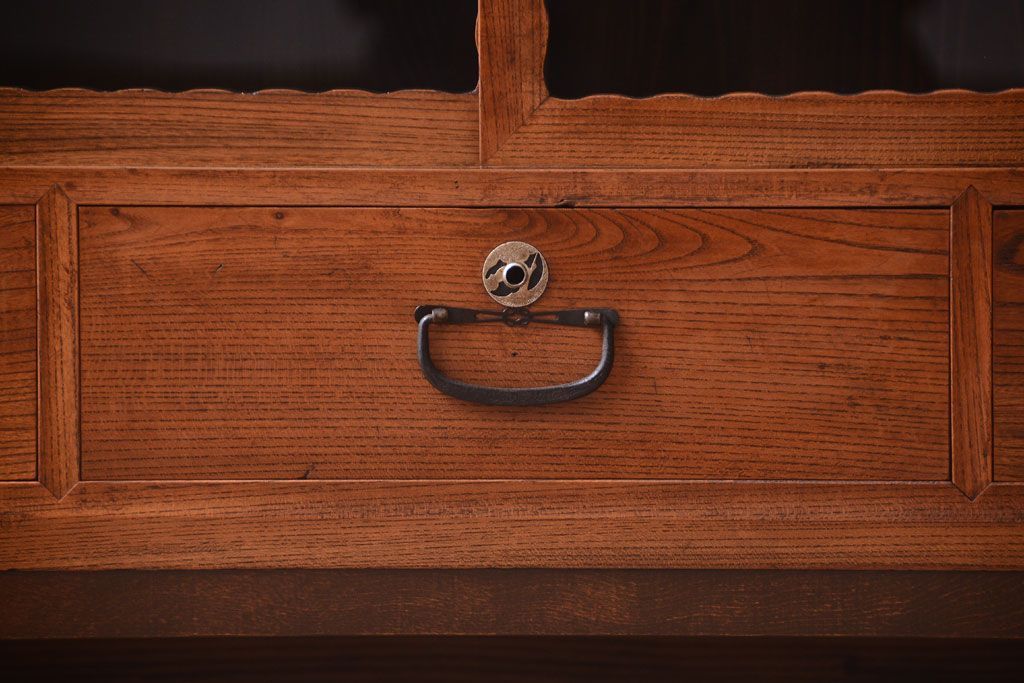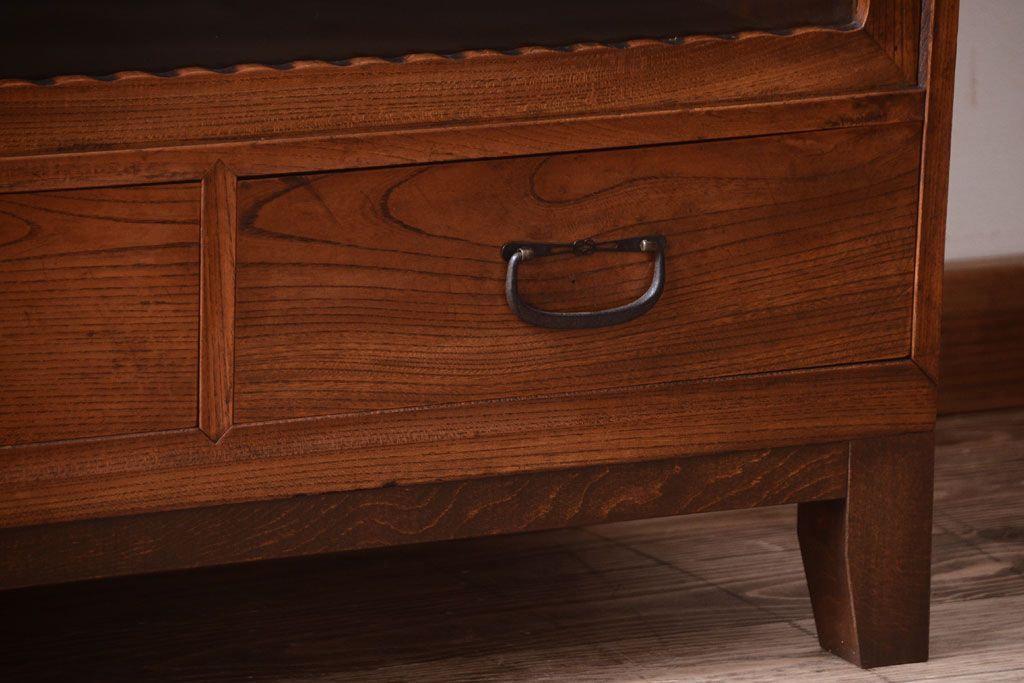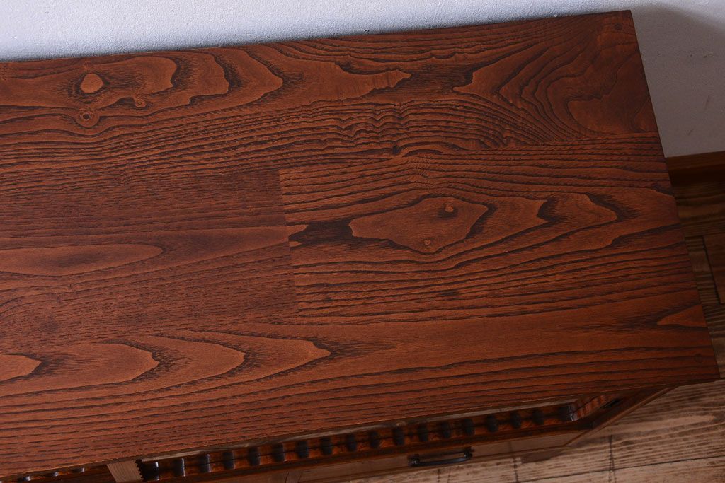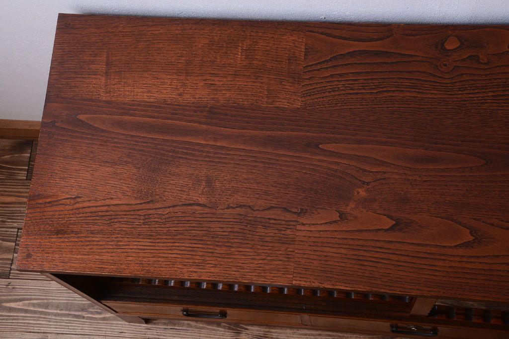 アンティーク家具 天板栗材リメイク 前面欅材のアンティーク脚付きローボード(テレビボード)