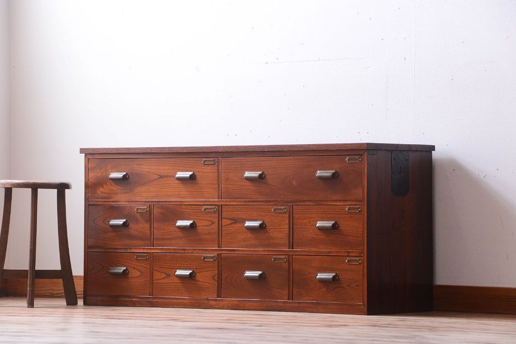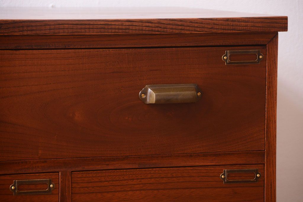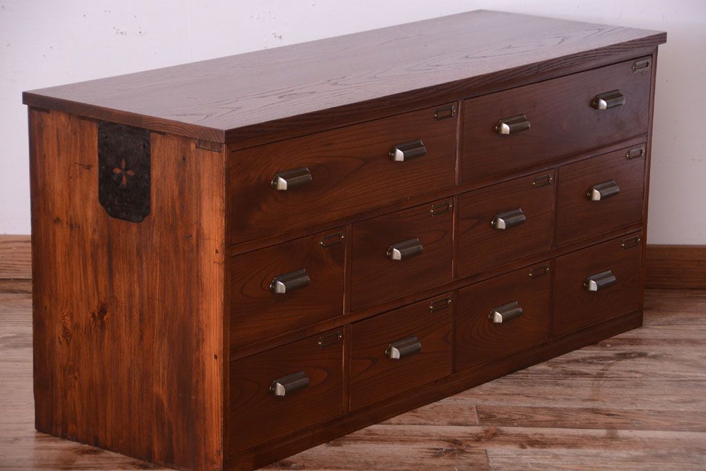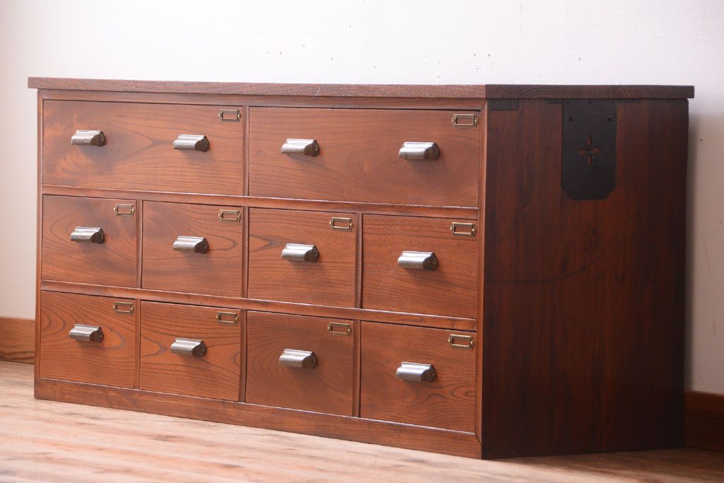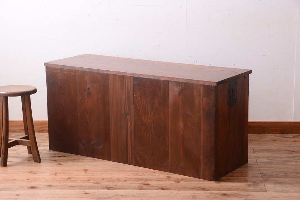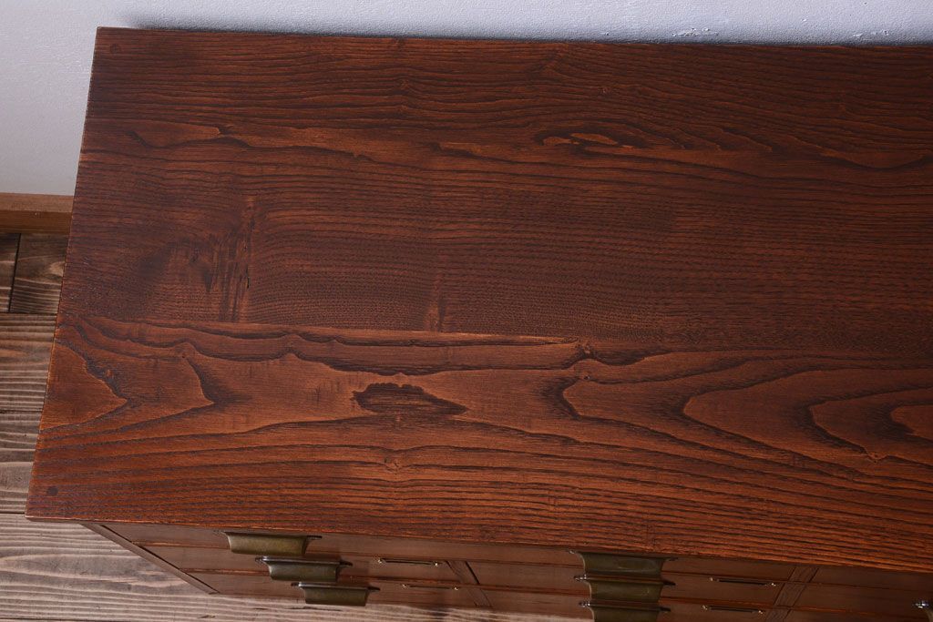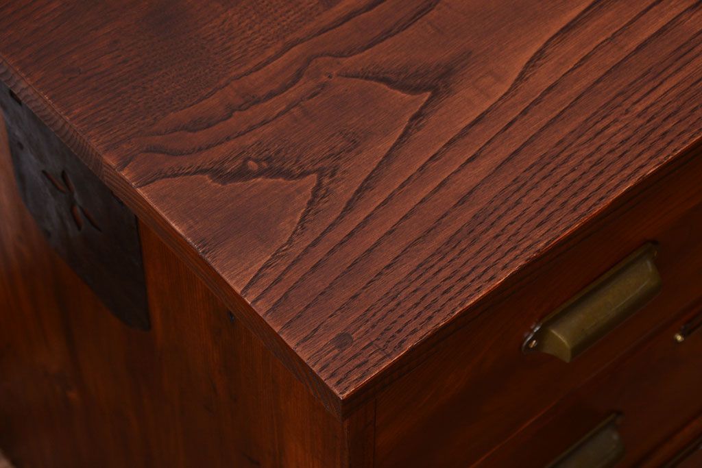 アンティーク家具 栗材天板のリメイク品 前面欅材の和製アンティークローボード(1)(ローチェスト)