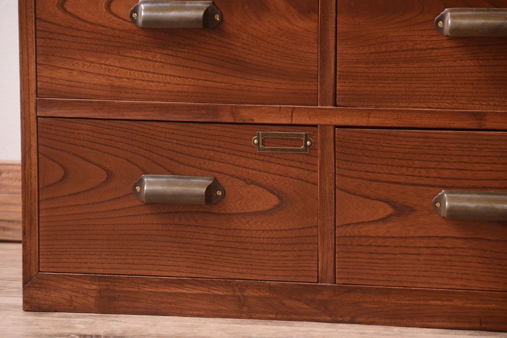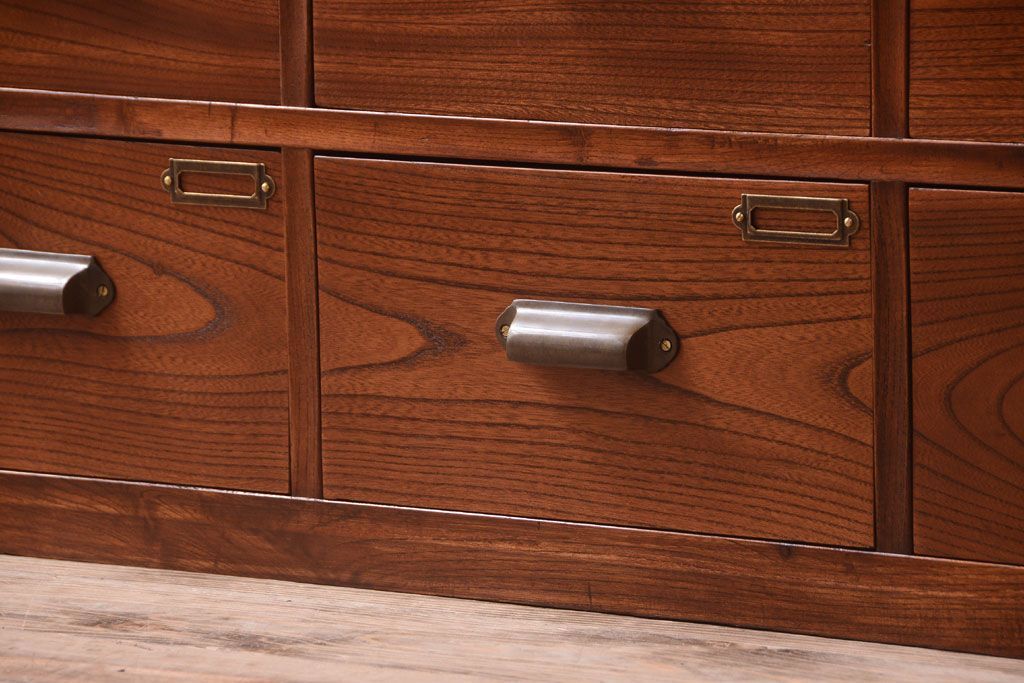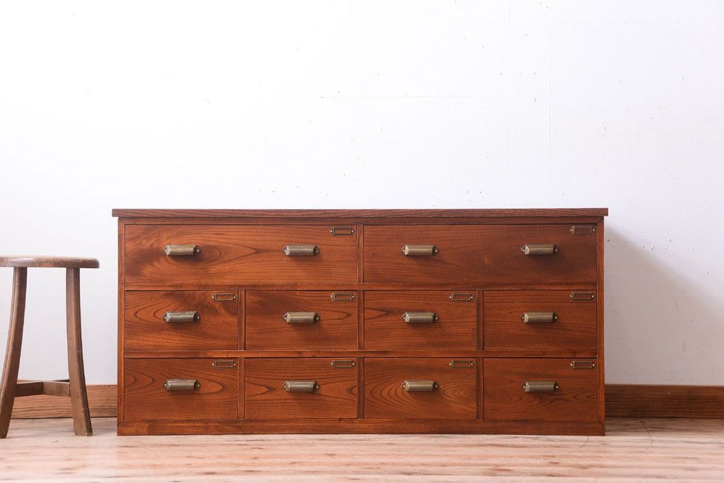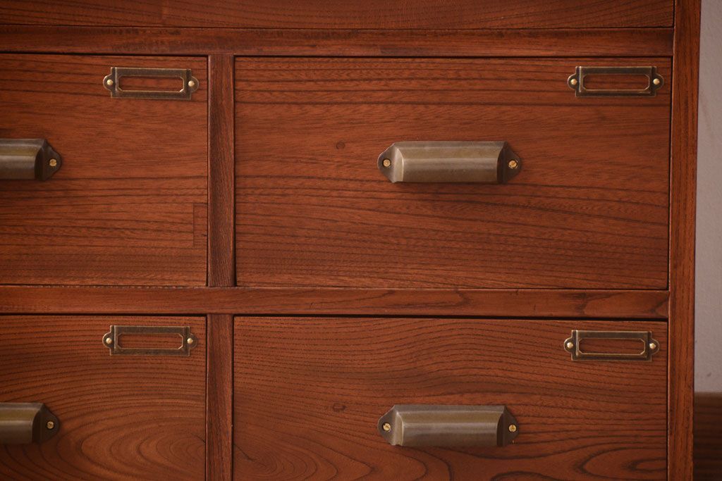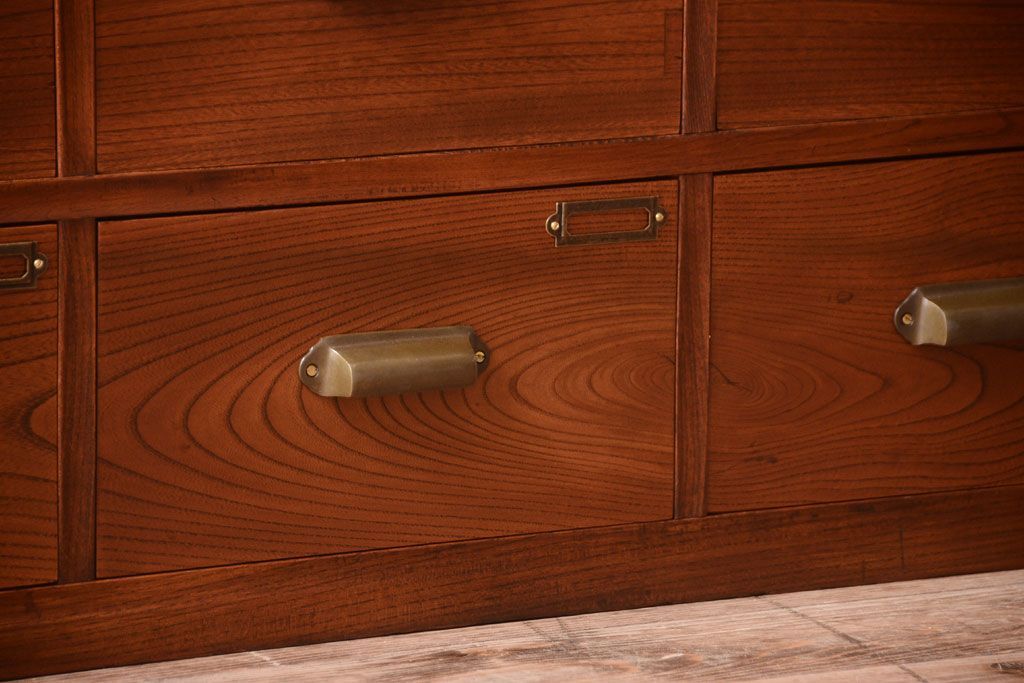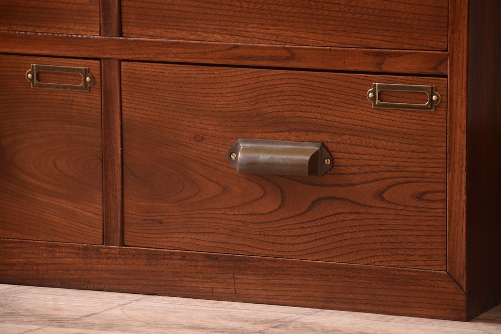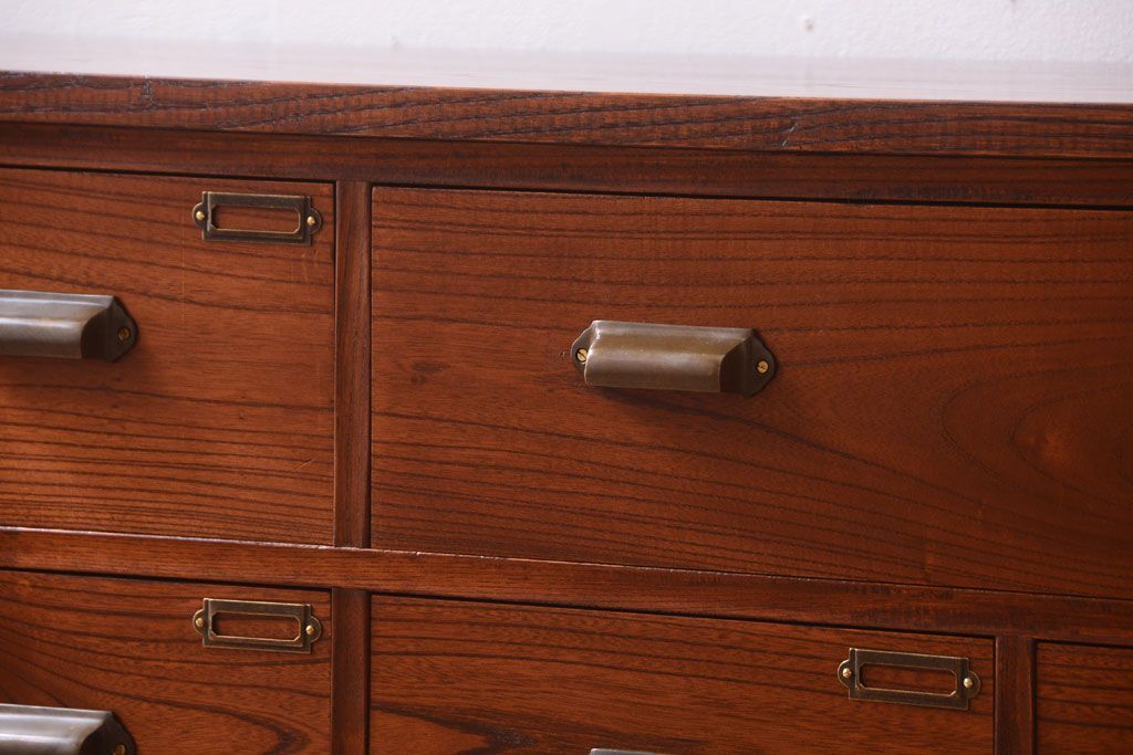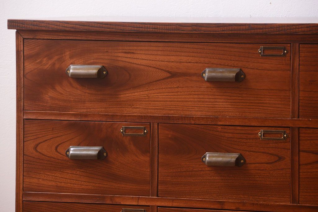 アンティーク家具 栗材天板のリメイク品 前面欅材の和製アンティークローボード(1)(ローチェスト)