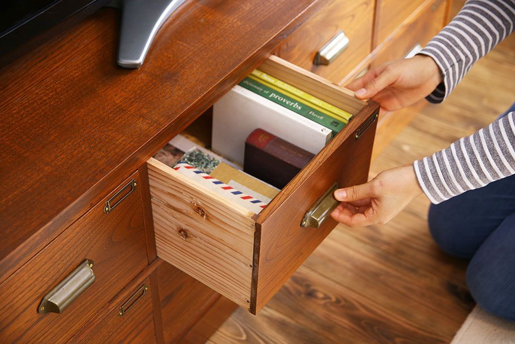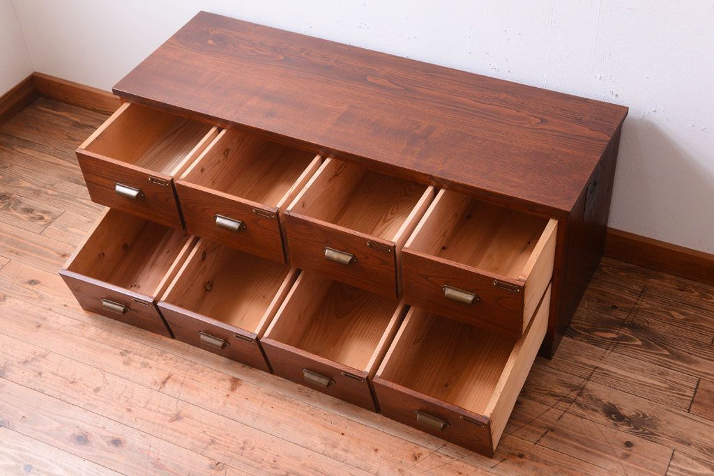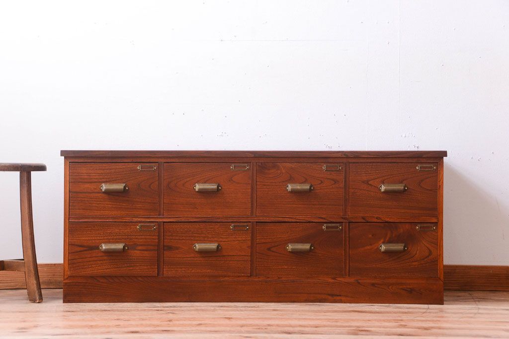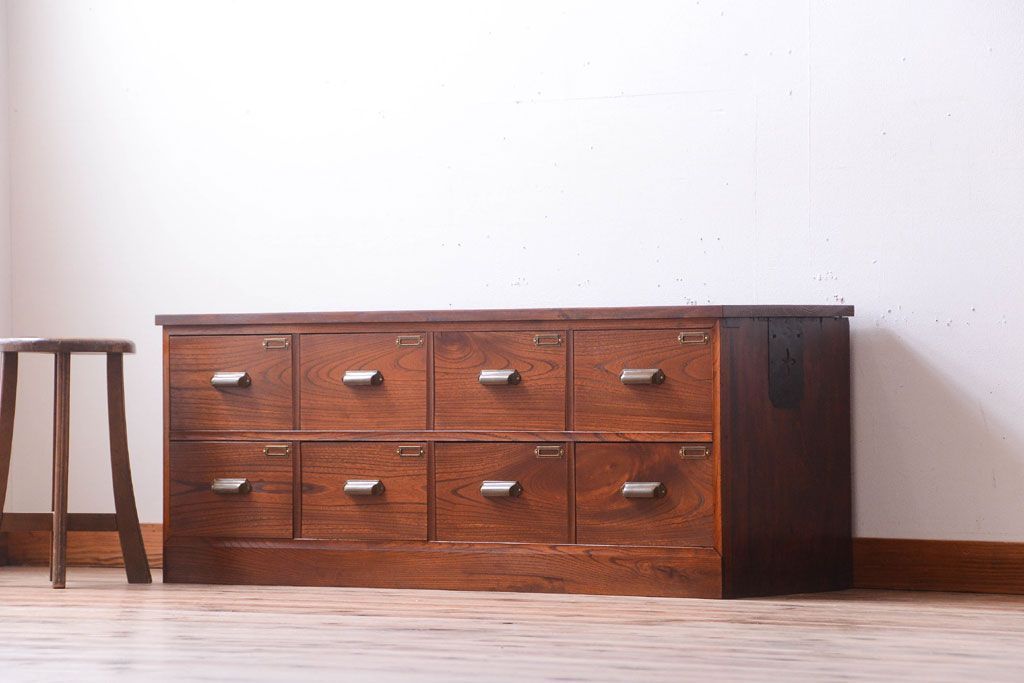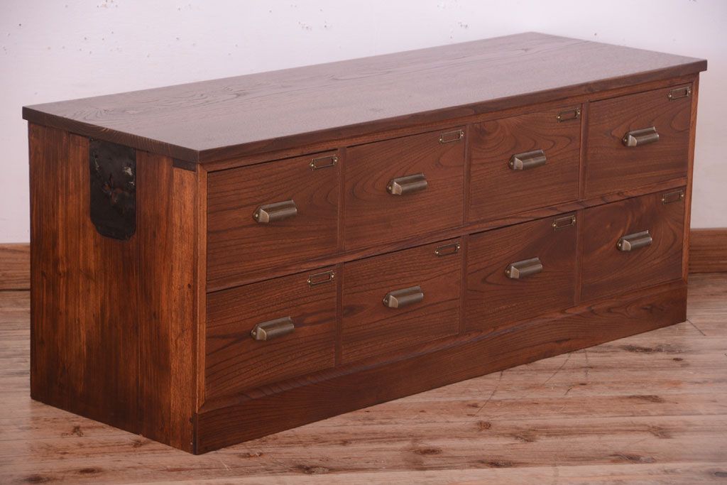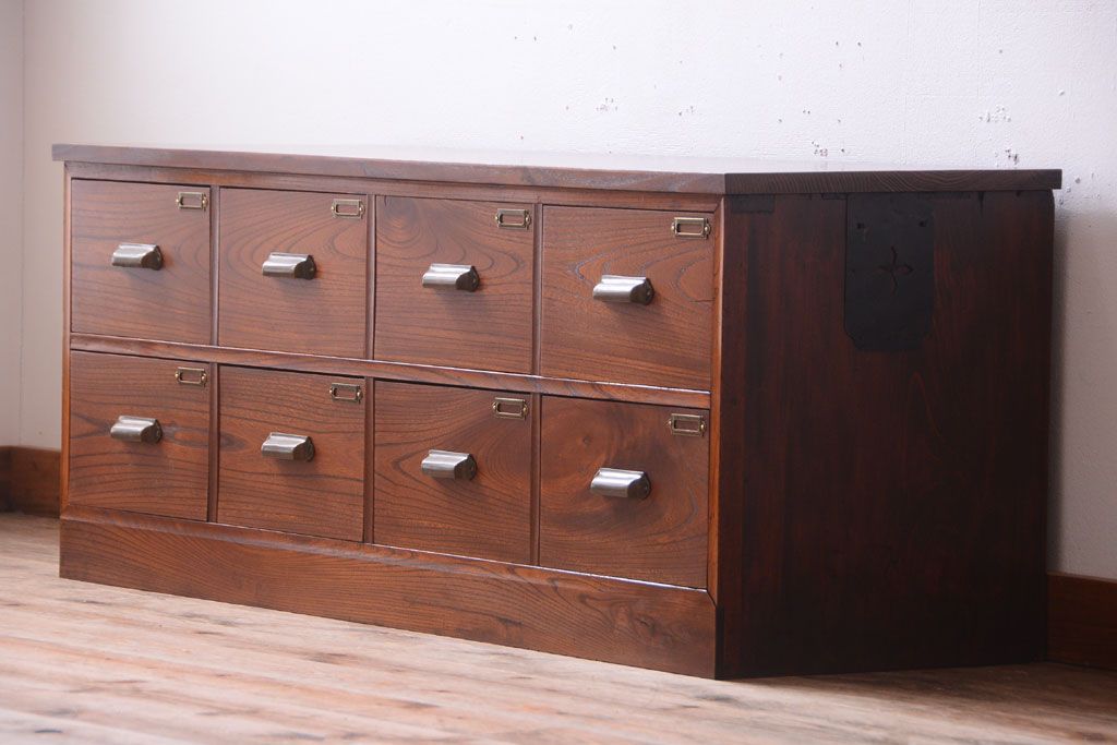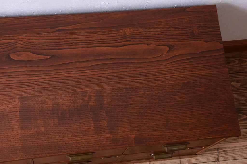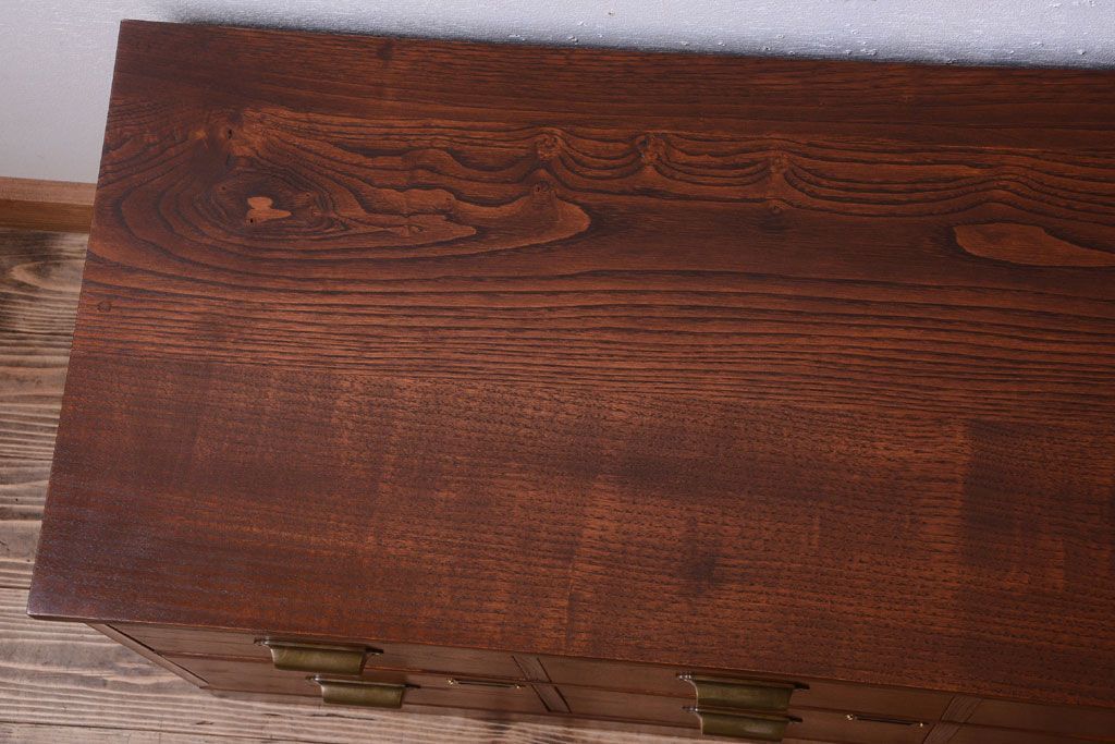 ラフジュ工房> チェスト・引き出し> ローチェスト > アンティーク家具 栗材天板のリメイク品 前面欅材の和製アンティークローボード(2)(ローチェスト)