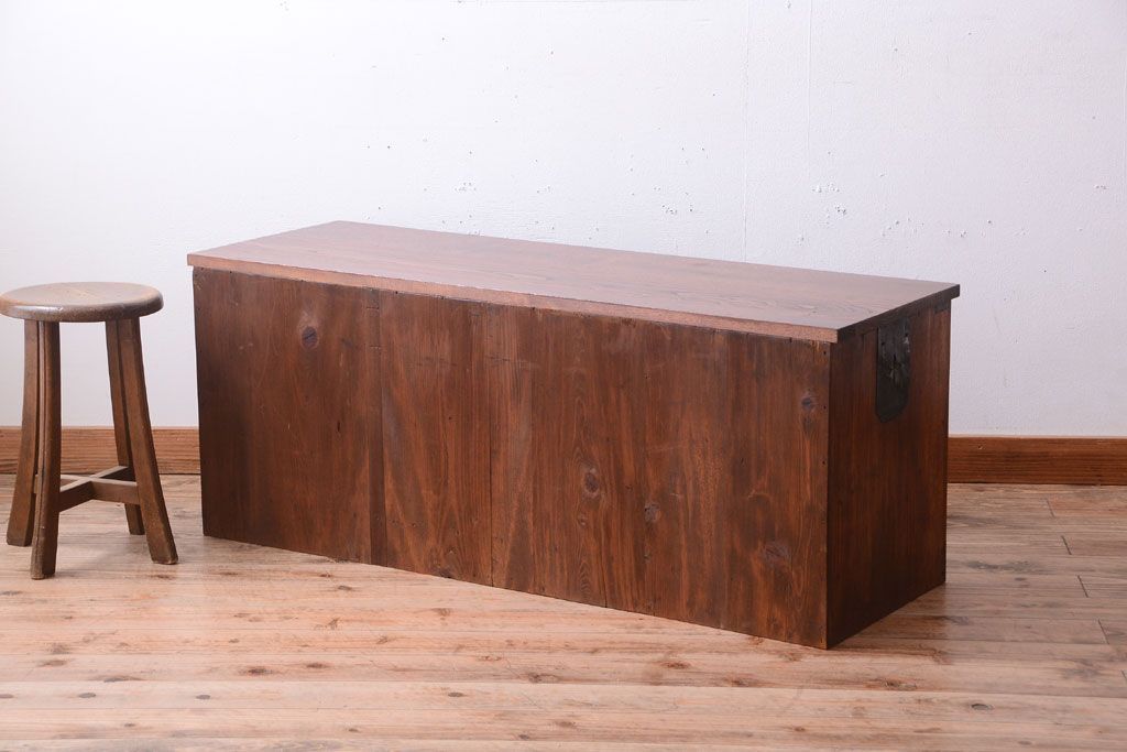 アンティーク家具 栗材天板のリメイク品 前面欅材の和製アンティークローボード(2)(ローチェスト)