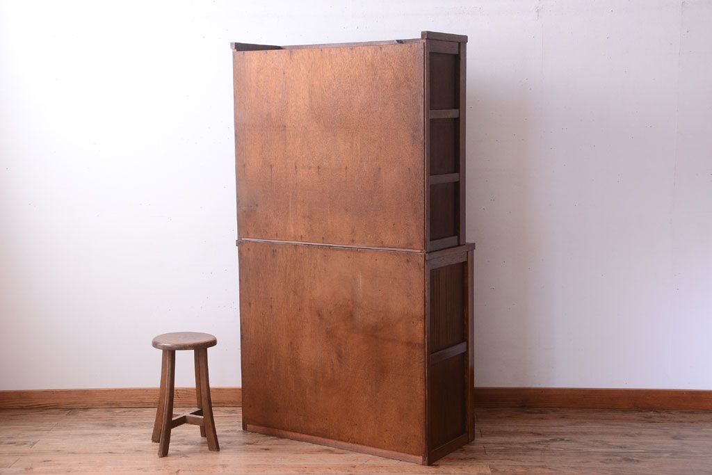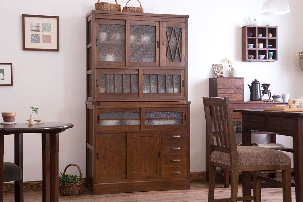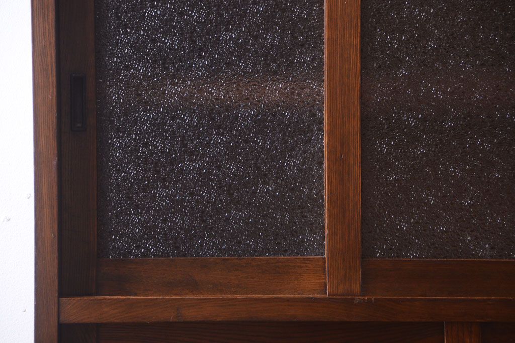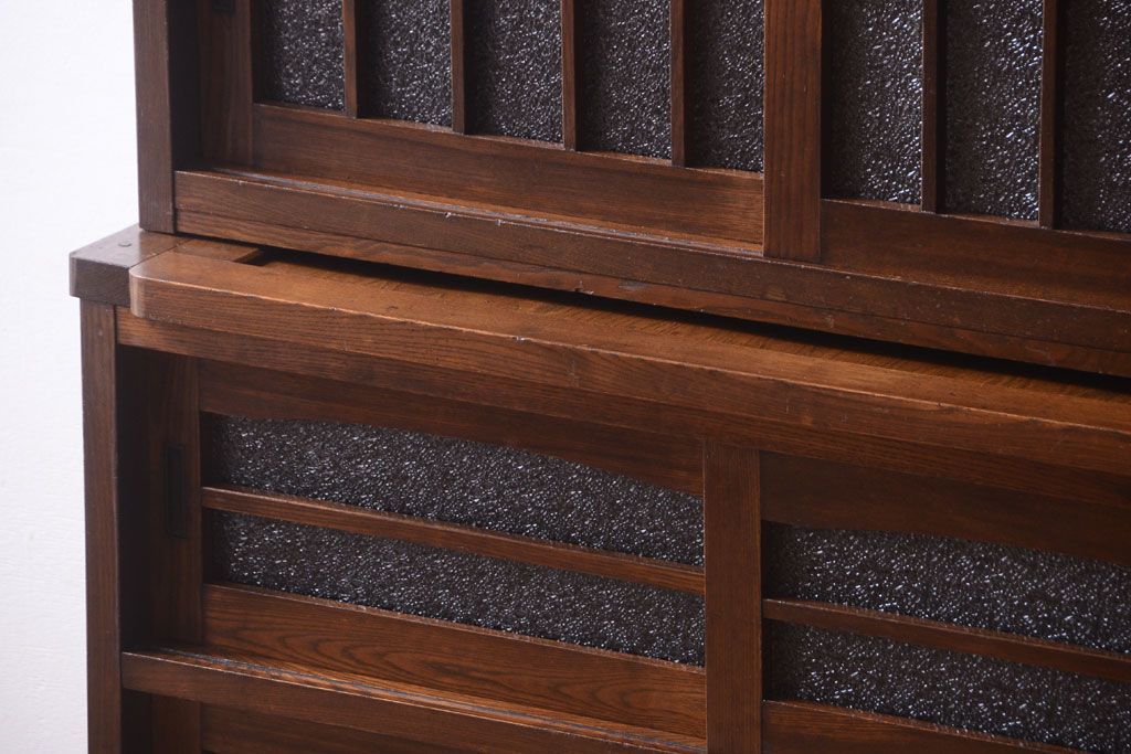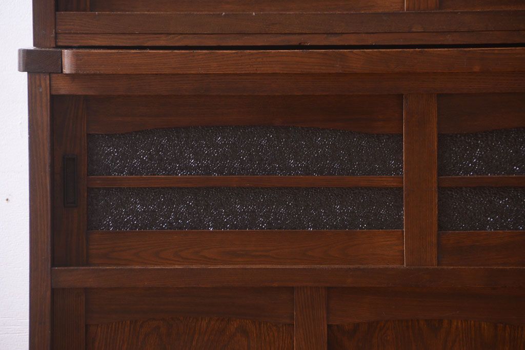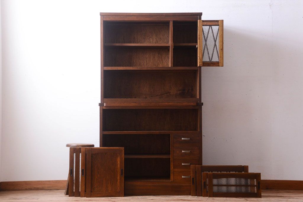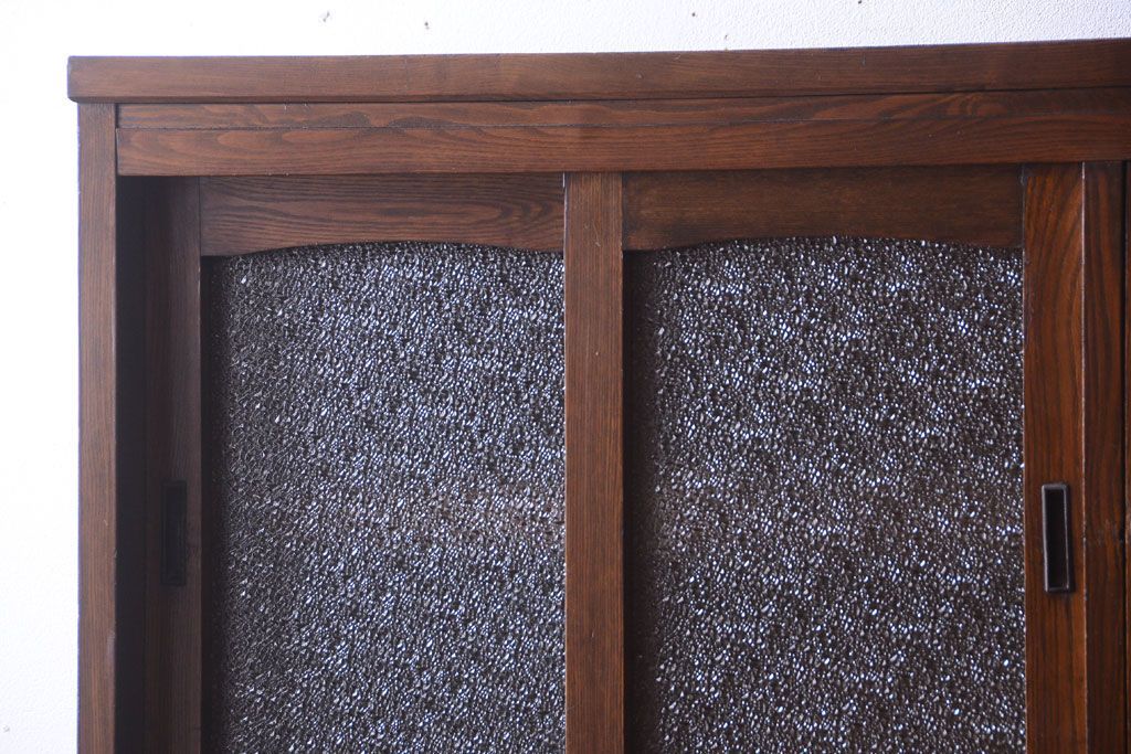 アンティーク家具 ダイヤガラス入り!作業台付き 古い木の和製アンティーク食器棚