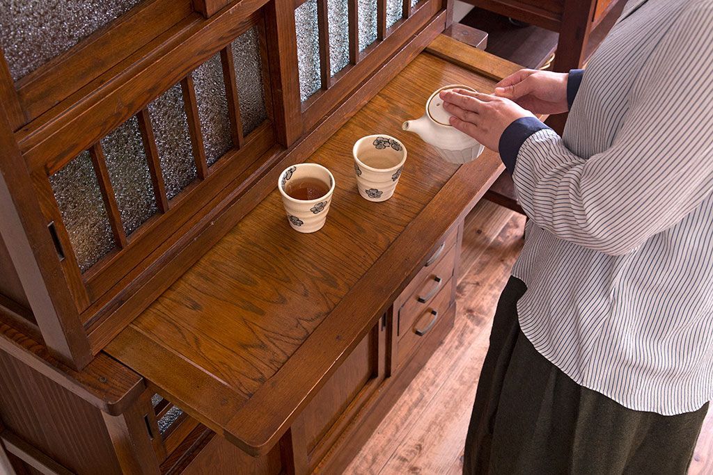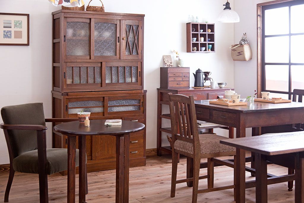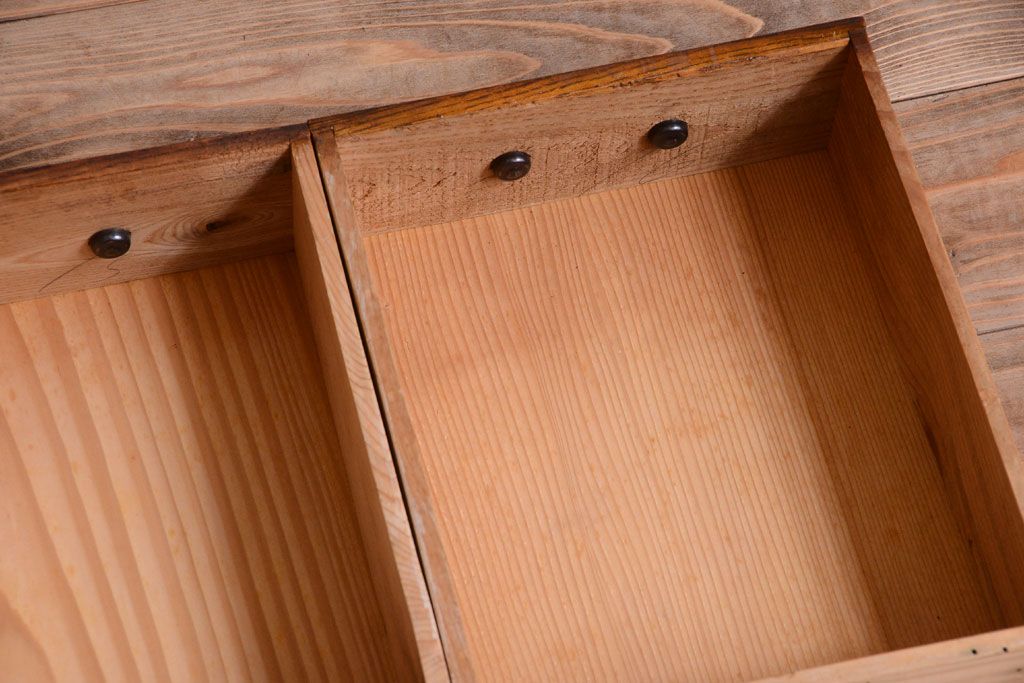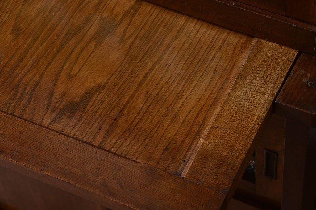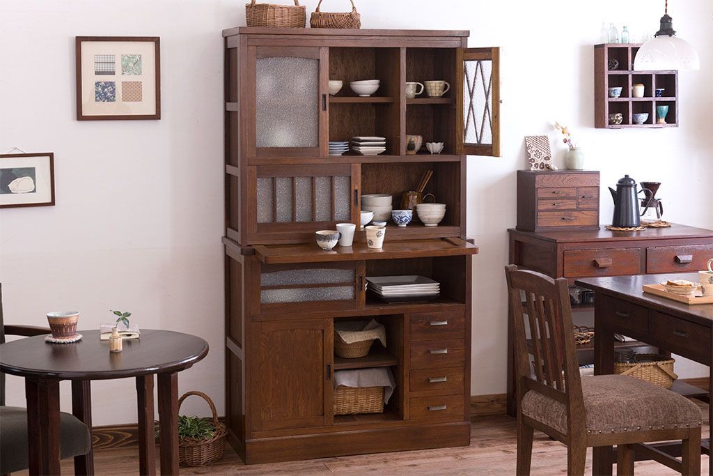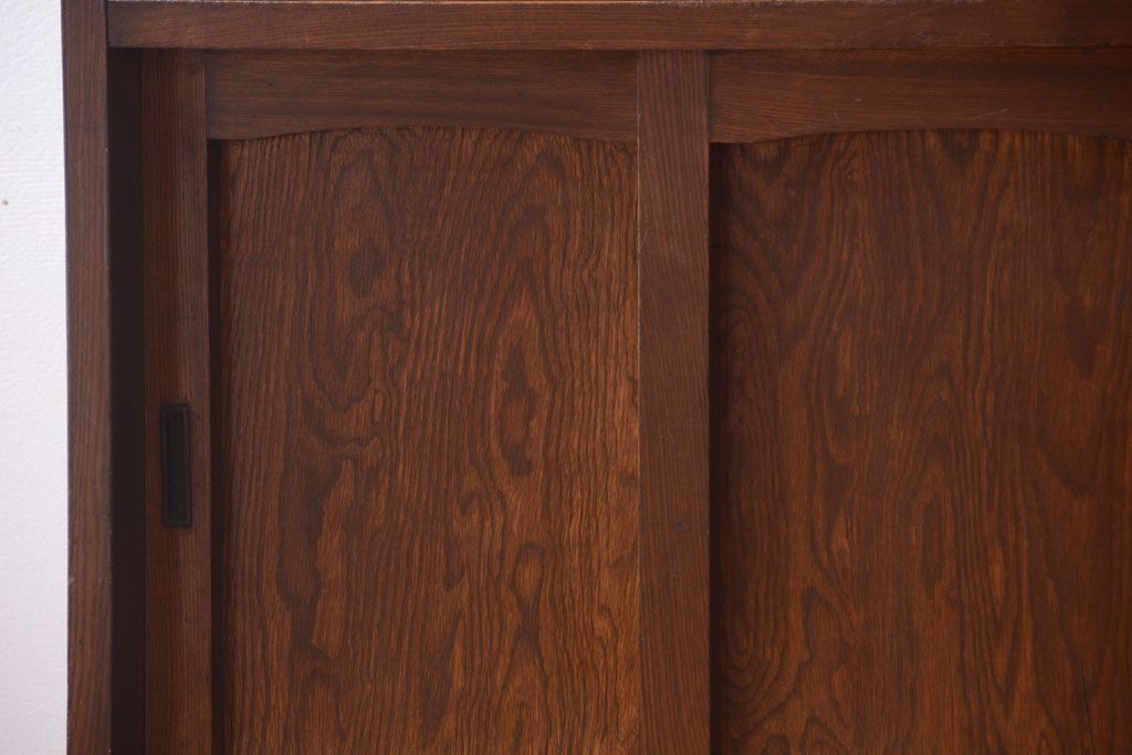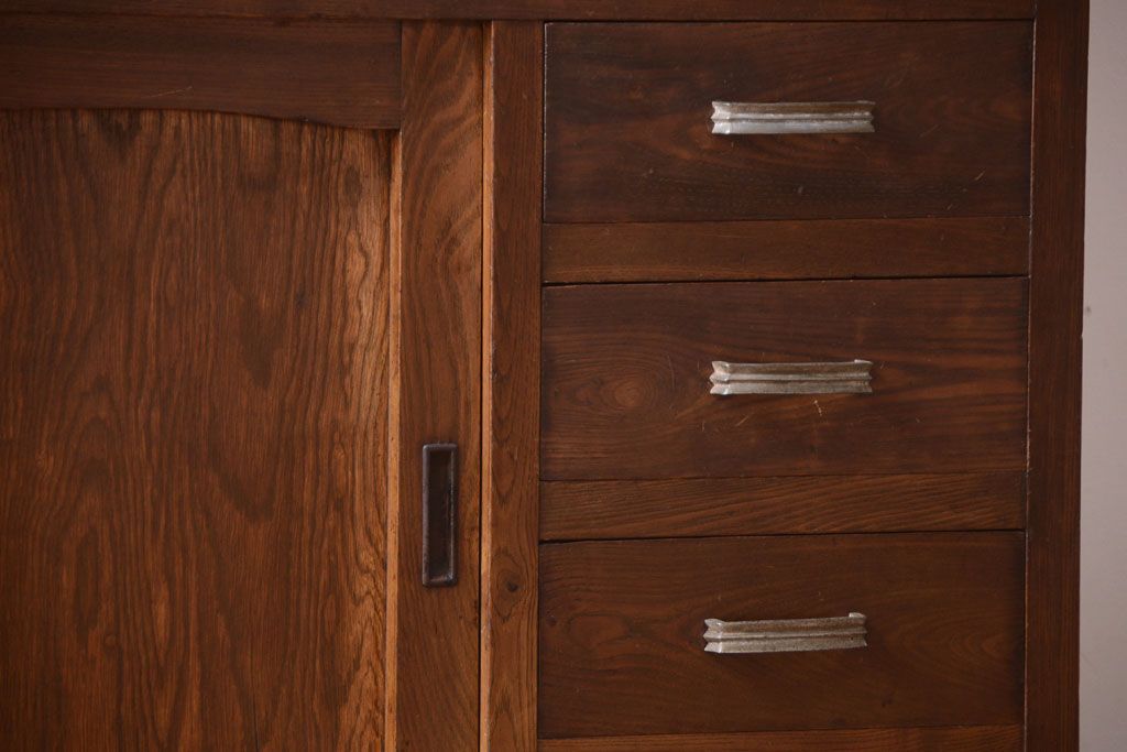 アンティーク家具 ダイヤガラス入り!作業台付き 古い木の和製アンティーク食器棚