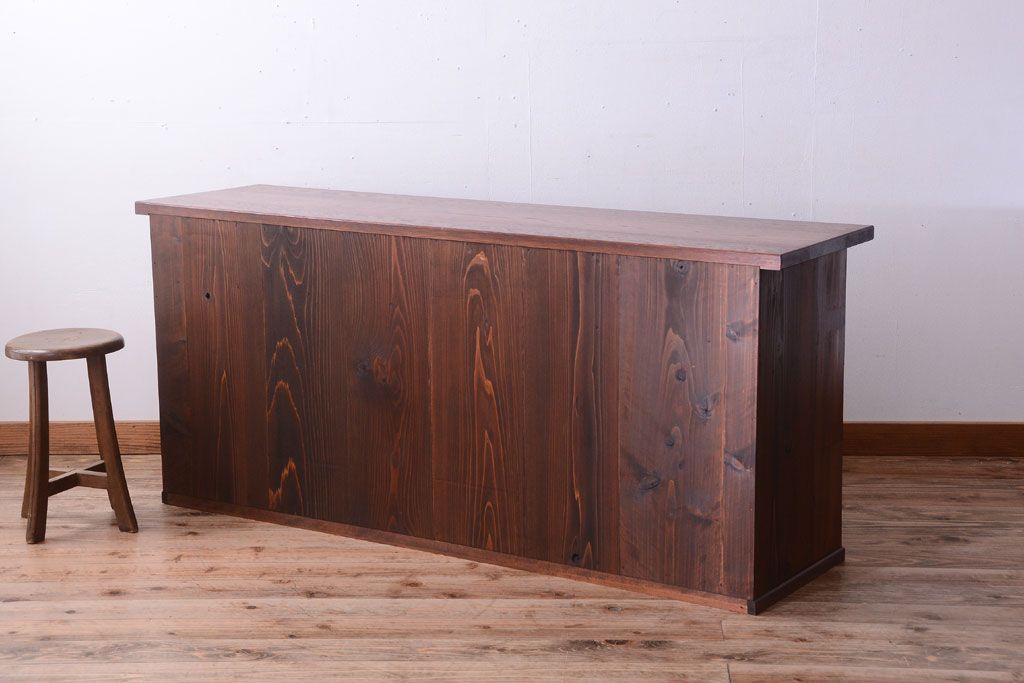 アンティーク家具 ナラ材天板のリメイク品!和製アンティークのモールガラス入り収納棚(戸棚・カウンターテーブル)