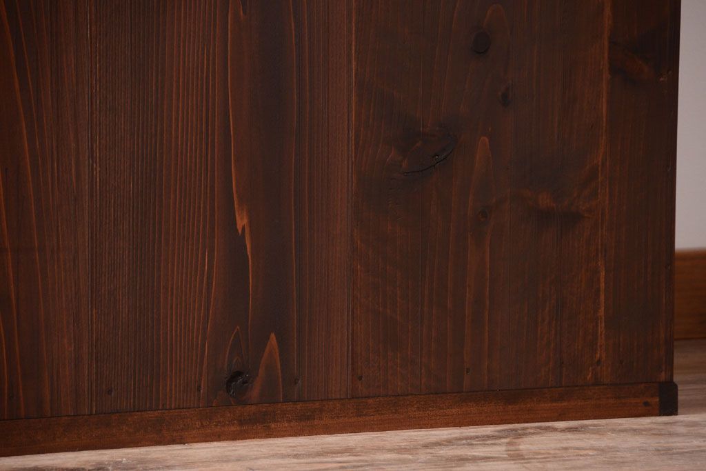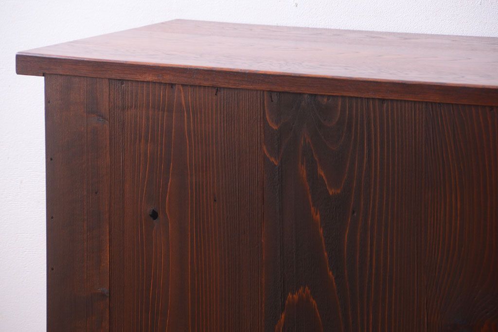 キャビネット・戸棚 > アンティーク家具 ナラ材天板のリメイク品!和製アンティークのモールガラス入り収納棚(戸棚・カウンターテーブル)