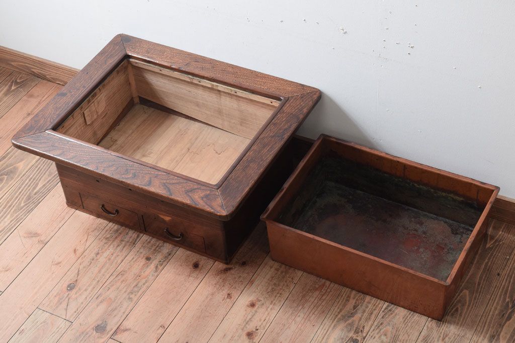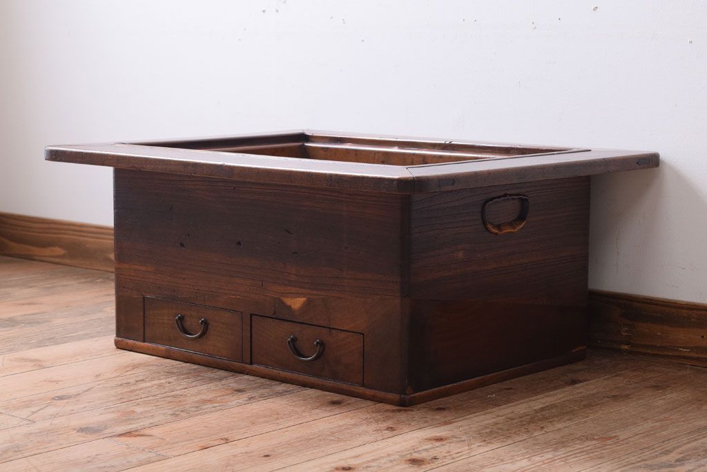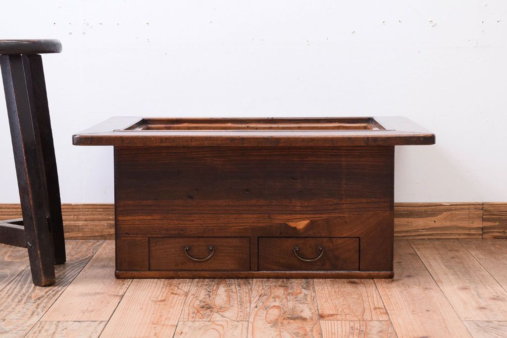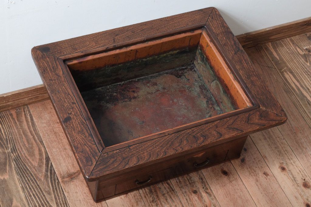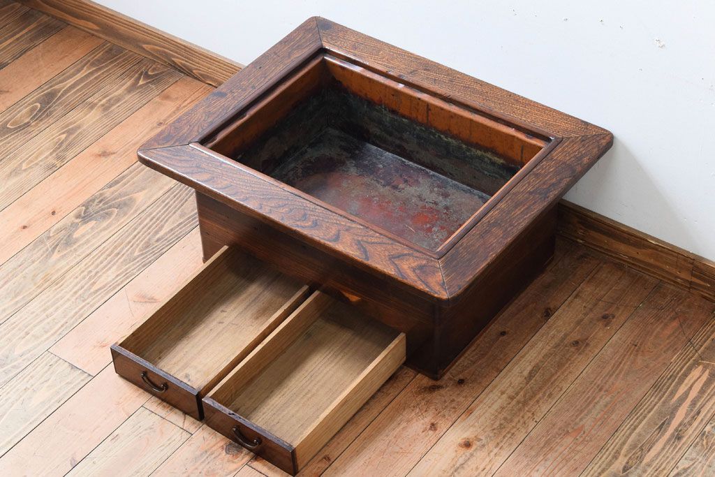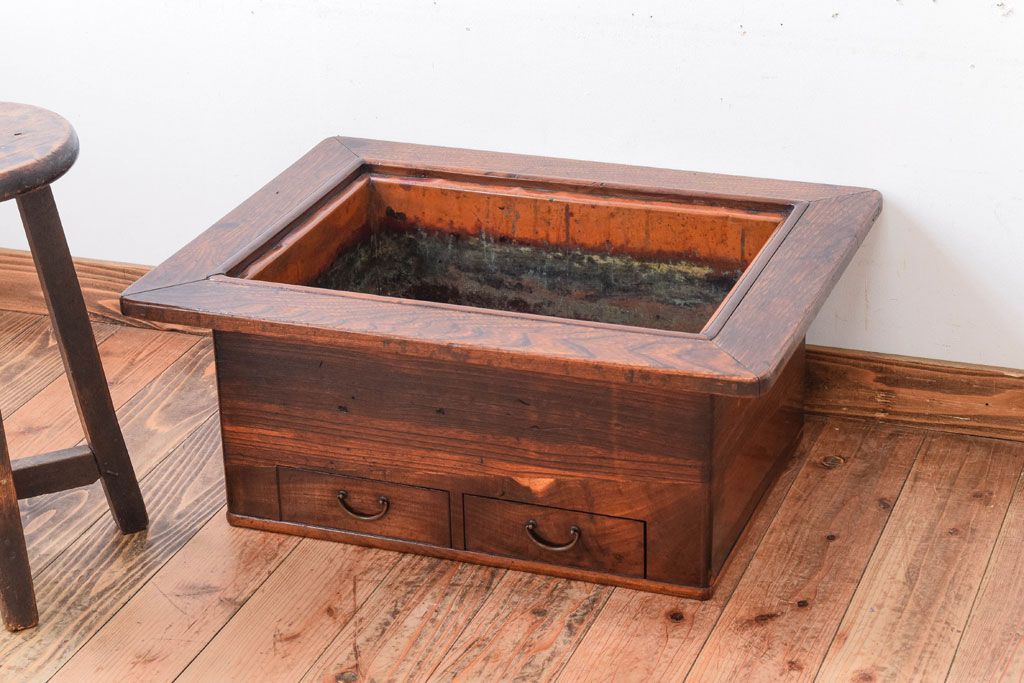 アンティーク雑貨 引き出し付き 古い木の和製アンティーク火鉢