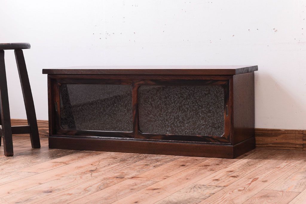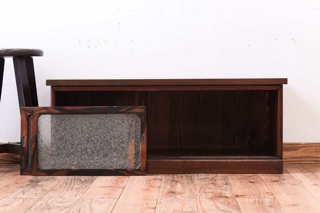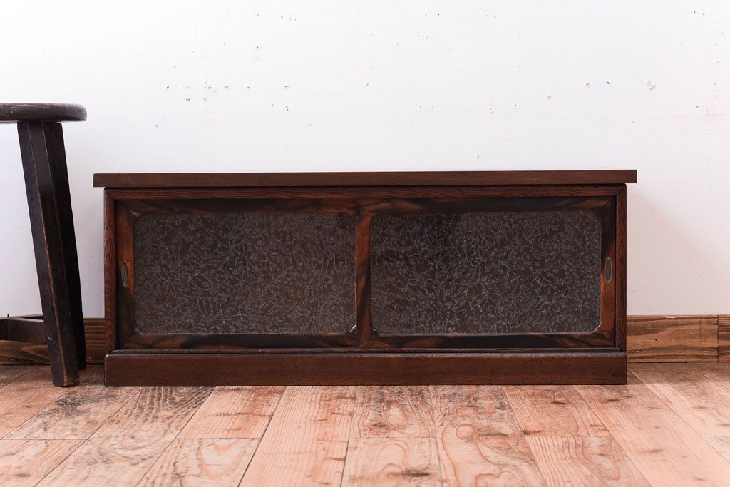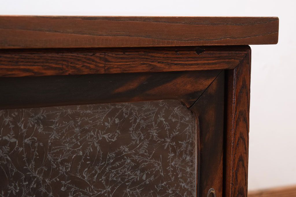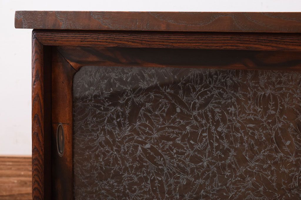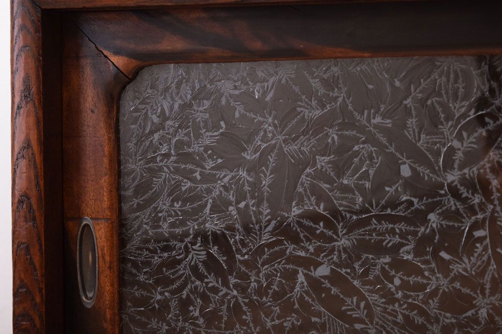 アンティーク家具 結霜ガラス 黒柿材と栗材!和製アンティークのローボード(戸棚)