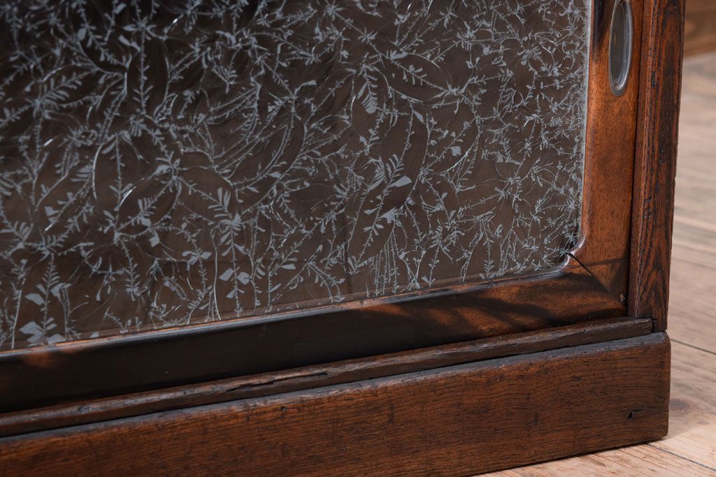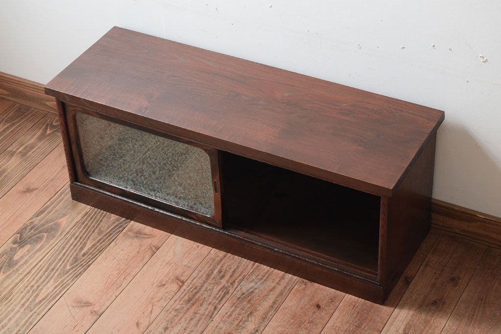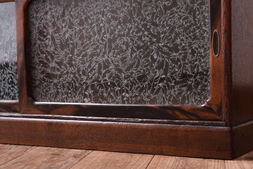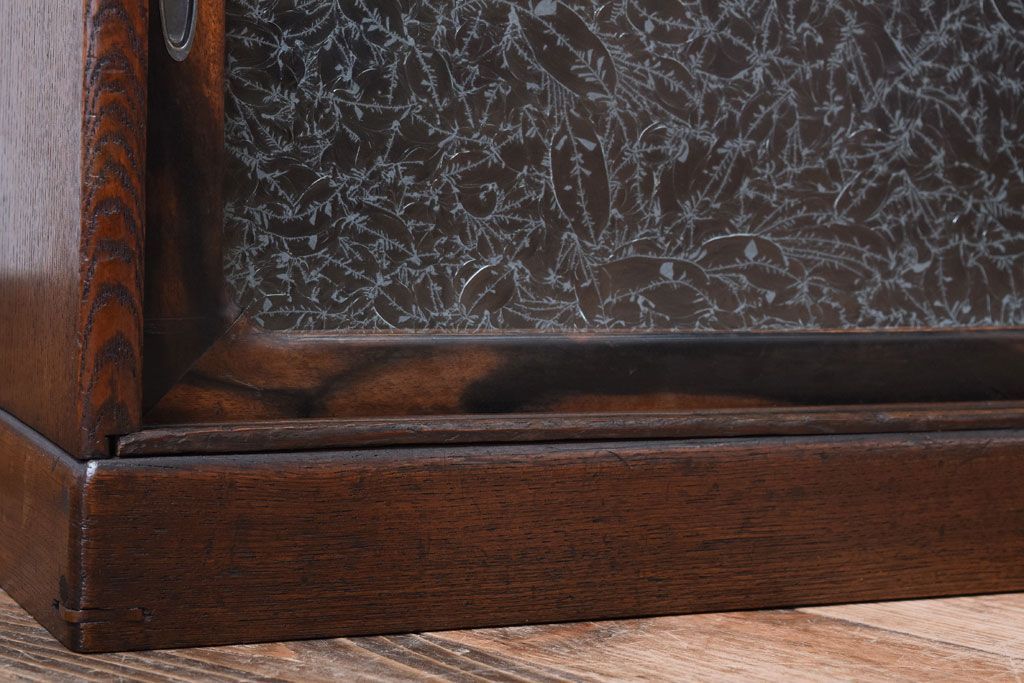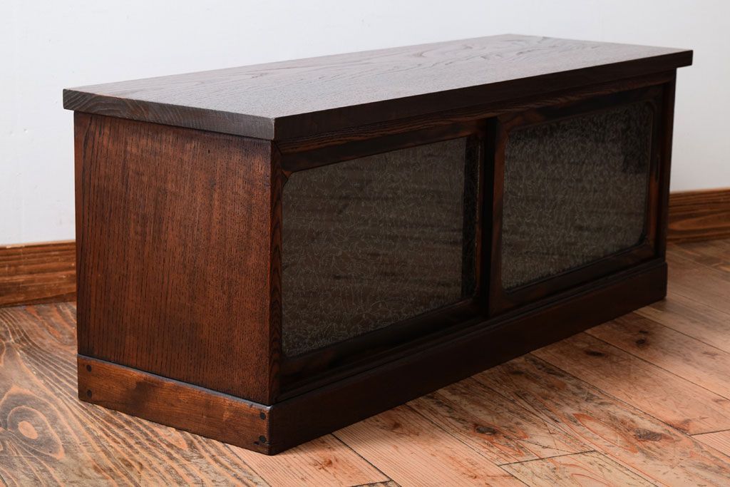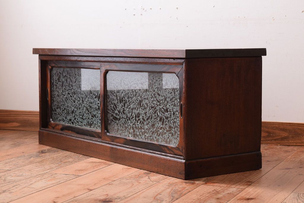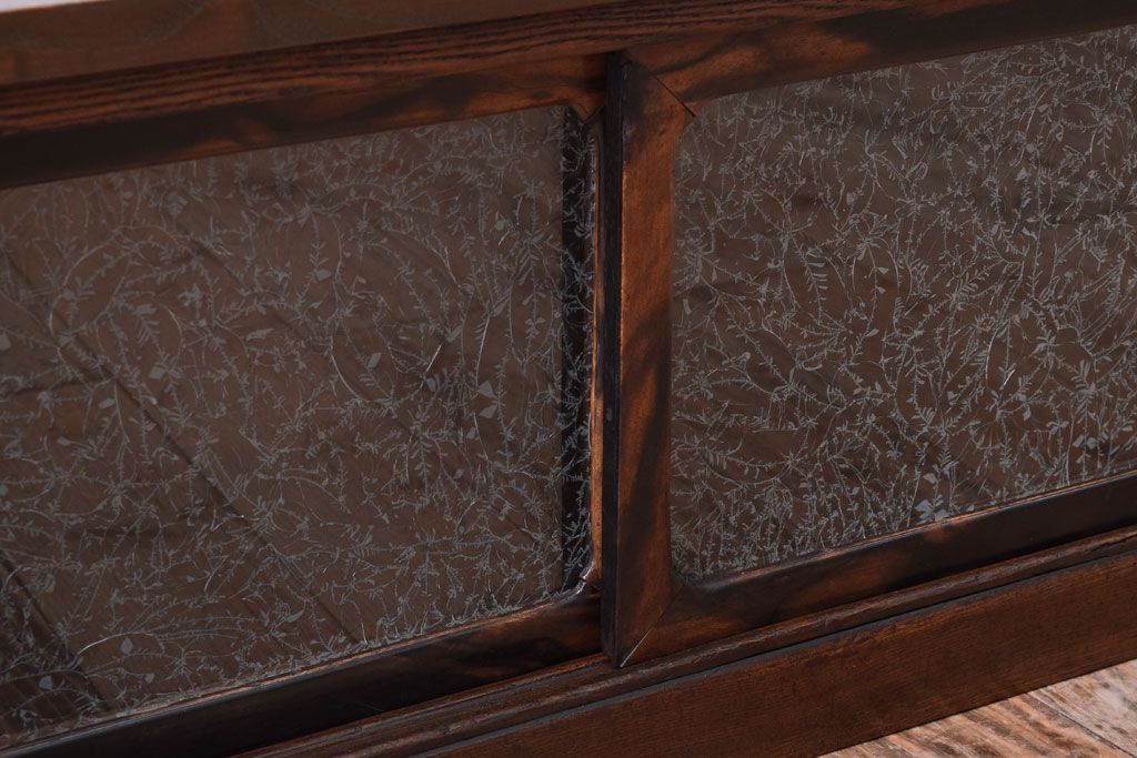 アンティーク家具 結霜ガラス 黒柿材と栗材!和製アンティークのローボード(戸棚)