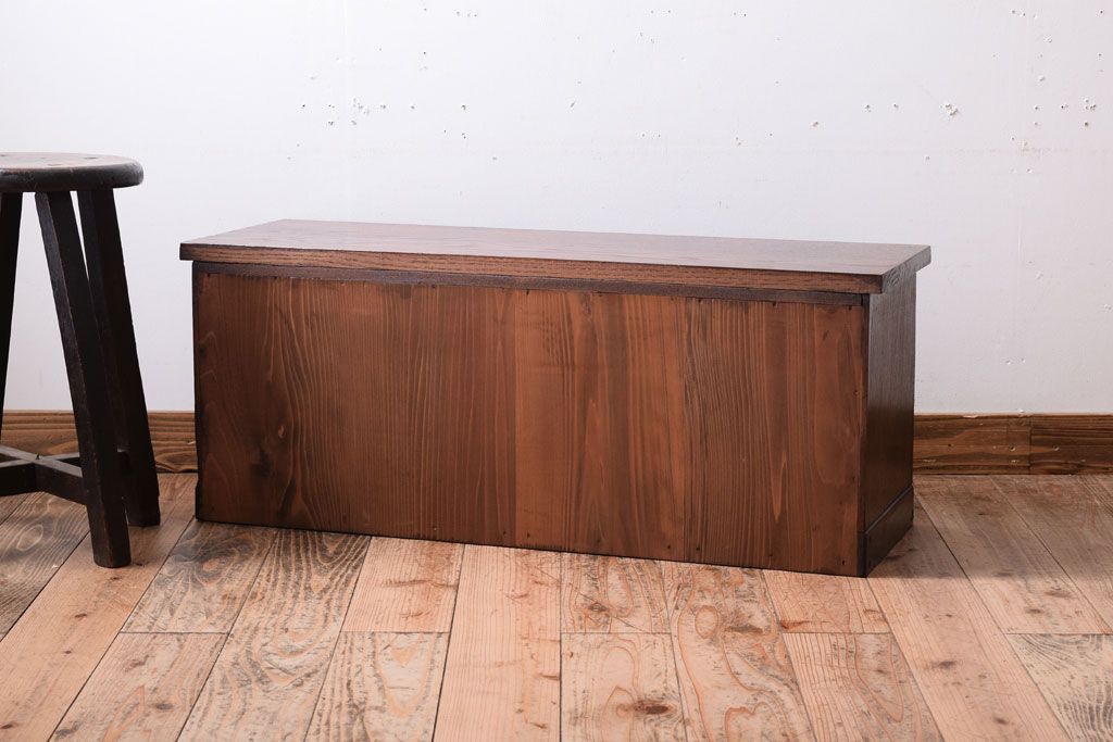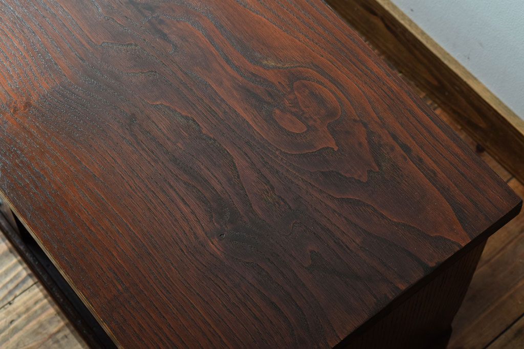 ラフジュ工房> キャビネット・戸棚> テレビ台・ローボード > アンティーク家具 結霜ガラス 黒柿材と栗材!和製アンティークのローボード(戸棚)